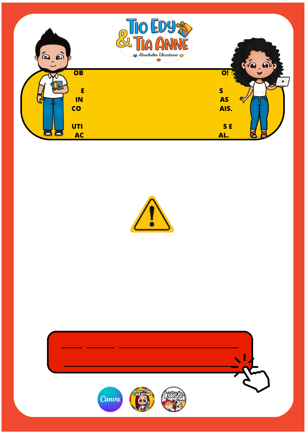 CLIQUE AQUI ACESSE NOSSO SITE: WWW.TIOEDYETIAANNE.COM.BR OBRIGADO POR ADQUIRIR O NOSSO ARQUIVO! ACREDITAMOS QUE VOCÊ VAI ADORAR EXPLORAR ESSES RECURSOS PEDAGÓGICOS INCRÍVEIS. COMPARTILHE SUAS EXPERIÊNCIAS CONOSCO MARCANDO-NOS NAS REDES SOCIAIS. ADORARÍAMOS VER COMO VOCÊ ESTÁ UTILIZANDO ESSES MATERIAIS EM SUAS AULAS E ACOMPANHAR O SEU SUCESSO EDUCACIONAL. Toda e qualquer divulgação, distribuição, plágio ou venda ilegal, assim que descoberto(a) via rastreamento digital, o responsável será penalizado previsto no código civil e criminalmente por seu ato criminoso! ATENÇÃO ESSE MATERIAL É PROTEGIDO COM DIREITOS AUTORAIS DE SEU CRIADOR @ TIO ED Y.TIA A N N E CRÉDITOS DAS IMAGENS: https://tioedyetiaanne.com.br/ https://tioedyetiaanne.com.br/ https://tioedyetiaanne.com.br/ https://api.whatsapp.com/send?phone=5565984034426&text=%0ATENHO+INTERESSE+NO+KIT+DIA+DO+PROFESSOR%21 A B C D E F G H I J K L M N O P Q R S T U V W X Y Z QUAL É A FIGURA ? QUAL É A LETRA ? https://api.whatsapp.com/send?phone=5565984034426&text=%0ATENHO+INTERESSE+NO+KIT+DIA+DO+PROFESSOR%21 BB BA BE BI BO BU CA CE CI CO CUCC DD DA DE DI DO DU FA FE FI FO FUFF GG GA GE GI GO GU HA HE HI HO HUHH JJ JA JE JI JO JU KA KE KI KO KUKK LA LE LI LO LULL MM MA ME MI MO MU NA NE NI NO NUNN PP PA PE PI PO PU QUAQQ RR RA RE RI RO RU SA SE SI SO SUSS TT TA TE TI TO TU VA VE VI VO VUVV WAWW QUE QUI QUO WE WI WO WU XX XA XE XI XO XO ZA ZE ZI ZO ZUZZ BB BA BE BI BO BU CA CE CI CO CUCC DD DA DE DI DO DU FA FE FI FO FUFF GG GA GE GI GO GU HA HE HI HO HUHH JJ JA JE JI JO JU KA KE KI KO KUKK LA LE LI LO LULL MM MA ME MI MO MU NA NE NI NO NUNN PP PA PE PI PO PU QUAQQ RR RA RE RI RO RU SA SE SI SO SUSS TT TA TE TI TO TU VA VE VI VO VUVV WAWW QUE QUI QUO WE WI WO WU XX XA XE XI XO XO ZA ZE ZI ZO ZUZZ FAMÍLIA SILÁBICA FAMÍLIA SILÁBICA