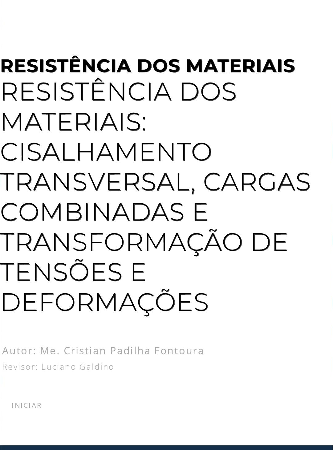 10/04/2024, 16:01 Ead.br https://student.ulife.com.br/ContentPlayer/Index?lc=cpIjN%2fIuWOtIIlHQY5C87Q%3d%3d&l=tJJPHiKW1d6u9jU1vPvq3A%3d%3d&cd=TjWKF… 1/52 RESISTÊNCIA DOS MATERIAISRESISTÊNCIA DOS MATERIAIS RESISTÊNCIA DOSRESISTÊNCIA DOS MATERIAIS:MATERIAIS: CISALHAMENTOCISALHAMENTO TRANSVERSAL, CARGASTRANSVERSAL, CARGAS COMBINADAS ECOMBINADAS E TRANSFORMAÇÃO DETRANSFORMAÇÃO DE TENSÕES ETENSÕES E DEFORMAÇÕESDEFORMAÇÕES Autor: Me. Cristian Padilha Fontoura Revisor : Luc iano Gald ino IN IC IAR 10/04/2024, 16:01 Ead.br https://student.ulife.com.br/ContentPlayer/Index?lc=cpIjN%2fIuWOtIIlHQY5C87Q%3d%3d&l=tJJPHiKW1d6u9jU1vPvq3A%3d%3d&cd=TjWKF… 2/52 introdução Introdução Dando continuidade aos carregamentos aplicados no cotidiano de projetistas ou engenheiros, nesta unidade, veremos diversas situações nas quais a resistência dos materiais é utilizada. O cisalhamento transversal, caso em que a principal tensão provém de forças cortantes em seções transversais de elementos estruturais, será o primeiro desses casos particulares. Em seguida, estudaremos a combinação de cargas, a qual exige que você, caro(a) estudante, relembre conceitos previamente estudados dentro da mecânica dos sólidos, para então avaliar estruturas e componentes sob uma combinação de carregamentos. Indo além, uma ferramenta muito importante é introduzida aqui: as transformações de tensões e de deformações, nas quais podemos analisar elementos em planos inclinados e rotacionados em ângulos diferentes de 0°. 10/04/2024, 16:01 Ead.br https://student.ulife.com.br/ContentPlayer/Index?lc=cpIjN%2fIuWOtIIlHQY5C87Q%3d%3d&l=tJJPHiKW1d6u9jU1vPvq3A%3d%3d&cd=TjWKF… 3/52 O cisalhamento transversal é o cisalhamento que ocorre devido a esforços �etores em uma viga. Tal como a tensão normal, há um per�l de tensões baseado no eixo neutro de uma seção transversal particular. Diferente das tensões normais, o maior valor de tensões ocorre no eixo neutro. A seguir, veremos os casos de cisalhamento transversal mais importantes nas aplicações de resistência dos materiais. Cisalhamento em Elementos Retos Consideremos uma viga, longa, reta e com área da seção transversal constante. Se carregamentos forem aplicados nessa viga, como resposta, serão desenvolvidas forças de momento �etor e também forças de cisalhamento internas. A força de cisalhamento , que será identi�cada por V , é o resultado de uma distribuição de tensão de cisalhamento transversal agindo na seção transversal da viga. CisalhamentoCisalhamento TransversalTransversal 10/04/2024, 16:01 Ead.br https://student.ulife.com.br/ContentPlayer/Index?lc=cpIjN%2fIuWOtIIlHQY5C87Q%3d%3d&l=tJJPHiKW1d6u9jU1vPvq3A%3d%3d&cd=TjWKF… 4/52 Associadas às tensões transversais de cisalhamento, teremos também tensões de cisalhamento longitudinais agindo ao longo dos planos longitudinais da viga. Isso ocorre devido à propriedade complementar do cisalhamento , ou seja, se analisarmos um elemento de volume in�nitesimal de um corpo sofrendo cisalhamento, para manter o equilíbrio desse elemento, surgirão quatro tensões de cisalhamento, que terão intensidades iguais e sentidos iguais ou opostos umas das outras nas bordas opostas do elemento. O surgimento de tensões de cisalhamento longitudinais pode ser exempli�cado em um caso simples: imagine 4 réguas �exíveis empilhadas, engastadas em uma de suas extremidades e uma força P sendo aplicada na outra extremidade. Se nada estiver unindo as réguas, notamos um deslocamento longitudinal entre elas durante a aplicação da força. Porém, se unirmos as réguas como um bloco único e a mesma força for aplicada, o Figura 3.1 - Tensão de cisalhamento transversal na seção transversal da viga e à direita, propriedade complementar do cisalhamento Fonte: Hibbeler (2010, p. 283). 10/04/2024, 16:01 Ead.br https://student.ulife.com.br/ContentPlayer/Index?lc=cpIjN%2fIuWOtIIlHQY5C87Q%3d%3d&l=tJJPHiKW1d6u9jU1vPvq3A%3d%3d&cd=TjWKF… 5/52 deslocamento longitudinal deixará de ocorrer, mas, como consequência, surgirá uma tensão longitudinal entre elas. Com as tensões de cisalhamento transversais e longitudinais, a seção transversal da viga será distorcida de maneira complexa. Entretanto, para estudo com vigas de largura pequena em relação ao seu comprimento, essa deformação da seção transversal pode ser considerada pequena o su�ciente para ser desprezada. A fórmula do cisalhamento é deduzida utilizando a fórmula de �exão, anteriormente apresentada, e a relação entre o momento �etor (M) e a força de cisalhamento (V), na equação 3.1: (eq. 3.1) Considerando uma viga carregada, conforme a �gura 3.2: V = dM dx Figura 3.2 - Exemplo de surgimento de tensão de cisalhamento longitudinal Fonte: Hibbeler (2010, p. 285). 10/04/2024, 16:01 Ead.br https://student.ulife.com.br/ContentPlayer/Index?lc=cpIjN%2fIuWOtIIlHQY5C87Q%3d%3d&l=tJJPHiKW1d6u9jU1vPvq3A%3d%3d&cd=TjWKF… 6/52 Ao analisarmos um elemento in�nitesimal de comprimento dx da viga, com um diagrama de corpo livre (DCL), e buscando o equilíbrio das forças horizontais (ΣFx=0), nota-se o surgimento de uma tensão de cisalhamento longitudinal τ na face inferior do elemento para equilibrar as tensões normais causadas pelos momentos �etores, como pode ser visto na Figura 3.3: A tensão de cisalhamento longitudinal utilizada para equilibrar as forças horizontais tem o mesmo valor da tensão de cisalhamento transversal na área da seção transversal da viga, devido à propriedade complementar do cisalhamento. Sendo assim, a fórmula da tensão de cisalhamento para uma seção transversal da viga é dada pela equação 3.2: onde Figura 3.3 - Vista tridimensional e lateral do DCL do elemento in�nitesimal Fonte: Hibbeler (2010, p. 285). τ = , VQ It 10/04/2024, 16:01 Ead.br https://student.ulife.com.br/ContentPlayer/Index?lc=cpIjN%2fIuWOtIIlHQY5C87Q%3d%3d&l=tJJPHiKW1d6u9jU1vPvq3A%3d%3d&cd=TjWKF… 7/52 