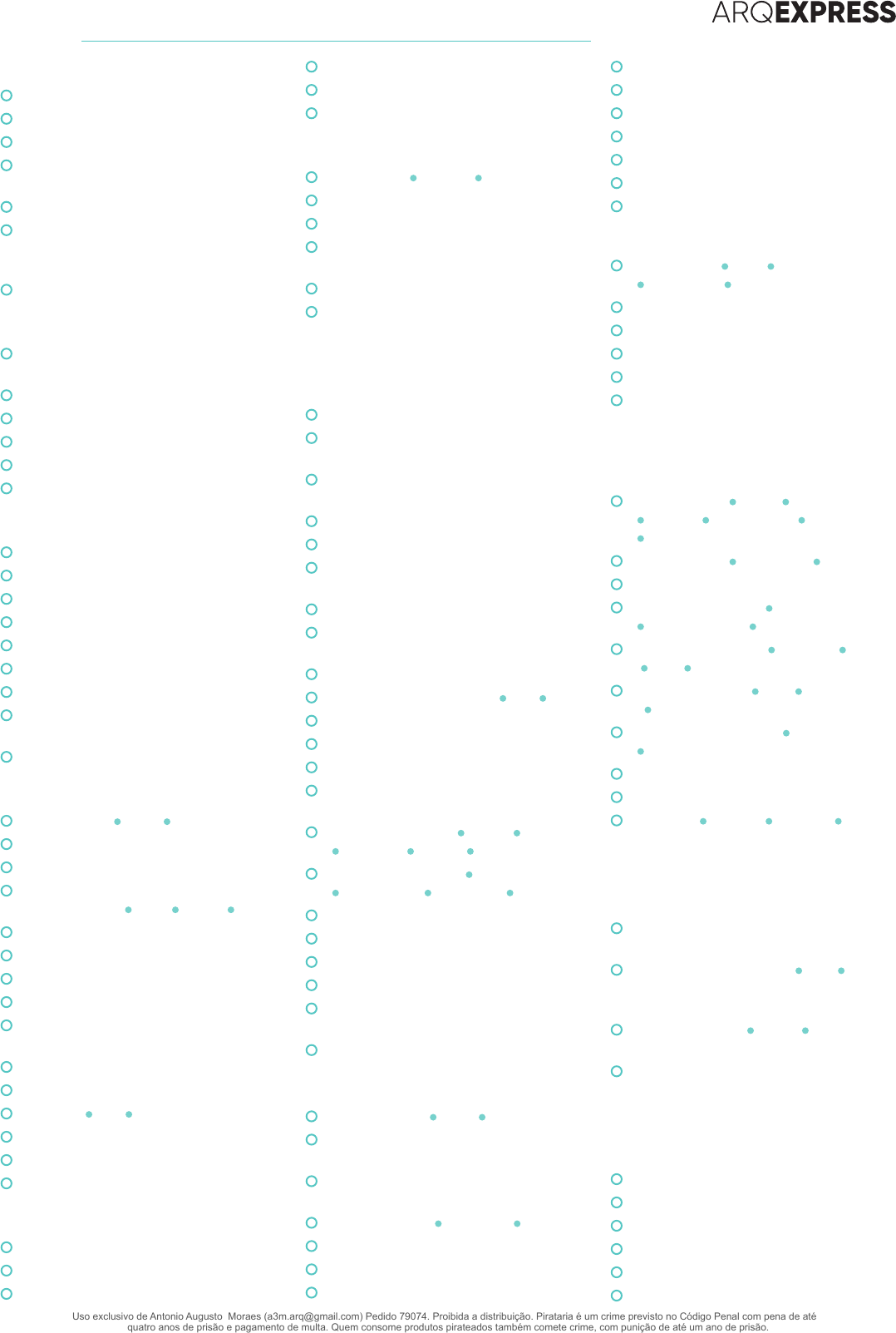 CHECKLIST BANHEIRO CLIENTE: LAYOUT Espaço para bacia sanitária >80cm Espaço para chuveiro >80cm Espaço para bancada >80cm Circulação >60cm em frente aos equipamentos Apoio ao lado da cuba >20cm Posição portas e janelas [cuidar interferência da porta em relação ao mobiliário] Cotas gerais e circulação HIDRÁULICA Posição e eixo do ponto da bancada - ponto de água = 60cm e esgoto = 50cm Posição e eixo ponto vaso sanitário Posição e eixo ponto chuveiro Posição e eixo registros do chuveiro Modelo e posição dos ralos Posição e eixo dos registros ELÉTRICA Tomada 20A Tomadas na bancada > 1 unidade Modelo e acabamento das tomadas Indicação de eixo e altura dos pontos Posição interruptores Tomada toalheiro elétrico Tomada chuveiro elétrico Indicação de voltagem e amperagem tomadas Piso aquecido REVESTIMENTOS Tipo de piso: Novo Existente Acabamento do piso [sem brilho] Transição entre pisos Elemento de transição entre a área seca e área molhada: Tento Mureta Desnível Indicação de níveis Tipo de revestimento nas paredes Acabamento de superficie do revestimento Indicação de início de paginação Indicação de caimento no box em relação ao ralo Tipo e cor de rejunte Quantitativo de materiais Rodapé: Sim Não Tipo de rodapé Altura de rodapé Nicho do box [tipo de revestimento] FORRO Altura do pé-direito Tipo de forro [m2] Cortineiro com medidas Alçapão para manutenção Junta de dilatação Rodaforro ILUMINAÇÃO Luminárias: Embutir Sobrepor Tipo de lâmpada e temperatura de cor Indicar eixo de instalação luminárias Legenda com especificação de lâmpada e luminária Indicação de circuitos e interruptores Indicação de iluminação, marcenaria para fita led [prever espaço para reator e local de acendimento - interruptor] MARCENARIA: Matéria-prima [mdf, mdp, compensado] Acabamento [lâmina natural, melamina, laminado, laca…] Profundidade módulo inferior [de acordo com a medida da pedra] Profundidade modulo superior [12-20cm] Armário suspenso Altura de instalação módulo inferior [85-95cm] Interferência cuba x marcenaria Altura de instalação módulo superior [>110cm] Interferência metal x marcenaria superior Tamponamento aparente: Sim Não Projeção e sentido abertura das portas Recuo em relação a marmoraria >1cm Armário sem fundo ou com fundo recuado Gaveta interna no armário ou gaveteiro [>10cm] Módulos inferiores: Portas Gavetas Gavetões Nichos Basculante Módulos superiores: Portas Basculantes Prateleiras Nichos Projeção armários superiores Cotas externas e internas Indicação de altura e prateleiras internas Módulo para tulha Indicação de ferragens especiais e acessórios Modelo e posição puxadores MARMORARIA Tipo de pedra: Nova Existente Altura de instalação da bancada [85-95cm] Profundidade bancada [ver interferência com a porta] Modelo da cuba: Com mesa Sem mesa Modelo do metal [quantidade de furos] Furação da cuba e misturador Altura da saia [espessura] Altura do frontão [>5cm] Tipo de borda Sistema de fixação Posição e recorte para tomadas Cotas gerais e indicadas Detalhes específicos Nicho de box: acabamento bordas VIDRAÇARIA Modelo box: Abrir Correr Sanfonado Para ducha Sentido de abertura do box Ferragens e sistema de fixação do box Acabamento e cor do box Dimensão do box [altura e largura] Espelho: modelo e medidas * Quando houver iluminação no espelho prever interruptor e espaço para o reator LOUÇAS E METAIS Tipo de cuba: Apoio Sobrepor Embutir Semiencaixe Esculpida Piso Tipo de cuba: Com mesa Sem mesa Medidas e acabamento da cuba Tipo de misturador: Torneira monocomando Misturador Instalação bancada: Bancada Parede Teto Piso Tipo de chuveiro: Teto Parede Elétrico Tipo de vaso sanitário: Convencional Caixa acoplada Altura da válvula [>100cm] Posição e altura registros Banheira: Imersão Alvenaria Embutir * Especificar modelo, acabamento e quantidade de todos os metais ACESSÓRIOS Toalheiro rosto [cuidar interferência com marcenaria altura >35cm] Suporte papel higiênico: Piso Parede [>45cm] cuidar posição fixação quando possível fixar na marcenaria Toalheiro banho: Linear Gancho - altura de instalação >150cm Toalheiro elétrico * Especificar modelo, acabamento e quantidade de todos os acessórios OUTROS Piso aquecido Desembaçador de espelho Local para lixeira Barras de apoio Ventilação mecânica [na ausência de janela] Nicho papel higiênico Uso exclusivo de Antonio Augusto Moraes (a3m.arq@gmail.com) Pedido 79074. Proibida a distribuição. Pirataria é um crime previsto no Código Penal com pena de até quatro anos de prisão e pagamento de multa. Quem consome produtos pirateados também comete crime, com punição de até um ano de prisão. Rectangle