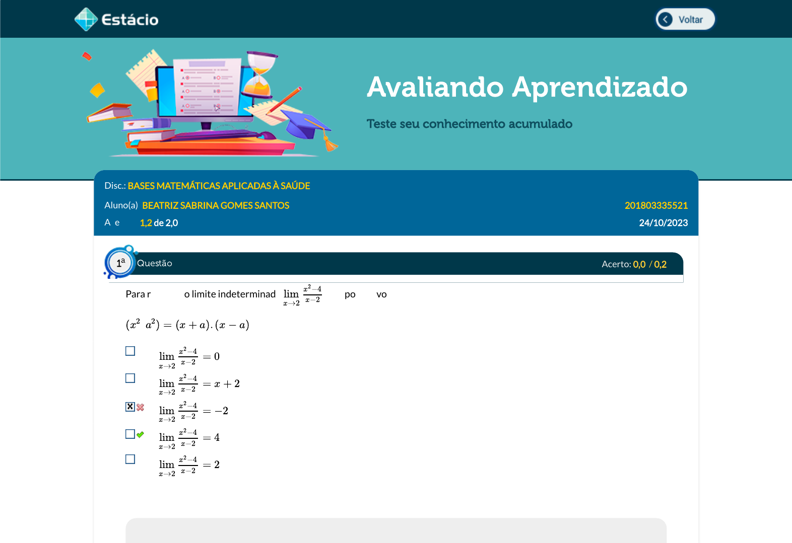 Aluno(a): BEATRIZ SABRINA GOMES SANTOS 201803335521