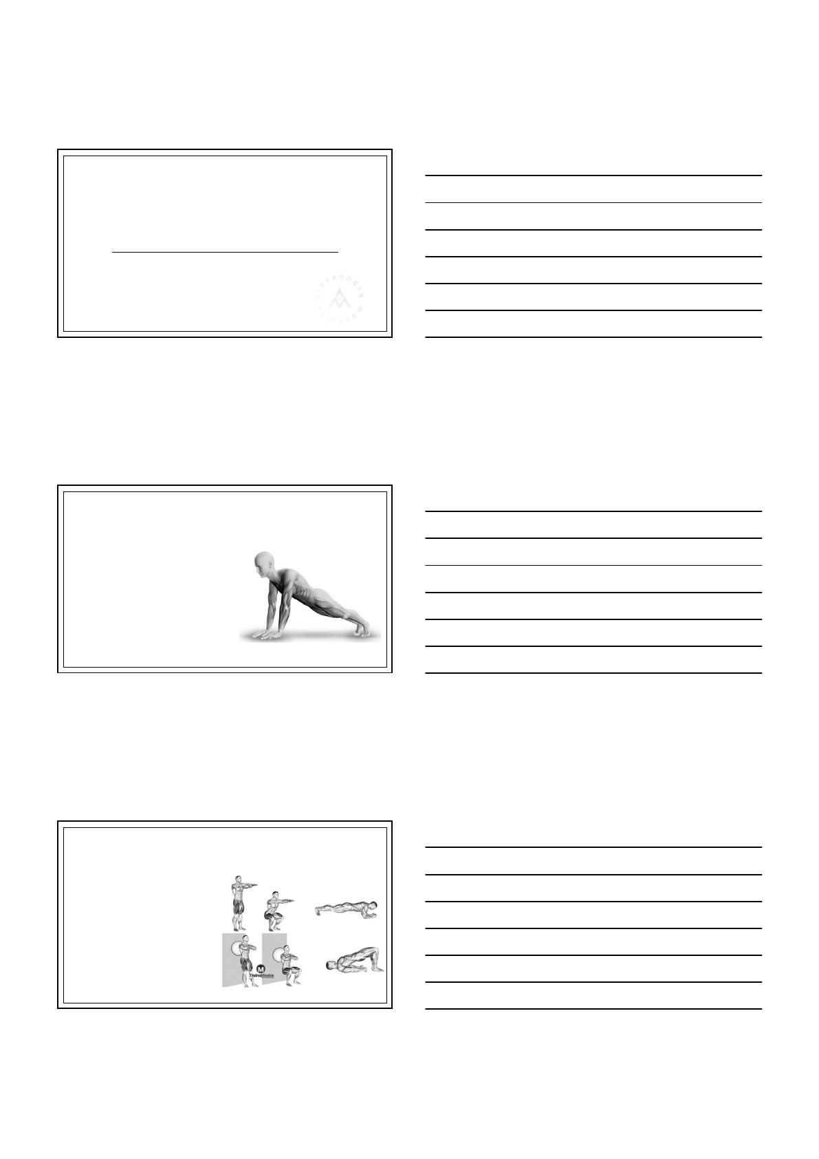 06/04/2024 CINESIOTERAPIA Exercícios Isométricos EXERCÍCIOS RESISTIDOS ISOMÉTRICOS • É uma forma de exercício em que um músculo se contrai e produz força sem uma mudança no seu comprimento. • Há contração muscular estática e sem movimento articular visível. FONTE DE RESISTÊNCIA • Sustentação contra força aplicada manualmente; • Sustentação de um peso em determinada posição; • Manutenção de uma posição contra a resistência do peso corporal; • Empurrar ou puxar um objeto imóvel. 06/04/2024 EFEITOS DO EXERCÍCIO ISOMÉTRICO 1. Os músculos posturais do tronco e dos membros inferiores precisam contrair-se isometricamente para manter o corpo ereto contra a gravidade. 2. Estabilidade das articulações durante os movimentos. 3. Melhora da força estática muscular; 4. Melhora do controle muscular sustentado = resistência à fadiga; 5. Evitam atrofias; 6. Melhora a circulação local e sistêmica, reduzindo o edema; 7. Estímulo dos mecanorreceptores de tecidos vizinhos. INDICAÇÕES DO EXERCÍCIO ISOMÉTRICO • Prevenir e minimizar a atrofia muscular quando o movimento articular não é possível devido à imobilização externa (gesso, órteses, trações esqueléticas); • Ativar músculos e reestabelecer o controle neuromuscular; • Desenvolver estabilidade articular e postural; • Melhorar a força muscular em pontos particulares daADM; INDICAÇÕES DO EXERCÍCIO ISOMÉTRICO 06/04/2024 TIPOS DE EXERCÍCIOS ISOMÉTRICOS • diversas formas de exercícios isométricos com graus variáveis de resistência e intensidade de contração muscular, durante diferentes fases da reabilitação para servir a diferentes propósitos. • Classificação: exercícios de estabilização e exercícios isométrico em múltiplos ângulos. EXERCÍCIOS DE ESTABILIZAÇÃO • utilizados para desenvolver co- contração de modo a reduzir a instabilidade e favorecer a estabilidade articular ou postural por meio de contrações isométricas • resistência é oferecida através do peso corporal ou resistência manual. CONSIDERAÇÕES SOBRE EXERCÍCIOS ISOMÉTRICOS O uso dos exercícios isométricos depende de: 1. Intensidade da contração muscular 2. Duração da ativação muscular 3. Contrações repetitivas 4. Ângulo articular e especificidade do modo 06/04/2024 CONSIDERAÇÕES SOBRE EXERCÍCIOS ISOMÉTRICOS 1. Intensidade da contração muscular • A quantidade de resistência varia e tem de ser ajustada em pontos diferentes da amplitude. • A resistência precisa ser gradualmente aumentada para continuar a sobrecarregar o músculo à medida que ele se torna mais forte. CONSIDERAÇÕES SOBRE EXERCÍCIOS ISOMÉTRICOS 2. Duração da ativação muscular • Para produzir mudanças adaptativas no desempenho muscular estático, a contração isométrica deve ser mantida por 6 a 10 segundos. • Para uma contração de 10s: 2s tempo de subida 6s tempo de sustentação 2s tempo de descida CONSIDERAÇÕES SOBRE EXERCÍCIOS ISOMÉTRICOS 3. Contrações repetitivas Contrações repetitivas mantidas por 6 a 10 segundos cada uma, diminui as cãibras musculares e aumenta a efetividade do regime isométrico. 06/04/2024 CONSIDERAÇÕES SOBRE EXERCÍCIOS ISOMÉTRICOS 4. Ângulo articular e especificidade do modo • Os ganhos na força muscular ocorrem somente no ângulo de treinamento. • O extravasamento fisiológico é mínimo, ocorrendo não mais que 10° em cada direção naADM. • Geralmente, aplica-se resistência em quatro a seis pontos daADM. LIMITAÇÕES DE EXERCÍCIOS ISOMÉTRICOS • A melhora da força só ocorre no ângulo de treinamento ou logo adjacentes a ele. • Aumenta a força estática, mas não tem pouco ou nenhum impacto na força dinâmica. • Precaução: para evitar lesões ao músculo, soltar a resistência aos poucos, pois minimiza o risco de movimento articular descontrolado. LEITURA ESPECÍFICA 06/04/2024 Problem-Based Learning (PBL) sobre Exercícios Isométricos em Fisioterapia Como alunos de Fisioterapia, é crucial que compreendam não apenas os princípios básicos da cinesioterapia, mas também se aprofundem em técnicas específicas, como os exercícios isométricos. Esses exercícios, que envolvem a contração muscular sem movimento articular, têm aplicações terapêuticas significativas em diversas condições musculoesqueléticas. Neste PBL, iremos explorar a teoria por trás dos exercícios isométricos, suas aplicações clínicas e como podem ser integrados em planos de tratamento fisioterapêutico. Estudo de Caso Clínico: Título: Reabilitação Pós-lesão do Ligamento Cruzado Anterior Utilizando Exercícios Isométricos Histórico do Paciente: João, um jovem atleta de 25 anos, apresentou-se à clínica de fisioterapia após sofrer uma lesão no ligamento cruzado anterior (LCA) durante uma partida de futebol. Ele foi submetido a uma reconstrução do LCA há dois meses e agora está buscando reabilitação para recuperar a força e a estabilidade do joelho afetado. Apresentação Clínica: Ao exame físico, João apresenta atrofia muscular significativa no quadríceps e uma gama limitada de movimento no joelho. Ele relata dor leve a moderada ao realizar atividades diárias e teme não poder retornar às suas atividades esportivas anteriores. Objetivos de Tratamento: 1.Restaurar a força e a estabilidade do joelho afetado. 2.Melhorar a amplitude de movimento e flexibilidade. 3.Reduzir a dor e prevenir a recorrência de lesões. 4.Facilitar o retorno seguro às atividades esportivas. Plano de Tratamento: Considerando o estado atual do paciente e os princípios de reabilitação pós-operatória do LCA, um plano de tratamento abrangente é desenvolvido, com foco na inclusão de exercícios isométricos como componente central. O plano inclui: 1.Fase Inicial (Semana 1-4): 1. Controle da dor e redução do inchaço com modalidades de terapia física, como crioterapia e estimulação elétrica. 2. Iniciar exercícios isométrico