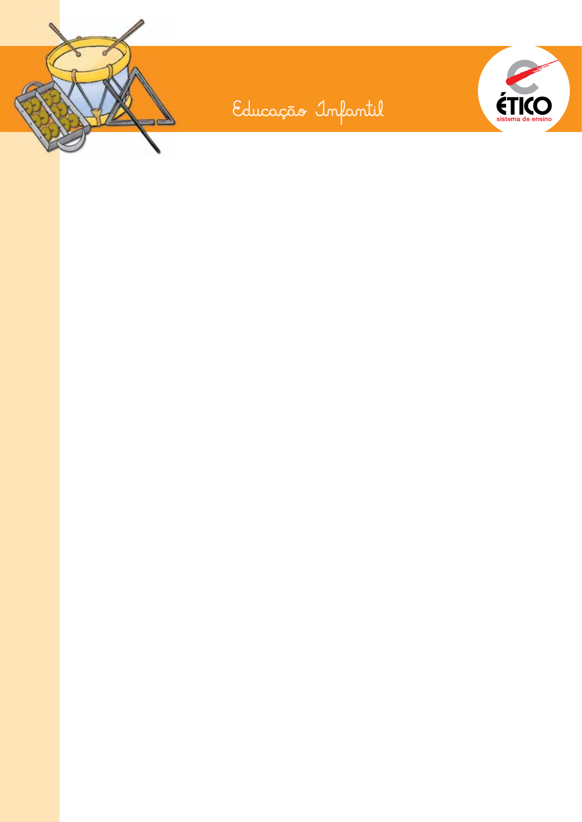 1 e∂ucáÇá~o I˜fa˜til Congada P R O JE T O S C U L T U R A IS www.sejaetico.com.br 0800 770 1996  Justificativa O Brasil é um país com grande diversidade étnica e cultural. É preciso dar importân- cia e valorizar a cultura dentro e fora da escola, criando manifestações artísticas que propor- cionem reflexões críticas da realidade e afirmação positiva dos valores culturais pertencentes a nossa sociedade. Os bens culturais de natureza imaterial sobrevivem graças à força e à resistência dos grupos sociais que lutam para preservar a sua identidade cultural, por meio da prática de cos- tumes e cultos de suas crenças e valores. A escola deverá desenvolver atividades que integrem os alunos ao assunto desen- volvido, promovendo a associação entre as diversas áreas do conhecimento e reflexões que permitam a construção da atitude e a preservação do patrimônio cultural brasileiro em toda sua extensão.  ObJetivOs Conceituais • Conhecer a diversidade do patrimônio etnocultural brasileiro, respeitando os gru- pos que a compõem, e reconhecer a diversidade cultural como um direito dos po- vos e dos indivíduos. • Conhecer a origem da congada e suas diferentes representações pelo país. • Relacionar as personagens da congada e a importância de cada uma delas durante a representação. • Reconhecer a congada como uma manifestação folclórica brasileira trazida pelos escravos vindos de diversos pontos da África em que são misturadas tradições cris- tãs, pagãs e africanas. • Compreender que a congada era uma dança guerreira e que os jesuítas introduzi- ram nela elementos do cristianismo. • Reconhecer as qualidades da própria cultura, valorizando-as criticamente, enri- quecendo o exercício de cidadania. • Desenvolver no educando habilidades e competências nas suas relações com con- ceitos que ele aprende de maneira significativa. Procedimentais • Desenvolver as habilidades reflexivas e artísticas. • Desenvolver a atenção e o interesse pelas atividades. • Relacionar o folclore como um conjunto de valores culturais. • Desenvolver a habilidade de pesquisar. • Resgatar a importância do folclore na cultura brasileira. • Observar outras formas de manifestações folclóricas na região pesquisada. • Coletar informações variadas sobre as diferentes manifestações folclóricas. www.sejaetico.com.br 0800 770 19962 PR O JE TO C UL TU RA L CONGADA Atitudinais • Valorizar as diversas culturas presentes na constituição do Brasil como nação, reco- nhecendo sua contribuição no processo de construção da identidade brasileira. • Pesquisar outras festas folclóricas presentes na cultura de cada região do país. • Ouvir e respeitar as diferentes opiniões, valores e crenças. • Argumentar coerentemente sobre o assunto discutido. • Desenvolver a linguagem oral. • Compreender o folclore como comunicação entre as gerações. • Repassar valores culturais. • Reconhecer o Brasil como país de grande pluralidade cultural. • Pesquisar a importância e a influência do folclore na educação. • Favorecer a integração social do grupo.  PúblicO-alvO Educação Infantil  temPOÂestimadO Aproximadamente 15 dias  materialÂnecessáriO • 1 lata vazia de achocolatado ou leite em pó • 6 palitos de churrasco • 10 pedrinhas pequenas • Fita adesiva colorida • Tinta para tecido • 2 garrafas pet • Tesoura sem ponta • Lápis de cor • Canetinhas  desenvOlvimentO O trabalho com o tema “Congada” tem a intenção de contribuir para a formação de cidadãos capazes de reconhecer os valores etnoculturais presentes na sociedade brasileira e desenvolver o respeito às diferentes manifestações folclóricas, assim como desmistificar qual- quer tipo de preconceito relativo aos costumes religiosos.  avaliaçãO A avaliação será realizada por meio da observação docente e levará em consideração a participação, o interesse e a ampliação do conhecimento dos alunos durante todo o proces- so de desenvolvimento do projeto.  OrientaçõesÂaOÂPrOfessOr Professor(a), defina o roteiro ou tópicos que deverão ser abordados na pesquisa. Passe aos alunos as fontes nas quais o tema poderá ser encontrado. Socialize com os alunos qual o principal objetivo da pesquisa e o que se pretende alcançar. www.sejaetico.com.br 0800 770 19963 PR O JE TO C UL TU RA L CONGADA Peça aos pais que ajudem os filhos quanto ao fornecimento ou acesso às fontes e ao prazo de entrega dos trabalhos. Se possível, traga para a sala de aula um CD com músicas características da congada ou DVD em que constem imagens. Obs: na internet podem-se encontrar essas imagens e vídeos em sites de busca. Como fechamento, os alunos poderão simular a representação de uma congada na escola, com base nos vídeos e imagens vistas e pesquisadas. Essa atividade será interdiscipli- nar, pois envolve as disciplinas de história, geografia, língua portuguesa e arte.  instruçõesÂParaÂOsÂalunOs Escolher e ler as fontes em que irá procurar as informações necessárias. Busque fontes confiáveis, ou seja, produtos e publicações que sejam reconhecidos pela sua credibilidade. Faça anotações, seguindo o roteiro ou tópicos abordados. Depois da análise, é só elaborar seu próprio texto, escrevendo com suas palavras o que entendeu. www.sejaetico.com.br 0800 770 19964 PR O JE TO C UL TU RA L CONGADA Nome: Nível: Data: Educação Infantil ATIVIDADES CONGADA VOCÊ JÁ OUVIU FALAR EM CONGO OU CONGADA? HÁ MUITO TEMPO ATRÁS, NUMA ÉPOCA EM QUE O BRASIL ERA COLÔNIA DE PORTUGAL E COMANDADO POR UM REI, OS ESCRAVOS TRAZIDOS DA ÁFRICA, QUE AQUI VIERAM TRABALHAR E MORAR, TROUXERAM COM ELES MUITOS COSTUMES QUE TINHAM POR LÁ. A CONGADA OU CONGO É UMA FESTA POPULAR EM QUE OS NEGROS ESCRAVOS OU ALFORRIADOS PARTICIPAVAM DANÇANDO, CANTANDO E BATENDO MUITO TAMBOR. PINTE OS TAMBORES COM CORES DIFERENTES. www.sejaetico.com.br 0800 770 19965 PR O JE 