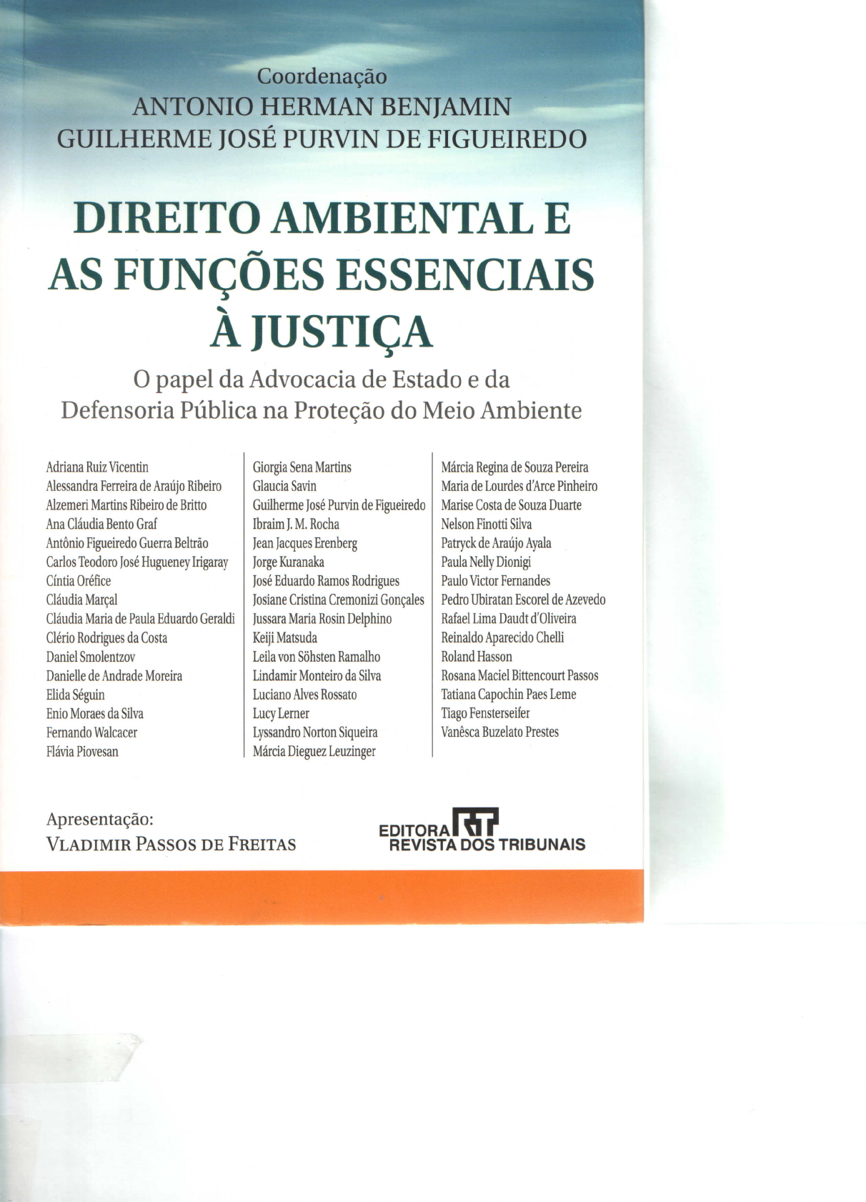 Coordenação ANTONIO HERMAN BENJAMIN GUILHERME JOSÉ PURVIN DE FIGUEIREDO DIREITO AMBIENTAL E AS FUNÇÕES ESSENCIAIS À JUSTIÇA O papel da Advocacia de Estado e da Defensoria Pública na Proteção do Meio Ambiente Adriana Ruiz Vicentin Alessandra Ferreira de Araújo Ribeiro Alzemeri Martins Ribeiro de Britto Ana Cláudia Bento Graf Antônio Figueiredo Guerra Beltrão Carlos Teodoro José Hugueney lrigaray Cíntia Oréfice Cláudia Marçal Cláudia Maria de Paula Eduardo Geraldi Clério Rodrigues da Costa Daniel Smolentzov Danielle de Andrade Moreira Elida Séguin Enio Moraes da Silva Fernando Walcacer Flávia Piovesan Márcia Regina de Souza Pereira Maria de Lourdes d'Arce Pinheiro Marise Costa de Souza Duarte Nelson Finotti Silva Patryck de Araújo Ayala Paula Nelly Dionigi Paulo Victor Fernandes Pedro Ubiratan Escorei de Azevedo Rafael Lima Daudt d'Oliveira Reinaldo Aparecido Chelli Roland Hasson Rosana Maciel Bittencourt Passos Tatiana Capochin Paes Leme Tiago Fensterseifer Vanêsca Buzelato Prestes Giorgia Sena Martins Glaucia Savin Guilherme José Purvin de Figueiredo Ibraim J.M. Rocha Jean Jacques Erenberg Jorge Kuranaka José Eduardo Ramos Rodrigues Josiane Cristina Cremonizi Gonçales lussara Maria Rosin Delphino KeijiMatsuda Leila von Sõhsten Ramalho Lindamir Monteiro da Silva Luciano Alves Rossato LucyLerner Lyssandro Norton Siqueira Márcia Dieguez Leuzinger Apresentação: VLADIMIR PASSOS DE FREITAS EDITORAm REVISTA DOS TRIBUNAIS - -- -~ ~- - Dados Internacionais de Catalogação na Publicação (CIP) (Câmara Brasileira do livro, SP, Brasil) Direito ambiental e as funções essenciais à justiça: o papel da advocacia de estado e da defensoria pública na proteção do meio ambiente [coordenação Antonio Herman Benjamin, Guilherme José Purvin de Figueiredol. - São Paulo: Editora Revista dos Tribunais, 2011. Vários autores.Bibliografia. ISBN 978-85-203-4003-5 1. Advocacia pública ambiental 2. Direito ambiental 3. Direito ambiental - Brasil 4. Meio mbiente - Leis e legislação I. Benjamin, Antonio Herman V. 11. Figueiredo, Guilherme José Purvin de. 11-03810 CDU-34~:502.7 indices para catálogo sistemático: 1. Advocacia públ ica e meio ambiente : Direito ambiente 342:502.7 Sumário Prefácio - ANTONIO HERMANV. BENJAMINe GUILHERMEJOSÉPURVINDEFIGUEIREDO.... 7 Apresentação - VLADIMIRPASSOSDEFREITAS 11 PARTE I-INTRODUÇÃO À ADVOCACIA PÚBLICA AMBIENTAL 1. Advocacia Pública e a defesa do meio ambiente à luz do art. 225 da CF GUILHERMElost PURVINDEFIGUEIREDO.. 21 2. O direito ao meio ambiente e a Constituição de 1988 FLÁVIAPIOVESAN 55 PARTE 11- DEFENSORIA PÚBLICA 3. Defensoria Pública e o meio ambiente: diagnósticos e perspectivas EUDASÉGUIN 85 4. Defensoria Pública, acesso à justiça e justiça Ambiental TIAGO FENSTERSEIFER 107 PARTE III-ADVOCACIA DE ESTADO 5. Advocacia pública e meio ambiente: direito, dever e desafios CARLOSTEODOROlost HUGUENEYIRIGARAY................................................. 135 16 DIREITO AMBIENTAL E AS FUNÇÕES ESSENCIAIS À JUSTiÇA 6. Proteção do meio ambiente e do erário: um novo paradigma para a Advo- cacia Pública ANA CLÁUDIA BENTO GRAF e GUILHERME JOSÉ PURVIN DE FIGUEIREDO 147 7. Algumas reflexões sobre competência estadual em matéria de proteção ao meio ambiente e o papel da Procuradoria-Geral do Estado. Especificida- des da Bahia ALZEMERI MARTINS RIBEIRO DE BRITTO 158 8. Advocacia Pública Ambiental nos municípios: peculiaridades MARISE COSTA DE SOUZA DUARTE.............................................................. 179 9. A atuação do Procurador do Estado em matéria ambiental: da defesa do ato administrativo à propositura de ações contra atos ilegais LYSSANDRO NORTON SiqUEIRA................................................................... 202 10. Advocacia Pública nos Estadose no Distrito Federal - Peculiaridades DANIEL SMOLENTZOV ..•....................................••.••................................... 215 11. Advocacia Pública e a proteção do meio ambiente no âmbito da adminis- tração indireta federal l.ucv LERNER 230 12. Estudo de caso: novos paradigmas da Advocacia Pública Municipal - Atuação preventiva e multidisciplinaridade - Relato de um caso de apli- cação do direito de superfície na regularização fundiária VANÊSCA BUZELATO PRESTES 240 13. A importância das Comissões de Direito Ambiental da OAB para o aper- feiçoamento da Advocacia Pública ANTÔNIO FIGUEIREDO GUERRA BELTRÃO 257 PARTE IV - ADVOCACIA PÚBLICA ETUTELA ADMINISTRATIVA ETRIBUTÁRIA DO MEIO AMBIENTE 14. A proteção do meio ambiente e o papel da Advocacia Públ ica nos estudos de impacto ambiental PAULO VICTOR FERNANDES 267 SUMÁRIO 17 15. A comprovação da regularidade ambiental nas concessões de incentivos e benefícios fiscais pelo Poder Público CLÁUDIAMARÇAL.................................................................................... 281 16. Licitação sustentável: inserção da variável ambiental no sistema de com- pras e contratações públicas DANIELLEDEANDRADEMOREIRA 299 17. A eficácia do ICMS ecológico como instrumento de política ambiental e o dever do Estado quanto à sua efetivação LEILAVON SÓHSTENRAMALHOe RosxNAMACIELBITTENCOURTPASSOS............. 329 18. Análise de minuta de decreto que dispõe sobre normas para a limpeza de pastagens na planície alagável do "Pantanal mato-grossense" PATRYCKDEARAÚJOAYALA 350 19. Estudo de caso: A questão da queima da palha da cana-de-açúcar: a difí- cil conciliação entre proteção ambiental e desenvolvimento (proibição x autorização) - Dois aspectos do Estado em Juízo CLÁUDIAMARIADEPAULAEDUARDOGERALDI,JORGEKURANAKA,KEIJIMATSUDA e REINALDOAPARECIDOCHELLI 365 PARTE V - ADVOCACIA PÚBLICA E DIREITO AMBIENTAL IMOBILIÁRIO 20. Advocacia Pública e regularização fundiária de áreas protegidas PEDROUBIRATANESCORElDEAZEVEDO 393 21. Ação de desapropriação (direta) para a criação de espaços protegi