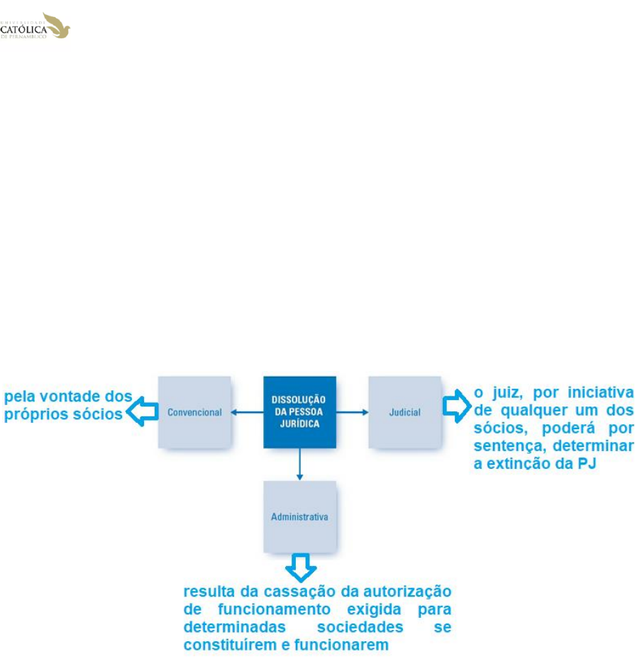 Data: 29/04/2024 Monitora: Ana Clara B. de Mello Professora: Rosângela Lira – Disciplina: Sujeito de Direito e Bem Jurídico Turma MJUR-0010 - Horário CD EXTINÇÃO - PESSOA JURÍDICA A extinção da pessoa jurídica se dá quando finda o funcionamento com a conseguinte baixa do registro. É composta por três fases: 1) Dissolução; 2) Liquidação; 3) Extinção (com a respectiva baixa do registro). A dissolução pode ser: (Imagem adaptada. Original: Manual de Direito Civil, Pamplona Filho e Glagliano) Nas palavras de Caio Mário, a dissolução pela via administrativa ocorre quando “Se praticam atos opostos a seus fins, ou nocivos ao bem coletivo, a administração pública, que lhes dera autorização para funcionamento, pode cassá-la, daí resultando a terminação da entidade, uma vez que a sua existência decorrera daquele pressuposto”. Um exemplo possível nessa situação são as sociedades que precisam de orientação governamental para funcionamento no Brasil. Na liquidação, são discriminados os ativos e os passivos do patrimônio bruto da pessoa jurídica. Deverão ser pagos os eventuais credores e despesas e deverão ser recebidos os créditos a que faz jus a pessoa jurídica. Além disso, deverão ser satisfeitas as obrigações tributárias. Depois, é possível dar a baixa do registro e a pessoa jurídica é extinta, que será averbado no mesmo registro onde foi originalmente inscrita. As disposições de liquidação podem variar. No caso das associações, deve ser seguido o disposto no artigo 61 do CC. No caso das sociedades, os bens que sobejarem serão repartidos entre os respectivos sócios, observada a participação social de casa um. É importante lembrar que, as disposições para a liquidação das sociedades aplicam-se, no que couber, às demais pessoas jurídicas de direito privado, tal como dispõe o artigo 51 § 2º do CC.