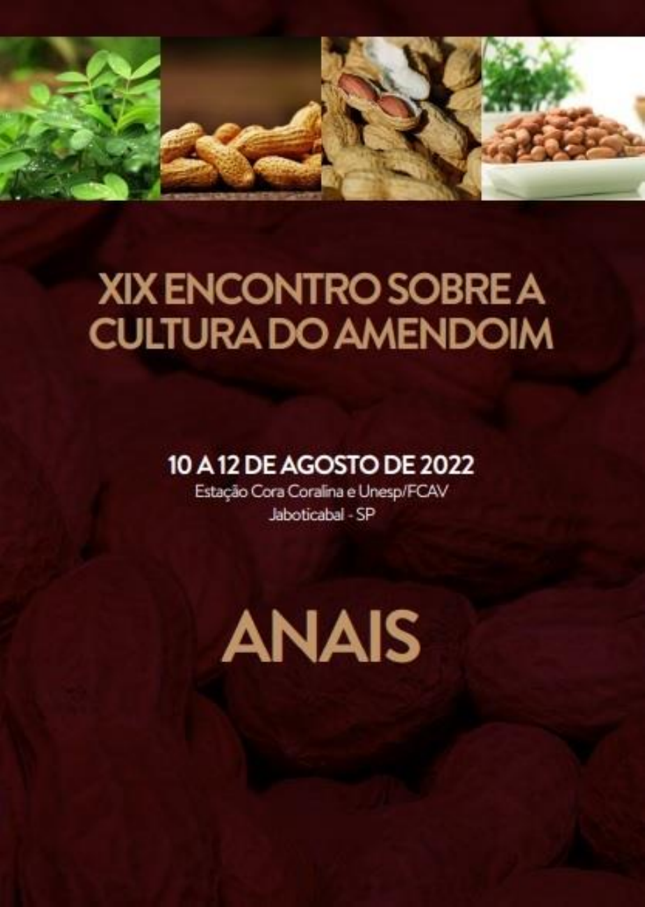XIX Encontro Sobre a Cultura do Amendoim 10 a 12 de agosto de 2022 na Estação de Eventos Cora Coralina e FCAV/UNESP, Jaboticabal-SP XIX Encontro Sobre a Cultura do Amendoim 10 a 12 de agosto de 2022 na Estação de Eventos Cora Coralina e FCAV/UNESP, Jaboticabal-SP ANAIS XIX ENCONTRO SOBRE A CULTURA DO AMENDOIM Estação Cora Coralina e Unesp/FCAV Jaboticabal, SP 10 A 12 DE AGOSTO DE 2022 EDITORES: Dr. Allan Lopes Bacha Ma. Bruna Dal'Pizol Novello Dr. Edimar Rodrigues Soares Eng. Agr. Francisco Ronaldo Cardoso da Silva Me. Heytor Lemos Martins Biól. Letícia de Paula Leite Prof. Dr. Pedro Luis da Costa Aguiar Alves Engª. Agrª. Treyce Stephane Cristo Tavares Dr. Willians César Carrega XIX Encontro Sobre a Cultura do Amendoim 10 a 12 de agosto de 2022 na Estação de Eventos Cora Coralina e FCAV/UNESP, Jaboticabal-SP XIX ENCONTRO SOBRE A CULTURA DO AMENDOIM COMISSÃO ORGANIZADORA Coordenadores Prof. Dr. Pedro Luis da Costa Aguiar Alves Dr. Willians César Carrega Dr. Allan Lopes Bacha Sérgio de Souza Nakagi Comissão Organizadora Dr. Allan Lopes Bacha Ma. Bruna Dal'Pizol Novello Eng. Agr. Francisco Ronaldo Cardoso da Silva Me. Heytor Lemos Martins Biól. Letícia de Paula Leite Prof. Dr. Pedro Luis da Costa Aguiar Alves Engª. Agrª. Treyce Stephane Cristo Tavares Dr. Willians César Carrega Comissão Científica Dr. Allan Lopes Bacha Ma. Ana Eliza Piazentine Ma. Bruna Dal'Pizol Novello Dr. Fabio Luiz Checchio Mingotte Eng. Agr. Francisco Ronaldo Cardoso da Silva Me. Heytor Lemos Martins Dr. João Francisco dos Santos Me. Juan Ricardo Rocha Ma. Juliana de Souza Rodrigues Biól. Letícia de Paula Leite Drª. Lívia Felício Barreto Drª. Neriane Hijano Me. Pablo Nascimento de Oliveira Dr. Pedro de Figueiredo Rocha Barbosa Martins Prof. Dr. Pedro Luís da Costa Aguiar Alves Profª. Drª. Renata Thaysa da Silva Santos Ma. Tamiris Marion de Souza Engª. Agrª. Treyce Stephane Cristo Tavares Dr. Vitor Simionato Bidóia Dr. Willians César Carrega XIX Encontro Sobre a Cultura do Amendoim 10 a 12 de agosto de 2022 na Estação de Eventos Cora Coralina e FCAV/UNESP, Jaboticabal-SP Comissão de Planejamento e Captação de Recursos Dr. Allan Lopes Bacha Ma. Bruna Dal'Pizol Novello Eng. Agr. Francisco Ronaldo Cardoso da Silva Me. Heytor Lemos Martins Biól. Letícia de Paula Leite Prof. Dr. Pedro Luis da Costa Aguiar Alves Engª. Agrª. Treyce Stephane Cristo Tavares Dr. Willians César Carrega A Comissão Organizadora informa que o conteúdo dos trabalhos publicados é de inteira responsabilidade de seus autores, e se isenta de quaisquer atitudes de plágio, cópias indevidas ou outro tipo de ação que venha a ferir sua integridade autoral. XIX Encontro Sobre a Cultura do Amendoim 10 a 12 de agosto de 2022 na Estação de Eventos Cora Coralina e FCAV/UNESP, Jaboticabal-SP Apresentação O Encontro Sobre a Cultura do Amendoim constitui o evento mais significativo sobre esta leguminosa, pois reúne produtores, pesquisadores, estudantes e profissionais da área, dando-lhes a oportunidade de apresentar, discutir e compartilhar ideias em suas áreas de atuação junto a essa cultura. Esta edição do evento é comemorativa diante sua realização junto a 4ª Feira Nacional do Amendoim, ocorrida no município de Jaboticabal, a qual foi consagrada como a Capital do Amendoim. É com grande satisfação que a Comissão Organizadora do XIX Encontro Sobre a Cultura do Amendoim coloca à sua disposição esta publicação, com resumos de trabalhos apresentados no evento. Nosso principal objetivo é integrar a pesquisa à extensão por meio da apresentação de palestras e trabalhos relacionados ao cenário atual da cultura. Esperamos que, ao transmitirmos o conhecimento aos produtores, possamos gerar discussões e encontrar soluções para muitos dos problemas observados no campo, além de atualizar o produtor e os alunos sobre o manejo e as tecnologias relacionadas à cultura. Em sua décima nona edição, contamos com a participação de palestrantes reconhecidos em âmbito nacional que abordaram diversos assuntos relacionados à cadeia produtiva do amendoim, além da apresentação de trabalhos realizados pelos pesquisadores e estudantes na forma de resumos científicos. Agradecemos a todos aqueles que direta ou indiretamente auxiliaram na realização deste Evento. Dentre eles, destacamos as empresas patrocinadoras e toda a equipe do Laboratório de Plantas Daninhas (LAPDA). Atenciosamente, Comissão Organizadora. XIX Encontro Sobre a Cultura do Amendoim 10 a 12 de agosto de 2022 na Estação de Eventos Cora Coralina e FCAV/UNESP, Jaboticabal-SP PROGRAMAÇÃO XIX ENCONTRO SOBRE A CULTURA DO AMENDOIM 10 a 12/08/22 QUARTA-FEIRA (10/08/2022) Palestras Técnicas do XIX Encontro Sobre a Cultura do Amendoim (Centro de Eventos Cora Coralina, Virtual e Unesp/FCAV) 08:00 – 09:00 Recepção, inscrições e fixação dos painéis 09:00 – 09:30 Abertura 09:30 – 09:50 Câmara Setorial do Amendoim: Avanços e Demandas Engº. Agrº. Luiz Antônio Vizeu Presidente da Câmara Setorial 09:55 – 10:10 Espaço técnico – STOLLER 10:10 – 10:40 Bate papo com produtores 10:40 – 11:00 Coffee Break, Apreciação dos Estandes Parceiros e Painéis 11:00 – 11:15 Espaço técnico – IHARA 11:20 – 11:50 Mercado Interno e Externo do Amendoim Robson Pereira da Fonseca Gerente de Comércio Internacional da Coplana 12:00 – 14:00 Intervalo para Almoço 14:00 – 14:30 Controle de pragas do amendoim: avanços visando o manejo Dr. Odair Aparecido Fernandes UNESP, Câmpus Jaboticabal 14:35 – 14:50 Espaço técnico – OXIQUÍMICA 14:55 – 15:20 Qual é o verdadeiro nome do tripes-do-amendoim (e por que é importante sabê-lo)? Dr. Élison Fabrício Bezerra Lima Universidade Federal do Piauí 15:25 – 15:40 Espaço técnico – FMC 15:45 – 16:45 Coffee Break, Apreciação dos Estandes Parceiros e Painéis 16:45 – 17:00 1ª Apresentação Oral 17:05 – 17:20 Espaço técnico – SYNGENTA 17:20 – 17:50 Avan