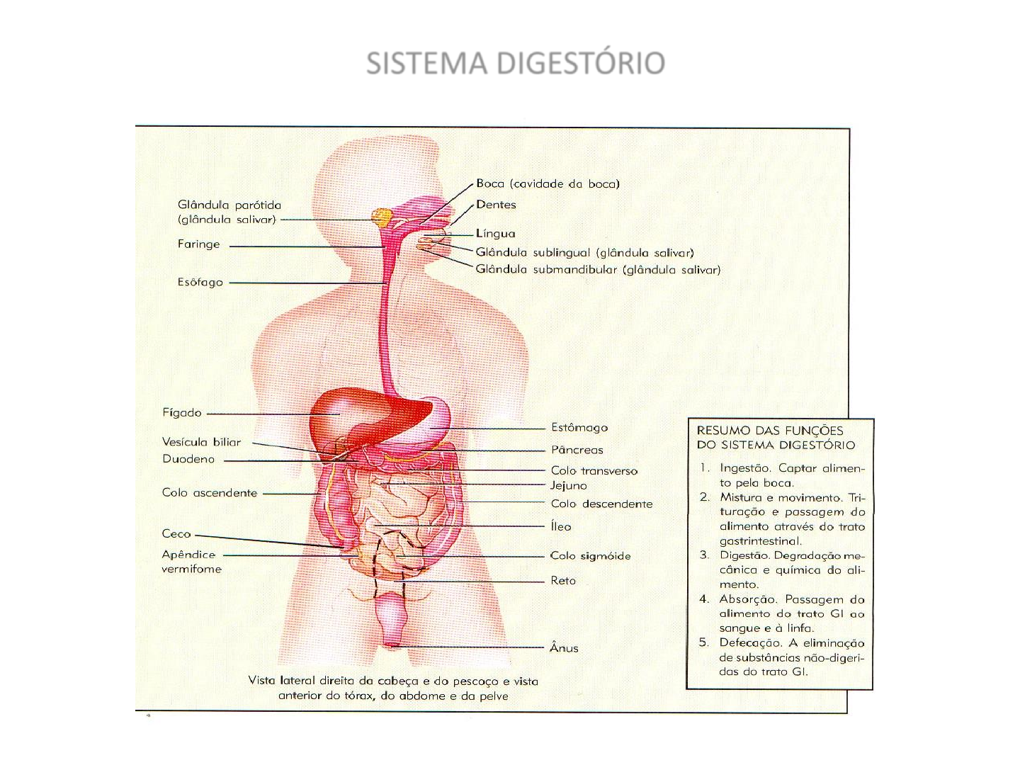 SISTEMA DIGESTÓRIO SISTEMA DIGESTÓRIO 1- Cavidade oral SISTEMA DIGESTÓRIO 1- Cavidade oral 1.1- Língua SISTEMA DIGESTÓRIO 2- Esôfago SISTEMA DIGESTÓRIO 3- Cavidade abdominal 3.1- Peritônio - membrana serosa que reveste a cavidade abdominopelvica e recobre as vísceras. Divide-se em peritônio parietal e peritônio visceral. A cavidade peritoneal é um espaço de espessura capilar entre as duas faces peritoneais. Órgãos intraperitoneais – estomago, intestino delgado, baço, fígado, ceco, colos transversos e sigmóide. Órgãos extra peritoneais Retroperitoneal – duodeno (partes descendentes, horizontal) pâncreas, colos ascendentes e descendentes, reto. SISTEMA DIGESTÓRIO 3.2 – Omento - é uma extensão dupla ou prega de peritônio que passa do estômago e da parte proximal do duodeno para órgãos na cavidade abdominal. O omento divide-se em omento maior e omento menor. SISTEMA DIGESTÓRIO 4- Estômago SISTEMA DIGESTÓRIO 5- Intestino delgado SISTEMA DIGESTÓRIO 5- Intestino delgado 5.1- Duodeno SISTEMA DIGESTÓRIO 5- Intestino delgado 5.2- Jejuno e íleo SISTEMA DIGESTÓRIO 6- Intestino grosso GLÂNDULAS SALIVARES MAIORES GL. PARÓTIDA GL. SUBMANDIBULAR GLS. SUBMANDIBULAR E SUBLINGUAL SISTEMA DIGESTÓRIO SISTEMA DIGESTÓRIO 7- Fígado SISTEMA DIGESTÓRIO 8- Suprimento arterial SISTEMA DIGESTÓRIO 8- Suprimento venoso SISTEMA DIGESTÓRIO 9- Pâncreas SISTEMA DIGESTÓRIO 10 - Comunicação , fígado, pâncreas e duodeno