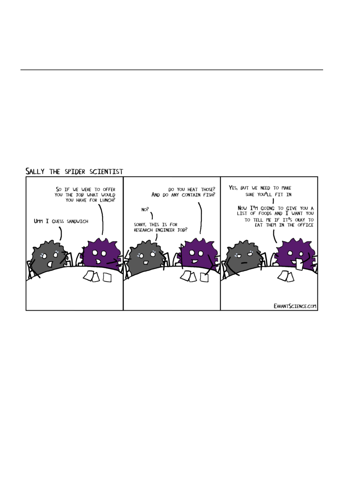 1/3 Afundou o garfo Existem algumas regras básicas não ditas que se deve seguir ao iniciar um trabalho em um lugar com uma cozinha compartilhada, seja na academia ou em outro lugar. 1. Não coma comida fedorenta. 2. Limpa a tua porcaria. 3. Nunca há talheres suficientes; traga o seu próprio. Certamente essas regras devem ser prática padrão para qualquer pessoa em uma situação de cozinha compartilhada, se não apenas para a própria vida. Mas não – aparentemente não. Toda hora do almoço é um campo minado de tentar encontrar um lugar na placa de drenagem para colocar minha tupper lavada e tentar desesperadamente esconder meu garfo sobre minha pessoa para impedi-lo de ser cortado – tudo isso enquanto pregue a respiração para que eu não cheir o cheiro da lata de atum de alguém. Eu acho que é justo generalizar quando eu digo que em todas as cozinhas compartilhadas, o item de talheres mais precioso é o Fork. Nunca há o suficiente, porque os itens de almoço mais vagamente interessantes (exceto sopa ... que seria divertido de assistir) exigem uma assistência de garfo para um consumo eficiente. Então, quando toda hora do almoço eu ouço meus co-sharers de cozinha amaldiçoam quando eles não conseguem encontrar um garfo no suprimento de talheres francamente limitado, eu fico confuso. Quão difícil é trazer um garfo de casa ao lado de seu almoço caseiro, que você também está trazendo de casa? Mais, por que não trazer um de casa apenas uma vez e deixá-lo em sua mesa no trabalho? https://errantscience.com/wp-content/uploads/Fork-Interview.png 2/3 Bem, parece que trazer seu próprio garfo de casa é mais difícil do que, digamos, roubar o garfo de outra pessoa bem debaixo do nariz. Isso mesmo, pessoal, eu fui vítima de FORK THIEVERY. Era uma hora normal de almoço. Eu estava presunçosamente lavando meu garfo e tupperware depois de ter habilmente trazido meu próprio garfo de casa e usado para lobo eficientemente na minha comida. Cercado por pessoas que ainda não tinham para comer seus almoços, ouvi os murmúrios habituais “... sem garfos...”, e tive o cuidado de ficar de olho na minha propriedade (de escritório) mais valorizada. Sequei as minhas coisas e voltei para a minha secretária. Momentos depois, notei que meu garfo não estava em seu lugar seguro habitual na minha mesa – devo ter deixado meu garfo na cozinha! Nooooo! Correndo de volta para reivindicá-lo da placa de drenagem, fiquei muito confuso ao encontrá-lo faltando. Mas... mas... Eu estava na cozinha há poucos segundos! Como é que não está lá?! E depois vi-o. Nas mãos de uma mulher. Quem estava usando-o para turvar seu almoço - e então eu assisti horrorizado enquanto ela lambia os restos. O meu garfo estava contaminado. Tinha sido arrancado de quase literalmente debaixo do meu nariz. Eu sabia que era meu porque eu sou muito protetora dos talheres do meu escritório, e tinha uma grande cruz de marcador permanente preto na parte de trás dele. Eu era FURIOSO. Muitos murmúrios desagradáveis ocorreram quando eu a segui ao redor do escritório com meus olhos odiosos, esperando que ela terminasse seu almoço. No momento em que ela passou pela minha mesa em direção à cozinha, eu pulei e a perseguiu (provavelmente de forma bastante rude) reivindicá-la de volta. - O meu preciososss! Diante dessa grave situação, pensei em uma série de impedimentos para frustrar até mesmo o enredo mais inteligente do ladrão de talheres de escritório. 1. Forco do GPS:Construa um garfo que contenha uma unidade GPS, que será a localização do seu telefone em todos os momentos. Se roubado, você pode se aproximar do Ladrão e dar-lhes uma Firme Telling Off. Prós: A capacidade de confrontar o ladrão, e saber onde está o seu precioso em todos os momentos. Contras: Caro e demorado para construir, provavelmente será bastante volumoso, então funcionará mal como um garfo real, o GPS pode quebrar quando você (ou o ladrão) o lava, e o GPS provavelmente funcionará mal dentro de casa. Talvez apenas adequado para uma situação de piquenique no escritório. 2. Forco de Decoy ForkTraga um garfo sobressalente e dirte-o em algum veneno genérico. Prós: pára o ladrão em suas trilhas (ou algum tempo depois, dependendo de quão rápido é). ConsContras: Provavelmente uma longa sentença de prisão, culpa ao longo da vida, e você pode acidentalmente usá-la sozinho. 3. Fork de aparência grossa: Tamper com o seu garfo de escritório para torná-lo absolutamente nojento, então ninguém quer tocá-lo. Talvez manchar partes dele marrom ou verde para imitar alimentos ou mofo arraigados. Prós: Você pode usar seu garfo. ConsContras: Você não quer usar seu garfo. 4. Piada de piada:Crie uma variedade de talheres fictícios para espalhar sobre o escritório. Todos eles parecem perfeitamente funcionais, mas alguns podem estalar sob a menor pressão (ideal para garfos ou facas) e alguns podem se dissolver quando colocados em líquido quente (gotcha, seu ladrão de colher amante de sopa!). 3/3 Prós: Muito engraçado para assistir colegas de escritório completamente não conseguem comer o almoço. Contras: Apenas para uso (provavelmente caro para manter tal brincadeira) e você pode acidentalmente pegar os talales camuflados hilariantemente camuflados para usá-lo você mesmo e acabar com ovo no rosto – talvez literalmente. Olá! Inscreva-se para receber conteúdo incrível de desenhos animados em sua caixa de entrada, todos os meses. Nós não temos spam! Leia nossa política de privacidade para mais informações. Verifique sua caixa de entrada ou pasta de spam para confirmar sua assinatura. https://errantscience.com/about-us/ardilla/