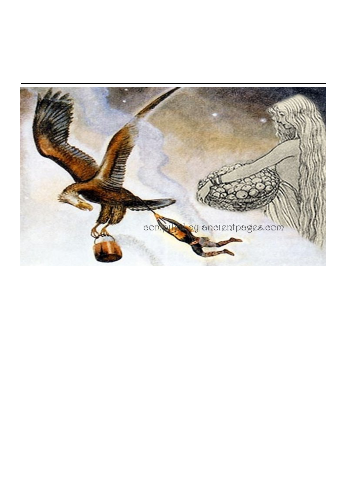 1/6 Rapto de Idun, Goddess-Keeper de maçãs Juvenis Douradas em Mitologia Norgueira Loki, na mitologia nórdica, é um deus esquivo e malévolo e malévolo destinado a ser o adversário dos deuses em Ragnarok, e ainda assim, um companheiro constante para eles, especialmente para Odin e Thor. https://www.ancientpages.com/category/myths-legends/norse-mythology/ https://www.ancientpages.com/2014/06/30/ragnarok-in-norse-mythology-the-doom-of-the-gods-and-apocalyptic-record-of-the-coming-comet/ https://www.ancientpages.com/2016/10/27/odin-norse-god-war-magic-complex-figure-norse-pantheon/ https://www.ancientpages.com/2016/11/07/thor-brave-and-mighty-thunder-god-in-norse-mythology/ 2/6 Thiazzi em disfarce de águia, e Idun - Ilustração de Harry George Theaker para Histórias Infantis das Lendas do Norte por M. Dorothy Belgrave e Hilda Hart, 1920. Domínio público Loki desempenha um papel essencial em inúmeros mitos nórdicos. Em um deles, Loki está seriamente envolvido no sequestro de Idun, o guardião das maçãs juvenis que trazem de volta os jovens aos deuses de Aesir. Idun, uma jovem deusa e esposa de Bragi, era provavelmente um indivíduo popular entre os deuses Aesir. No entanto, ela é mencionada apenas em duas fontes. Uma é a Edda Poética, uma coleção de poemas nórdicos antigos preservados no manuscrito medieval islandês Codex Regius. Outra é a Edda em prosa do século XIII, de Snorri Sturluson. O único mito sobrevivente sobre Idun é sobre seu sequestro por Thiazzi, o gigante da geada e pai de Skadi, deusa da destruição, inverno, caçadores e esquiadores. Thiazzi viveu em Jtunheimr (Jotunheim) e, como seus irmãos, sempre quis derrotar os deuses. Eles tentaram derrotá-los em uma batalha aberta, mas ele decidiu privá-los da juventude eterna. https://www.ancientpages.com/wp-content/uploads/2019/11/idunthiazzi11.jpg https://www.ancientpages.com/2016/01/02/the-golden-apple-myth-and-norse-goddess-idun/ https://www.ancientpages.com/2018/03/17/bragi-norse-god-of-poetry-eloquence-music-and-singing-and-husband-to-idun-who-protected-golden-apples/ https://www.ancientpages.com/2018/04/10/war-between-the-aesir-and-the-vanir-gods-in-norse-mythology/ https://www.ancientpages.com/2015/04/27/search-mysterious-fountain-youth/ 3/6 Para os deuses, o desaparecimento de Idun tornou-se fatal. Ela e suas maçãs os mantinham jovens para sempre, mas rapidamente se tornaram velhos e impotentes sem eles. Alguém tinha visto o deus trapaceiro Loki com Idun ir para uma floresta, e então ela desapareceu, então os deuses tiveram que agir rápido e encontrá-la o mais rápido possível. De acordo com Snorri, o grande deus Odin, seu irmão Hoenir, o deus do silêncio, e Loki foram explorar. Quando ficaram com fome, mataram um boi, construíram um fogo e cozinharam a carne. Mas não importa o que fizessem, a carne permaneceu crua e não apta para ser comida. De repente, uma enorme águia pousou em uma árvore próxima e disse que faria seu fogo queimar como um forno para cozinhar a carne se ele pudesse ter um pedaço de comida. Thiazzi leva Loki embora. Rydberg, em Viktor. Em 1906. Mitologia Teutônica Vol. - Eu. I. Enfrentando a página 174. Domínio público. Os deuses concordaram, e a carne imediatamente começou a ser assada diante de seus olhos e logo estava pronta. A águia foi a primeira a tomar sua parte, e até muitas mais peças. Loki, com raiva, agarrou uma vara grossa tentando bater no pássaro, mas a águia pegou-o com suas garras fortes e afiadas e voou para as nuvens, arrastando o deus do fogo atrás dele. Esta viagem aterrorizante no ar assustou Loki, e ele implorou por misericórdia. Quando Loki prometeu entregar Idunn e suas maçãs da juventude para ele, a águia finalmente o jogou no chão. Meus irmãos são estúpidos; eles estão tentando derrotar os deuses em batalha aberta. Eu decidi privá- los da juventude eterna, então vá Loki agora e me traga Idun", disse a águia gigante. Por que Thiazzi queria tirar maçãs douradas dos deuses? Os gigantes também desejavam provar as maçãs da eterna juventude? https://www.ancientpages.com/wp-content/uploads/2019/11/thiazziloki19.jpg 4/6 Na mitologia grega, o famoso Jardim das Hesperíço está cheio de maçãs mágicas, garantindo a imortalidade. Infelizmente, essas maçãs pertenciam aos deuses. Muitas tentativas foram feitas para roubar essas preciosas maçãs pelos mortais, mas o dom da imortalidade sempre pertenceu a divindades, não reis ou nobres. Cunning Loki não pode quebrar o juramento Loki agora sabia que a águia era Thiazzi disfarçada. Ele estava em apuros e sabia que pagaria por sua má-aventura. Normalmente, o próprio Loki era aquele que fazia truques sobre os deuses e as pessoas. O Aesir, sem dúvida, se vingaria dele pelo sequestro da esposa e maçãs de Braga da eterna juventude. Mas ele também sabia que não podia quebrar o juramento. Tiatzi ajudou Loki a alcançar Bifrost, a ponte do arco-íris, conectando Asgard, o mundo da tribo de deuses de Aesir, com o mundo da humanidade, Midgard. Loki correu para o palácio do deus dos poetas, onde ele encontrou Idun. "Venha comigo, Idun", disse o astuto Loki. https://www.ancientpages.com/category/myths-legends/greek-mythology/ https://www.ancientpages.com/2018/07/31/hesperides-greek-nymphs-who-guarded-fabled-garden-with-divine-apples-of-immortality/ https://www.ancientpages.com/2016/02/06/heimdallr-norse-god-illuminates-world-guards-rainbow-bridge-bifrost-asgard/ https://www.ancientpages.com/2016/08/07/asgard-enter-the-ancient-kingdom-of-the-powerful-norse-gods/ https://www.ancientpages.com/2017/03/08/mysterious-nine-worlds-of-yggdrasil-the-sacred-tree-of-life-in-norse-mythology/ 5/6 Odin, Hoenir e Loki observados pelo gigante Thiazzi disfarçado de águia. Ilustração em Olafur Brynjulfsson Edda 1760 “Em uma floresta, na terra, vi uma macieira na qual as maçãs crescem ainda melhor do que a sua.” “Tomai as vossas maçãs contigo, para que possas comparar quai