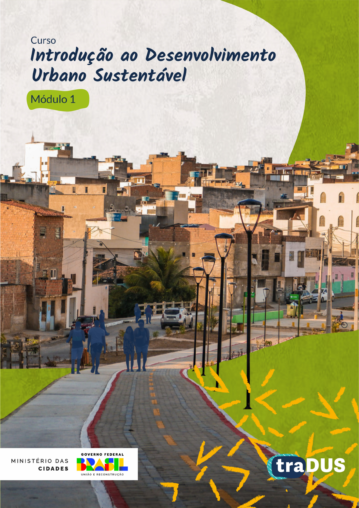 EXPEDIENTE PRESIDÊNCIA DA REPÚBLICA Luiz Inácio Lula da Silva Presidente da República MINISTÉRIO DAS CIDADES Jader Fontenelle Barbalho Filho Ministro de Estado Secretaria Nacional de Desenvolvimento Urbano e Metropolitano Departamento de Adaptação das Cidades à Transição Climática e Transformação Digital Coordenação-Geral de Adaptação das Cidades às Mudanças Climáticas SGAN 906, Módulo F, Edifício Celso Furtado 2º andar – 70790-066 – Brasília – DF, Brasil UNIVERSIDADE FEDERAL RURAL DO SEMI-ÁRIDO - UFERSA NÚCLEO DE PESQUISA E EXTENSÃO ACESSO À TERRA URBANIZADA Projeto traDUS O Projeto traDUS é resultado de parceria entre o Ministério das Cidades, por meio da Secretaria Nacional de Desenvolvimento Urbano e Metropolitano, e da Universidade Federal Rural do Semi-Árido - UFERSA, representada pelo Núcleo de Pesquisa e Extensão Acesso à Terra Urbanizada. Seu principal objetivo é promover a cooperação técnico-científica e o intercâmbio de conhecimentos, informações e experiências. O projeto abrange diversas atividades, incluindo a produção de conteúdos em diferentes formatos destinados a uma campanha pública sobre desenvolvimento urbano, a realização de cursos de capacitação na temática e a utilização de recursos digitais para a informação, planejamento, gestão e governança municipais, com foco no desenvolvimento urbano sustentável. A presente publicação faz parte do Curso de Introdução ao Desenvolvimento Urbano Sustentável, promovido pelo Projeto traDUS. Mais informações em: https://projetotradus.org/ Realização Secretaria Nacional de Desenvolvimento Urbano e Metropolitano/ Ministério das Cidades Universidade Federal Rural do Semi-Árido/ Ministério da Educação Comitê Científico Ana Paula Bruno Denise Schuler Fernanda Capdeville Fajardo de Queiroz Raquel Furtado Martins de Paula Sarah Habersack Copyright © 2023 - Acesso à Terra Urbanizada by Projeto TraDUS PRESIDÊNCIA DA REPÚBLICA Luiz Inácio Lula da Silva Presidente da República MINISTÉRIO DAS CIDADES Jader Fontenelle Barbalho Filho Ministro de Estado SECRETARIA NACIONAL DE DESENVOLVIMENTO URBANO E METROPOLITANO Carlos Roberto Queiroz Tomé Júnior Secretário Nacional Chefia de Gabinete André Milhome de Andrade Chefe de Gabinete Coordenação-Geral de Gestão Integrada Helen Alves de Moura Nunes Coordenadora-Geral DEPARTAMENTO DE ADAPTAÇÃO DAS CIDADES À TRANSIÇÃO CLIMÁTICA E TRANSFORMAÇÃO DIGITAL Yuri Rafael Della Giustina Diretor Coordenação-Geral de Adaptação das Cidades às Mudanças Climáticas Raquel Furtado Martins de Paula Coordenadora-Geral Coordenação de Apoio à Adaptação às Mudanças Climáticas Fernanda Capdeville Fajardo de Queiroz Coordenadora de Apoio Equipe Técnica Elize Risseko Fujitani Higuti Leonardo Rizzo de Melo e Souza Coordenação-Geral de Modernização Urbana Marília Gomes de Morais Santos Coordenadora-Geral Coordenação de Apoio à Modernização Urbana Luiz Paulo de Oliveira Silva Coordenador de Apoio Equipe Técnica Marina Braga Ramalho Milton de Oliveira Júnior DEPARTAMENTO DE ESTRUTURAÇÃO DO DESENVOLVIMENTO URBANO E METROPOLITANO Cristiana Scorza Guimaraens Diretora Coordenação-Geral de Fortalecimento das Capacidades Governativas Rogério Borges Marques Coordenador-Geral Equipe Técnica Cesar Augustus De Santis Amaral Marília Gomes de Morais Santos Michel de Araújo da Costa Pedro Henrique Soares Pinto FICHA TÉCNICA UNIVERSIDADE FEDERAL RURAL DO SEMI-ÁRIDO – UFERSA NÚCLEO DE PESQUISA E EXTENSÃO ACESSO À TERRA URBANIZADA Projeto traDUS | Capacitação Coordenador pedagógico Almir Mariano de Sousa Júnior Coordenação Técnica Hiatiane Cunha de Lacerda Lauren Cavalheiro da Costa Coordenação Executiva e Comissão Científica Taís Jamra Tsukumo Flávio Tavares Brasileiro Camila Leal Costa Bolsistas Heloise Almeida Maia Juliana de Castro Souza Dario Policarpo dos Santos Moreira Curso de Introdução ao Desenvolvimento Urbano Sustentável Equipe de docentes Módulo 1 Marly Santos da Silva Luciana Viana Carpaneda Módulo 2 Adriana Nogueira Vieira Lima Liana Silvia de Viveiros e Oliveira Módulo 3 Leticia Domingos Vellozo Lucas de Carvalho Turmena Palestrantes Módulo 3 Eduardo Cidade Carniello Joilson Santos Santana José Alberto Tostes Juliana Bernardi Petek Márcia de Figueirêdo Lucena Lira Mathews Vichr Lopes Revisão técnica Daniela de Freitas Lima Revisão linguística Fernando da Silva Cordeiro Projeto gráfico e Diagramação Nina Vitória Cavalcante e Silva Bolsistas Ruth Emny de Lima Tâmara Nayanne de Oliveira Gomes Lowany Marian dos Santos Silva Henrique Lima Araujo Gravação e edição de vídeos CMC Vídeo Mazza Facility Edição e finalização de vídeos Jakson Diego Gomes Farias Samuel Alves da Silva Intérprete de libras Rafaele Ramona Rodrigues de Oliveira Treinamento em comunicação e gravação de vídeos Luciana Martuchelli | TAO Filmes Sensibilização em linguagem simples Heloisa Fischer | Comunica Simples Nossos cadernos técnicos possuem conteúdo interativo. Isto quer dizer que, ao longo da leitura, você será direcionada e direcionado a aprofundar o conhecimento sobre desenvolvimento urbano sustentável em diferentes locais. Os boxes que aparecem ao longo do caderno técnico trazem vídeos informativos e ilustrados, legislação na íntegra, dicas e informações atualizadas. Acessando as diferentes opções, você poderá usufruir ainda mais do conhecimento sobre o tema, a partir das diversas oportunidades tecnológicas do universo virtual. Para facilitar seu acesso a todos os conteúdos, veja as informações abaixo: Ao longo da apostila, distribuímos conteúdos complementares para aumentar a sua informação. No ‘‘Saiba mais’’, você encontrará QR codes, basta você escanear através do seu smartphone ou tablet, ou, se preferir, pode clicar em cima dele e ir direto para a página. Navegue entre o sumário e os tópicos rapidamente pressionando na seta