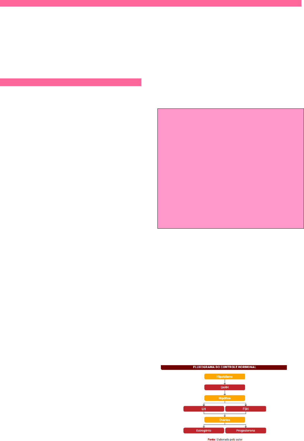 Amenorreias e SOP • Revisar o ciclo menstrual. • Entender a classificação clínica, diagnóstico e tratamento da amenorreia. • Compreender a fisiopatologia, clinica e diagnóstico da SOP. Ciclo menstrual Define-se ciclo menstrual normal como aquele com 28 ± 7 dias, fluxo durando 4 ± 2 dias, e perda média de 20 a 60 mL de sangue. Por convenção, o primeiro dia de sangramento vaginal é considerado o primeiro dia do ciclo menstrual. Os intervalos entre ciclos menstruais variam entre as mulheres e, com frequência, em uma mesma mulher em épocas diferentes de sua vida reprodutiva. Quando observado sob a perspectiva da função ovariana, o ciclo menstrual pode ser definido em fase folicular pré-ovulatória e fase lútea pós-ovulatória. As fases correspondentes no endométrio denominam-se fase proliferativa e fase secretora. Na maioria das vezes a fase lútea do ciclo menstrual é estável, durando entre 13 e 14 dias. Consequentemente, variações no período do ciclo normal geralmente resultam de variações na duração da fase folicular. O ciclo menstrual é consequência da interação entre o hipotálamo-hipófise os ovários e o útero. O hipotálamo, que encontra-se na base do cérebro, imediatamente acima da junção dos nervos ópticos. Seus neurônios são especialmente importantes na produção de hormônios, dentre eles o GnRH. Em relação à produção do GnRH, O hipotálamo é influenciado tanto por sinais extrínsecos e intrínsecos ao SNC, quanto pelo controle do ovário. A influência exercida pela secreção ovariana sobre o hipotálamo é denominada de feedback, sendo este positivo quando os esteroides ovarianos estimulam a produção do GnRH, e negativo quando a secreção ovariana inibe a produção do GnRH. Além disso, o próprio GnRH controla sua produção, agindo diretamente no hipotálamo, então quando está disponível em grande quantidade ele atua reduzindo sua produção, já quando está presente em níveis baixos, age estimulando sua liberação. O GnRH é responsável pela indução da liberação de gonadotrofinas pela adeno-hipófise. Quanto à função reprodutiva, o GnRH é o principal hormônio. Na mulher, ele é liberado de uma forma pulsátil, sendo sua periodicidade e amplitude críticas para determinar a liberação correta e fisiológica do FSH e LH (produzidos na adenohipófise). Hipófise: É uma glândula neuroendócrina situada na sela túrcica, e é dividida em adeno-hipófise e neuro-hipófise. A adeno-hipófise é responsável pela secreção dos hormônios folículo-estimulante (FSH) e luteinizante (LH), entre outros. O GnRH age nas células gonadotróficas da hipófise anterior (adeno-hipófise), estimulando-as a sintetizar e secretar na corrente sanguínea tanto o FSH quanto o LH. No entanto, a secreção de LH é, essencialmente, caracterizada por um pico no meio do ciclo menstrual. Já a secreção de FSH caracteriza-se por um aumento na fase folicular inicial, um platô na fase lútea e acentuada elevação na fase lútea tardia. Ou seja, as gonadotrofinas são secretadas de forma pulsátil, com frequência e amplitude que variam de acordo com a fase do ciclo. Os hormônios esteroides, como o estradiol e a progesterona, ou fatores ovarianos não esteroides, como a inibida, são os moduladores da secreção de LH e FSH. Ovários: O ovário em funcionamento normal sintetiza e secreta hormônios esteroides sexuais – estrogênios, androgênios e progesterona – com padrão de controle preciso que, em parte, é determinado pelas gonadotrofinas hipofisárias, FSH e LH. Os produtos secretórios mais importantes da biossíntese de esteroides pelos ovários são a progesterona e o estradiol. Entretanto, o ovário também secreta estrona, androstenediona e 17a−hidroxiprogesterona. Os hormônios esteroides sexuais desempenham papel importante no ciclo menstrual preparando o útero para implantação do óvulo fertilizado. Se a implantação não ocorrer, a esteroidogênese ovariana declina, o endométrio degenera e ocorre a menstruação. Útero: A parede uterina consiste em três camadas: serosa, a camada mais externa; miométrio, constituído de músculo liso; e endométrio, a camada mais interna, subdividida em estroma e glândulas. As alterações cíclicas, induzidas pelos hormônios ovarianos, só se manifestam na camada mais superficial endométrio. Fisiologia do ciclo menstrual De forma didática, o ciclo menstrual pode ser dividido em dois ciclos que interagem e são interdependentes: ovariano e endometrial (menstrual). Ciclo Ovariano O ciclo ovariano pode ser dividido em três fases: fase folicular, fase ovulatória e fase lútea. Fase Folicular: A fase folicular, ou proliferativa, é a primeira fase do ciclo menstrual, e ocorre do primeiro dia da menstruação até o dia do pico de LH. Durante essa fase, ocorre uma sequência ordenada de eventos, que assegura que um número apropriado de folículos se desenvolva e esteja pronto para a ovulação. O resultado final desse desenvolvimento folicular é, comumente, um único folículo maduro viável, o qual passará pelos estágios de folículo primordial, folículo primário, folículo pré-antral, antral e pré -ovulatório. Esse processo ocorre ao longo de 10 a 14 dias. O sinal para o recrutamento folicular inicia-se na fase lútea do ciclo anterior, com a diminuição da progesterona, do estradiol e da inibina A. Como consequência, o feedback negativo sobre o FSH é liberado, observa-se então seu aumento nos primeiros dias da fase folicular. Esse aumento é o sinal para o recrutamento folicular. Aproximadamente 15 ou mais folículos são recrutados a cada ciclo. Desenvolvimento Folicular: O desenvolvimento folicular inicia-se com os folículos primordiais gerados durante a vida fetal. Esses folículos nada mais são que oócitos suspensos na primeira divisão meiótica, circundados por uma camada única de células granulosas achatadas. São separados do estroma po