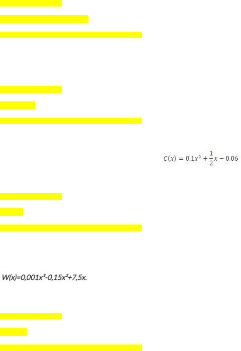 ➜ QUESTIONÁRIO I – CÁLCULO DIFERENCIAL E INTEGRAL · O cálculo diferencial e integral inclui o operador de derivação. Esse operador permite a solução e a obtenção de equações com significados gráficos. Entre elas se destaca a equação: Resposta Marcada : Da reta tangente ao ponto. PONTUAÇÃO TOTAL: 2PONTUAÇÃO OBTIDA 2 · A partir da avaliação do crescimento populacional de mosquitos em um bairro em uma cidade, foi obtida a seguinte função: f(x)=6x³-300x f(x) é a população (em milhares), e x, o tempo em anos. Calcule a taxa de variação quando x for igual a 10 anos. Resposta Marcada : 1500 /ano. PONTUAÇÃO TOTAL: 2PONTUAÇÃO OBTIDA 2 · A partir da avaliação da dispersão de calor sobre uma parede irradiada pela luz do Sol, observa-se a temperatura em °C conforme se aprofunda em mm na sua espessura, sendo obtida a seguinte função: C(x) é a temperatura na parede, e x, a profundidade em mm. Qual é a profundidade para que a taxa de variação seja de 4,5ºC/mm? Resposta Marcada : 20mm. PONTUAÇÃO TOTAL: 2PONTUAÇÃO OBTIDA 2 · A partir da avaliação da variação da quantidade de processamento de uma máquina de reciclagem de latinhas em kg conforme varia o tempo, foi obtida a seguinte função: W(x) é a capacidade de reciclagem, e x o tempo em horas. Calcule a taxa de variação quando x for igual a 10 horas. Resposta Marcada : 4,8kg/h. PONTUAÇÃO TOTAL: 2PONTUAÇÃO OBTIDA 2 · A partir da avaliação da variação da quantidade em mg de CO retida em um filtro de uma chaminé conforme varia o tempo, foi obtida a seguinte função: R(x) é a quantidade de CO retida, e x o tempo em meses. Calcule a taxa de variação CO quando x for igual a 10 meses.” Ainda neste exercício todas as alternativas estão com a seguinte unidade de medida “mg/meses” o cliente pede para que seja modificado por “mg/mês”. Resposta Marcada : 0,18mg/meses. PONTUAÇÃO TOTAL: 2PONTUAÇÃO OBTIDA 2 · Qual a taxa de variação da função, quando X igual a 3 descrita por: f(x) = 2x+3 Resposta Marcada : 2. PONTUAÇÃO TOTAL: 2PONTUAÇÃO OBTIDA 2 · Qual a taxa de variação da função, quando x igual a 1, descrita por: f(x)= x² – 5x Resposta Marcada : – 3; PONTUAÇÃO TOTAL: 2PONTUAÇÃO OBTIDA 2 · Determine a derivada de segunda ordem da função polinomial a seguir: Y = x³ – 10x² – 8 Resposta Marcada : y´´ = 6x – 20. PONTUAÇÃO TOTAL: 2PONTUAÇÃO OBTIDA 2 · Calcule a reta tangente da função: y = x² – 3x. Resposta Marcada : y´ = 2x – 3. PONTUAÇÃO TOTAL: 2PONTUAÇÃO OBTIDA 2 · Seja uma função f(x). A reta tangente a essa curva no ponto P é y= 5x+3. Determine a derivada dessa função no ponto P. Resposta Marcada : A derivada da função é 5. PONTUAÇÃO TOTAL: 2PONTUAÇÃO OBTIDA 2 Total20 / 20 image1.png image2.png image3.png