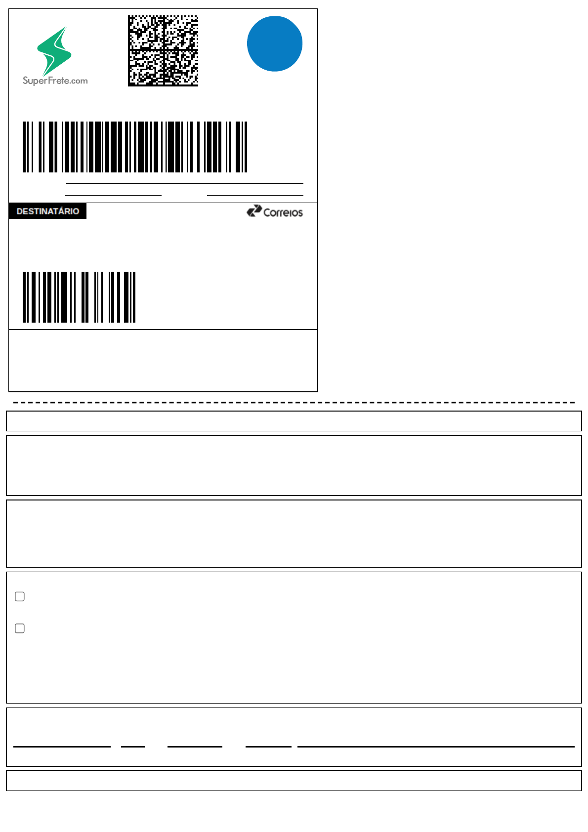 NF: 0000000000 Pedido: 2016035747 Contrato: 9912504122 PAC Volume: 1/1 Peso (g): 300 QR 899 289 021 BR Recebedor: Assinatura: Documento: Theo Rodrigo Fernandes Rua Elizário Dias Guilon, 280 Bairro: Jardim Silvania 13806678 Mogi Mirim/SP Remetente: Aline Cabral rodrigues da conceição Avenida Araraquara, 329 Bairro: Vila Brasília 13566770 São Carlos/SP DECLARAÇÃO DE CONTEÚDO Remetente Destinatário Nome: Aline Cabral rodrigues da conceição Nome: Theo Rodrigo Fernandes Endereço: Avenida Araraquara, 329, , Vila Brasília Endereço: Rua Elizário Dias Guilon, 280, , Jardim Silvania Cidade: São Carlos, UF: SP Cidade: Mogi Mirim, UF: SP CEP: 13566770, CPF/CNPJ: 49979253819 CEP: 13806678, CPF/CNPJ: 499.792.538-19 Identificação dos bens Item Conteúdo Quantidade Valor 1 Miniatura Ferrari f2004 1 50,00 Totais: 1 50,00 Peso total (Kg) 0,3 DECLARAÇÃO Declaro que me enquadro no conceito de contribuinte previsto no art. 4º da Lei Complementar nº 87/1996 e que, em razão disso, estou enviando a nota fiscal afixada à mercadoria. Declaro que não me enquadro no conceito de contribuinte previsto no art. 4º da Lei Complementar nº 87/1996, uma vez que não realizo, com habitualidade ou em volume que caracterize intuito comercial, operações de circulação de mercadoria, ainda que se iniciem no exterior, ou estou dispensado da emissão da nota fiscal por força da legislação tributária vigente, responsabilizando-me, nos termos da lei e a quem de direito, por informações inverídicas. Declaro ainda, que não estou postando nos Correios objetos classificados como proibidos pela legislação vigente, incluindo as vedações constantes do Art. 13º da Lei nº. 6538/78. Certifico que tenho conhecimento do conteúdo da lista de restrições e proibições disponível no Portal dos Correios no endereço : http://www.correios.com.br/precisa-de-ajuda/proibicoes-e-restricoes/proibicoes-e-restricoes. São Carlos , 14 de Junho de 2024 Assinatura do Declarante/Remetente Constitui crime contra a ordem tributária suprimir ou reduzir tributo,ou contribuição social de qualquer acessório (Lei8.137/90 Art1,V).