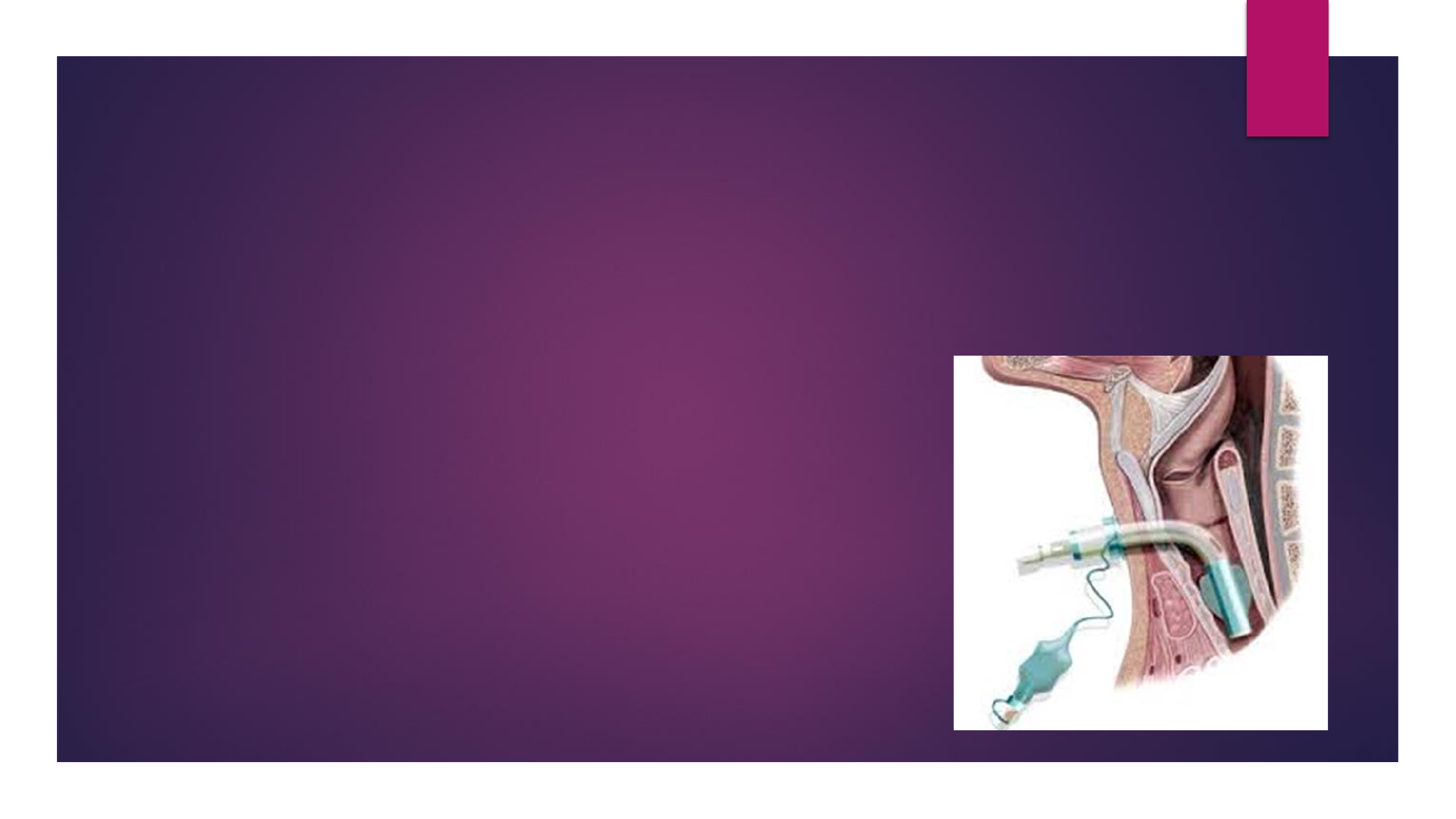 TRACHEOSTOMIA Gestione ed Assistenza TRACHEOTOMIA TRACHEOSTOMIA Tracheotomia Apertura TEMPORANEA a livello dei primi anelli tracheali (2° - 4°) permette una ventilazione assistita o spontanea . • Interventi chirurgici testa/collo che rendono impossibile l’intubazione attraverso la bocca; • Urgenza, in caso di ostruzione delle vie aeree superiori, traumi che impediscano la normale respirazione. Al termine del periodo di intubazione, dell’intervento chirurgico e dell’urgenza, la tracheotomia viene chiusa, salvo se indispensabile per sopraggiunti motivi. Procedura chirurgica Tracheotomia: La realizzazione della tracheotomia può essere effettuata in situazioni di emergenza oppure, in elezione in pazienti già intubati ✓ Emergenza: necessaria quando il pz, affetto da insufficienza respiratoria acuta, si è impossibilitati ad intubare ✓ Elezione: effettuata nel momento in cui l’intubazione tracheale si protrae oltre un certo limite di tempo. Nel caso in cui si prevede per il pz un’assistenza ventilatoria prolungata è utile ricorrere precocemente ad una tracheotomia ( > 21 gg ) Tracheostomia - Presenza di ostacoli delle vie aeree superiori: tumori faringe, laringe, cavo orale in caso - Protezione delle vie aeree: Ictus cerebrale, stato di coma, stati vegetativi → riflessi glottici e della tosse sono assenti o insufficienti) Posizionamento di una via aerea definitiva → Creazione di un’apertura permanente della trachea, tramite abboccamento della breccia tracheale alla cute degli anelli tracheali Anche senza la presenza di una cannula l’apertura rimane pervia! - Insufficienza respiratoria (Malattie neuromuscolari come SLA - Sclerosi multipla,.. INDICAZIONI CLINICHE Indicazioni Cliniche: • Quando è prevista una ventilazione meccanica Invasiva > 20 gg Vantaggi della cannula tracheostomica rispetto IO ▪ Maggior confort per la persona ▪ Più efficace nella rimozione delle secrezioni → Minor rischio di Infezioni Polmonari ▪ Riduce l’utilizzo di sedativi ▪ Favorisce lo svezzamento dal ventilatore ▪ Miglior comunicazione Tecniche chirurgiche: ➢ Aperta/tradizionale→ Diverse modalità di intervento,….incisione chirurgica nella trachea appena sotto la laringe. ➢ Si effettua in sala operatoria in anestesia generale. Tecniche chirurgiche: ➢ Inserimento Percutaneo → diverse modalità di intervento,…può essere fatta anche a letto del paziente Prevede l’introduzione, tra due anelli tracheali, ago cannula 14 G collegato ad una siringa di SF → guida metallica sulla quale un dispositivo di dilatazione realizza l’orifizio di tracheotomia. - Minor rischio di complicanze - Meno invasiva - Procedura più rapida ( 15-20 minuti) Indicazioni Cliniche: • URGENZA ( kit Cricotomia ) – tecnica di scelta nelle emergenze (es. trauma facciale) Manovra «tampone» salvavita, consiste nel perforare/incidere la membrana cricotiroidea per inserire una cannula in trachea e ossigenare il paziente. Permette l’aspirazione e la ventilazione con una cannula di piccolo diametro 1: Cartilagine tiroidea 2: Legamento della cricoide 3: Cartilagine cricoidea 4: Trachea Punto d'incisione per la cricotomia Punto d'incisione per la tracheotomia E’ molto importante mantenere in sede la cannula tracheostomica. → > nella tecnica percutanea, lo spostamento immediato comporta una perdita del controllo delle vie aeree → difficoltà di riposizionamento attraverso lo stoma → tende a chiudersi velocemente COMPLICANZE IMMEDIATE: si verificano durante la procedura COMPLICANZE PRECOCI: si manifestano entro 24 – 48 ore dall’intervento COMPLICANZE TARDIVE: si manifestano dopo 48 ore dall’intervento POSSIBILI COMPLICANZE: ✓ Se lo stoma sanguina → una medicazione compressiva ed eventuale revisione chirurgica ✓ Enfisema sottocutaneo al collo → oppure percepisco dei crepitii sottocutanei vicino allo stoma → Informare il medico→ Radiografie ( PNX o Pneumomediastino) POSSIBILI COMPLICANZE DA MONITORARE: CANNULA TRACHEOSTOMICA Presidio medico che consiste in un tubo ricurvo, inserito nella tracheostomia per mantenerla aperta e permettere la gestione delle vie aeree Caratteristiche della Cannula Tracheale ✓ Materiale: - PVC biocompatibile (le più usate, non contengono lattice, sono anallergiche, radiopache,..) ✓ Caratteristiche: - Diametro interno ed esterno ( in base alla dimensione dello stoma tracheale → 9,4 e 13,8 mm nell’adulto) - Lunghezza - Flangia - Curvatura (angolate o curve→ adattamento della cannula alla trachea per evitare decubiti) - Punta - Cannule cuffiate (CC) - Cannule Non Cuffiate ( CNC) - Cannule Fenestrate (CF) - Cannule Non Fenestrate Il Numero della Cannula si riferisce al diametro INTERNO - Collegare a - Collegare al ventilatore - Estrarre la controcannula - Posizionamento di tappi/valvole fonatorie Palloncino Linea di gonfiaggio Valvola unidirezionale Cuffia Cannula Flangia Sistema di blocco Controcannula Mandrino FLANGIA: forma ortogonale, poggia sul collo e ne permette il fissaggio tramite lacci o collare velcro Mandrino/Otturatore: Impiegato per agevolare l’inserimento della cannula e poi rimosso. !! Non deve essere gettato ma tenuto in caso di dislocazione o reinserimento della cannula Controcannula: utilizzata per impedire l’ostruzione della cannula, viene rimossa, lavata regolarmente o sostituita Cuffia: protegge le vie aeree dall’inalazione mantiene La chiusura pneumatica durante la VM Forma: Angolata e Semicerchio Cannule Tracheostomiche ✓ Cuffiata È circondata da un palloncino gonfiabile che garantisce una tenuta ermetica tra il tubo e la trachea. Impedisce l’aspirazione di secrezioni orofaringee e la perdita d’aria tra la cannula e la trachea. L’aria espirata non passa dalla laringe, bensì dalla cannula stessa. E’ importante controllare la pressione di gonfiaggio della cuffia → una pressione troppo alta potrebbe causare ulcere mucosa tracheale/ ischemia tracheale. La pressione NON deve superare i 20- 25 c