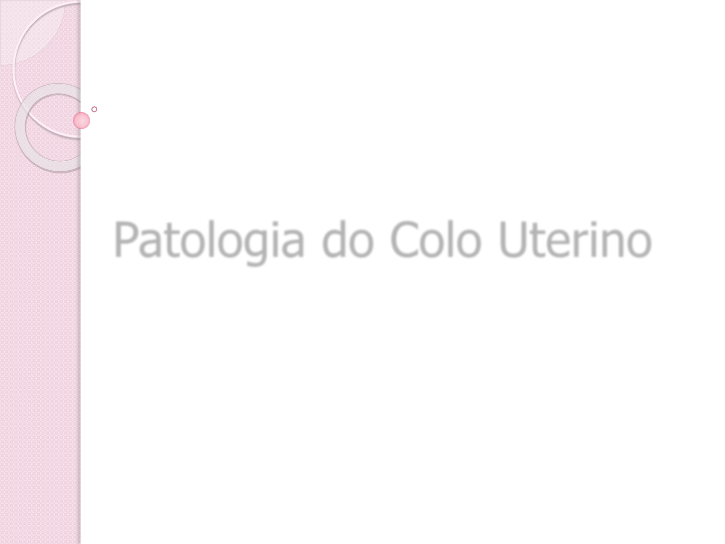 Patologia do Colo Uterino Profª. Paula Carpi COLO NORMAL Colposcopia citologia e histologia normais HPV e Câncer do Colo Uterino ENDOCÉRVICE NORMAL Mucosa endocervical normal HPV e Câncer do Colo Uterino HPV e Câncer do Colo Uterino Principais categorias Carcinoma Epidermóide 80% Adenocarcinoma 10% Adenoescamoso e Neuroendócrino 10% INTRODUÇÃO (INCA, Guerra et al., 2005; Guarisi et al., 2004) HPV e Câncer do Colo Uterino Epidemiologia • Terceiro câncer mais incidente na população feminina; • 80% dos casos em países em desenvolvimentos; • É raro em mulheres até 30 anos e sua incidência aumenta progressivamente com pico na faixa de 45 a 50 anos. INTRODUÇÃO ( INCA, Fisher et al., 2013; Bezerra et al., 2005) HPV e Câncer do Colo Uterino Epidemiologia • 527 mil casos novos/ano no mundo; • 265 mil óbitos/ano no mundo; • Para o ano de 2014, no Brasil, são esperados 15.590 casos novos de câncer do colo do útero, com um risco estimado de 15,33 casos a cada 100 mil mulheres INTRODUÇÃO ( INCA, 2014) Estimativa INCa 2014 HPV e Câncer do Colo Uterino • Condição socioeconômica; • Inicio precoce da atividade sexual; • Número de parceiros; • Deficiência vitamínicas; • Imunidade; • Genética; • Tabagismo; • Contraceptivos orais; • Infecção por HPV (Aleixo Neto., 1991; Murta el al., 1999; Martins el al., 2005) Fatores de risco HPV e Câncer do Colo Uterino Tipos 6 e 11 são responsáveis por mais de 90% dos casos de verrugas anogenitais e 25% das lesões intraepiteliais cervicais de baixo grau. HPV 16 e 18 estão associados a aproximadamente 25% das lesões intraepiteliais escamosas de baixo grau, 50% das de alto grau e 70% dos casos de carcinoma epidermóide e 90% dos adenocarcinomas de colo uterino . (INCA, Thules et al., 2005; Naucler et al., 2007) Fatores de risco O DNA viral apresenta-se de duas formas, em lesões benignas, livre no núcleo da célula hospedeira (forma epissomal) e nas lesões pré malignas e malignas, integrado ao genoma (forma integrada). Onco-proteína do HPV rompe o ciclo celular levando a uma expressão alterada dos genes controladores do ciclo celular, produzindo instabilidade genômica, levando à deleção ou amplificação da expressão de gene específico do hospedeiro. E6 e E7: bloqueiam a apoptose, removem as restrições a proliferação celular e aumentam a degradação do p53,causando um bloqueio na apoptose e redução na atividade do inibidor do ciclo celular p21. HPV e Câncer do Colo Uterino (Thuler 2008; Noronha el al., 1999; Guarisi et al., 2004) PATOGENIA Zona Transformação Cervical Exposição Sexual HPV Ep escamoso Ep Colunar Ca Epidermóide Adenocarcinoma Alto Risco (16,18)Baixo Risco (6,11) HPV e Câncer do Colo Uterino (INCA, Thules et al., 2005; Naucler et al., 2007) PATOGENIA Colo Uterino ▪ Delgada área circunferencial de transição escamo-colunar. ▪ Local relacionado como sitio de origem da neoplasia relacionada ao HPV. Zona T Zona de transformação Ectocervix Endocervix Ectocervice zona de transformação Céls de reserva Zona de transformação Colo Uterino Define a junção entre ecto e endocérvice Abrigo de células de reserva multipotentes. Endocervice Progressão das lesões Algumas lesões cervicais começam como baixo grau e progridem para alto grau Algumas lesões começam como alto grau. HPV e Câncer do Colo Uterino EVOLUÇÃO HPV e Câncer do Colo Uterino Desenvolvimento lento; Sangramento sexual e secreção vaginal anormal; Dor abdominal; (Thuler 2008; Noronha el al., 1999; Guarisi et al., 2004) Manifestações clínicas Prevenção Preservativo Vacinação HPV e Câncer do Colo Uterino (Lowy DR et al., 2012; Sahasrabuddhe VV et al., 2012) CONDUTA HPV e Câncer do Colo Uterino PREVENÇÃO Papanicolau. Mulheres entre 25 e 64 anos. A cada três anos após dois exames anuais consecutivos normais. Anamnese atenta. HPV e Câncer do Colo Uterino (Naucler P et al., 2007; Cruz LMB, 2008; INCA, 2011; OMS, 2010) RASTREIO RASTREIO HPV e Câncer do Colo Uterino HPV e Câncer do Colo Uterino RASTREIO HPV e Câncer do Colo Uterino PROPEDEUTICA Exame Citologia Rastreamento Papanicolau HPV e Câncer do Colo Uterino (Naucler P et al., 2007; Cruz LMB, 2008; INCA, 2011; OMS, 2010) PROPEDEUTICA HPV Screening CÉLULAS PRESENTES HPV e Câncer do Colo Uterino NORMAL E ALTERAÇÕES BENIGNAS HPV e Câncer do Colo Uterino MICROBIOLOGIA HPV e Câncer do Colo Uterino CÉLULAS ATÍPICAS DE SIGNIFICADO INDETERMINADO HPV e Câncer do Colo Uterino LSIL/HSIL HPV e Câncer do Colo Uterino HPV e Câncer do Colo Uterino RESULTADOS HPV e Câncer do Colo Uterino Neoplasia Intraepitelial Lesões não invasivas que vão de lesões de baixo grau (NIC I) até alto grau (NICIII)/ carcinoma in situ (NIC III) (Kumar V et al., 2008, p. 1123) RESULTADOS HPV e doença invasiva Existe tropismo celular específico para diferentes HPVs HPV 6 ◦ Sempre lesão escamosa HPV 16 ◦ Lesão escamosa e glandular HPV 18 ◦ Mais comum HPV em lesões glandulares HPV e Câncer do Colo Uterino Carcinoma IB2 e IIA (> 4 cm), IIB, IIIA, IIIB e IVA Estádios Iniciais Conização ou traquelectomia c/ linfadenectomia Lesão invasiva < 2cm Cirurgia conservadora Quimioterapia + Radioterapia (INCA, 2011) TRATAMENTO MUCOSA GLANDULAR Epitélio Atípico/ céls. de reserva Alterações em epitélio cilíndrico Atipia em células de epitélio glandular de significado indeterminado Adenocarcinoma in situ Problema de saúde pública Prevenção e rastreio CÂNCER DO COLO UTERINO HPV e Câncer do Colo Uterino Obrigada!