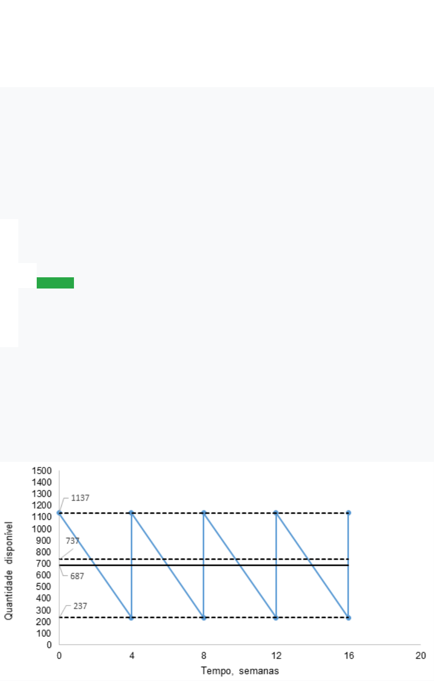 Previsão de demanda e gestão de estoques Anhanguera educacional pós-graduação engenharia logística 1) Um empresário trabalha com perfumes importados comprados na França a um custo de R$ 150,00 e que são vendidos no Brasil. Em cada viagem para França, são gastos R$ 8.000, valor que independe da quantidade trazida. A demanda anual pelos perfumes é de 1.440 unidades por ano, e pagam-se encargos financeiros sobre os perfumes de 75% ao ano. Quais são os custos totais quando o empresário faz duas viagens ao ano? Alternativas: · R$ 8.122.400,00. · R$ 272.500,00. CORRETO · R$ 162.000,00 · R$ 305.000,00. · R$ 4.282.000,00. Código da questão: 60316 2) Analisar o gráfico referente a um modelo desenvolvido em uma fábrica de leites para controlar os estoques de embalagens. Algumas informações adicionais são que a demanda é de 250 unidades por mês e o tempo de reabastecimento é de dois dias. Em seguida, analise as interpretações sobre o gráfico. I. O estoque de segurança da empresa corresponde a 737 unidades. II. O estoque médio da empresa corresponde a 687 unidades. III. O ponto de pedido é igual a 687 unidades. 4. O lote econômico de reposição é igual a 900 unidades. V. O ponto de pedido corresponde a quatro semanas. São verdadeiras: Alternativas: · II-IV. CORRETO · III-IV-V. · II-IV-V. · III-IV. · I-II-III. Código da questão: 60356 3) Vamos supor que um livro tenha uma demanda anual de 1200 unidades, um estoque de segurança de 80 unidades e um tempo de ressuprimento de 15 dias. Em um ano com 300 dias úteis e que a reposição ocorra por meio de lotes econômicos, calcule o ponto de pedido. Assinale uma alternativa que apresenta o valor do ponto de pedido, bem como a interpretação correta. Alternativas: · PP = 18.080 unidades, ou seja, quando o estoque atingir o nível de 18.080 unidades, deverá ser feito um pedido de compra do lote econômico. · PP = 140 unidades, ou seja, quando o estoque atingir o nível de 140 unidades, deverá ser feito um pedido de compra do lote econômico. CORRETO · PP = 240 unidades, ou seja, quando o estoque atingir o nível de 240 unidades, deverá ser feito um pedido de compra do lote econômico. · PP = 140 dias, ou seja, a cada 140 dias deve ser feito um pedido de compra do lote econômico. · PP = 18.080 unidades, ou seja, a cada 18.080 horas deve ser feito um pedido de compra do lote econômico. Código da questão: 60341 4) O estoque de segurança pode ser calculado quando a demanda é variável, quando o tempo de ressuprimento (lead time) é variável, ou ainda quando ambas as variações. A primeira coluna apresenta as fórmulas para calcular o estoque de segurança, e a segunda coluna indica a aplicabilidade. Assinale uma alternativa que traz a associação correta entre as duas colunas: Alternativas: · IC; II-A; III-B. · I A; II-C; III-A. · IC; II-B; III-A. · BI; II-A; III-C. · I–B; II-C; III-A. CORRETO Código da questão: 60355 5) Considere dois supermercados denominados A e B, que estão esperando a demanda de uma determinada marca de ketchups. O supermercado A oferece um único fornecedor dessa marca, cujos prazos de entrega são normalmente altos. O supermercado B é abastecido por três empresas de localidades próximas. Neste caso, em qual dos dois supermercados o estudo da previsão de demanda é mais importante e por qual motivo? Alternativas: · No mercado B, pois a previsão da demanda garantirá uma tomada de decisão a respeito da quantidade a ser comprada. · No mercado A, pois a previsão de demanda garantirá o número exato de ketchups a serem comprados para o próximo ano. · No mercado A, pois a previsão da demanda permitirá adequar os níveis de estoque necessários para suprir o tempo de abastecimento do fornecedor. CORRETO · No mercado B, visto que a previsão de demanda indicará qual fornecedor escolher. · Tanto o supermercado A quanto o supermercado B não precisam aplicar técnicas de previsão de demanda, uma vez que o número de fornecedores não está relacionado à oferta de ketchup. Código da questão: 60310 6) A técnica de previsão da demanda pela __________é utilizada quando as variações na demanda são randômicas. A técnica de __________ é aplicada quando resultados de aumento ou queda na demanda são evidenciados ao longo do tempo. Enquanto a __________ é característica de demanda alta ou baixa, que se repete ao longo de um ciclo. Assinale uma alternativa que complete as lacunas acima: Alternativas: · Tendência; Correlação; Sazonalidade. · Média móvel; Tendência; Sazonalidade. CORRETO · Correlação; Sazonalidade; Tendência. · Média móvel; Sazonalidade; Correlação. · Sazonalidade; Tendência; Média móvel. Código da questão: 60309 7) A respeito do gerenciamento da incerteza em cadeias de suprimentos, diversos níveis de estoque podem ser calculados. Os valores poderão oferecer informações para subsidiar a tomada de decisões. Sobre os diferentes níveis de estoques em uma organização, é correto afirmar: Alternativas: · O nível médio de estoque é o estoque que deve ser dimensionado como fator de segurança para uma empresa. · O ponto de pedido é realizado conforme a previsão da demanda, do tempo de ressuprimento e do estoque de segurança. CORRETO · Quando o estoque atingir o nível médio, deverá ser emitida uma ordem de compra do lote econômico. · O estoque de segurança é o maior valor que um estoque pode assumir em uma organização. · Quando o nível de estoque alcançar o estoque de segurança, deverá ser feito um novo pedido de ressuprimento dos itens. Código da questão: 60357 8) Um fabricante de sapatos deseja avaliar a situação dos estoques dos pares de palmilhas. O gerente de estoque elaborou o gráfico “dente de serra” representado a seguir. Analise as afirmações seguintes e assinale a alternativa que contém a(s) afirmativa(s) correta(s). I – Nos períodos 1 e 2 o fabricante adquiriu 400 par