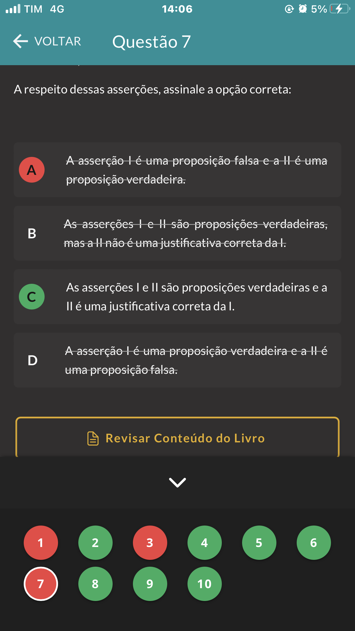 A respeito dessas asserções, assinale a opção correta: A asserção uma proposição falsa e a uma A proposição verdadeira. As asserções I e são proposições verdadeiras, mas a é uma justificativa correta dal. As asserções I e II são proposições verdadeiras e a C II é uma justificativa correta da I. A asserção uma proposição verdadeira e a D uma proposição falsa.