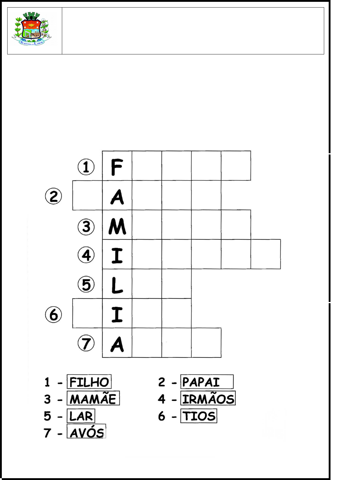 PARAÍSO DO NORTE, _______ DE ________________________ 2024. ESCOLA MUNICIPAL PROFESSOR WAIGNER BENTO PUPIN. E.I.E.F. PROFESSOR (A):________________________________ 1º ANO___ ESTUDANTE: _______________________________________________ 1ª AVALIAÇÃO DE HISTÓRIA Valor: 5,0 - Nota: _______ 1- COMPLETE A CRUZADINHA. IDOSO BEBÊ ADULTO CRIANÇA 2- LIGUE A FASE DA VIDA A PALAVRA QUE A REPRESENTA . BENGALA TRABALHO CHUPETA BICICLETA RESPONDA. 3- O PAI DA MINHA MÃE É MEU: A) ( ) TIO B) ( ) AVÔ 4- O FILHO DA MINHA TIA É MEU: A) ( ) PRIMO B) ( ) PAI 5- CONHEÇA UM POUCO DA FAMÍLIA DE CAMILA. QUANTOS IRMÃOS CAMILA TEM? A) ( ) QUATRO IRMÃOS B) ( ) DOIS IRMÃOS COMO SE CHAMAM OS PAIS DA CAMILA? A) ( ) REGINA E DANIEL B) ( ) MARIA E JOÃO image1.jpeg image2.jpg image3.png image4.jpeg