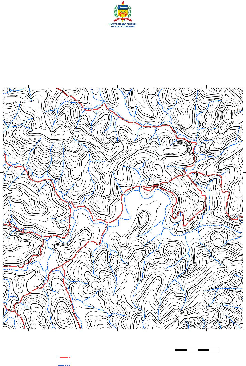 +n+ ® ! D D D D " " " " " " """ " " " " " " " " " " " " " " " " " " " " " "" " " " " "" " " " " " " " " " " " " " "" """ " " " " " " " " " " " " " " " " " " " " " " " " " " " " " " " "" " " " " " " " " " " " " " " " "" " " " !H !H !H 40 0 400 500 300 300 400 500 600 700 50 0 40 0 500 400 3 0 0 6 0 0 40 0 4 00 30 0 5 0 0 C B A Rio Alto Braço Ri o Branco Ribeirão do Reginaldo Rio Veado Ribeirão Poço Bonito Ribeirão do Meio Ribeirão Corveta Aguti 457 624 647 684000 686000 688000 69 76 00 0 69 78 00 0 0 10,5 km 1:30.000 Legenda !H Ponto ! Aguti " Unidade habitacional + ® Igreja n Escola + Cemitério Estrada Curso d'água D Ponto cotado Sistema de coordenadas SIRGAS2000 UTM 22S DGL7110 - CARTOGRAFIA APLICADA - EXERCÍCIO NOME:___________________________________________DATA________ Durante a realização do mapeamento geológico na região do município de Aguti (SC) foi solicitada a confecção de um perfil topográfico (ponto A para o ponto B, ou do ponto B para o ponto C). Trace a direção do perfil topográfico escolhido e confeccione o perfil na escala horizontal 1:30.000 e escala vertical 1:5.000. Represente todos os elementos da carta no perfil topográfico, e calcule o exagero vertical e a distância do perfil. Equidistância das curvas de nível: 20m ±