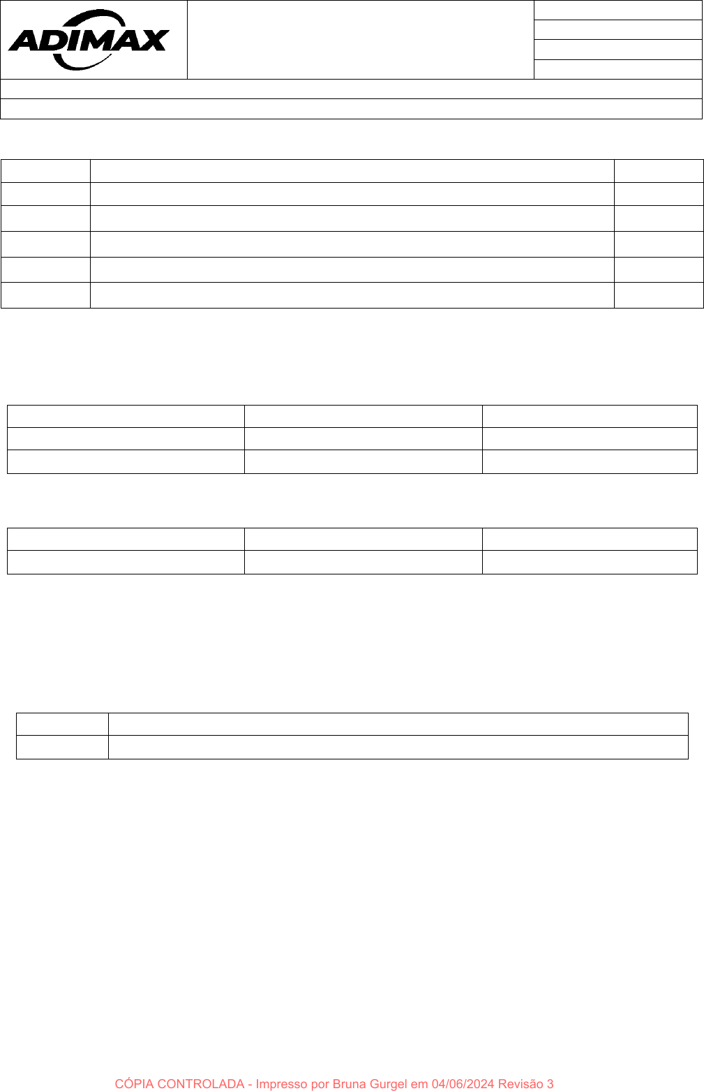 ESPECIFICAÇÃO DE MATERIA PRIMA E INGREDIENTES Código: ESMP0087 Página: 1 - 4 Rev. 03 Unidade: Corporativo Tema: Especificação de matérias primas e ingredientes Título: Premix - Organometálicos Template de padrão de documentos / F-PSGI-01-02 / Rev. 00 **A Adimax reserva-se no direito de alterar suas especificações com aviso prévio formalizado. 1. Quadro de controle de alterações do documento 2. Aprovação Elaborado / Revisado por: Aprovado por: 3. Objetivo Auxiliar no processo de garantia da qualidade de produtos acabados. 4. Siglas, termos, abreviações e definições 5. Abrangência Esta especificação tem como abrangência todos os setores de produção, laboratório de controle de qualidade, qualidade e setores de suporte, que utilizam a matéria prima ou ingrediente. 6. Referências Instrução Normativa nº 04, 2007 – do Ministério da Agricultura Pecuária e Abastecimento; NBR ISO 2200 Sistema de Gestão de Segurança de Alimentos; General Principles of Food Hygiene – CXC 1 – 1969 / 2020; Manual Pet Food Brasil – 11ª Edição. Nº. ORDEM DESCRIÇÃO DA ALTERAÇÃO RESPONSÁVEL DATA 03 Revisão do item 4 e 6. Inclusão do item 7.3, alteração dos n° subsequentes 25/01/2024 04 05 06 07 NOME FUNÇÃO ÁREA Amanda Pereira Analista de Regulatório Técnica Tatiane Ninomya Analista de P&D P&D NOME FUNÇÃO ÁREA Gustavo Miyaji Coordenador Técnico Técnica SINONÍMIA Premix mineral DEFINIÇÕES É a mistura de aditivos metálicos usado na alimentação animal, oriunda a mistura dos minerais CÓPIA CONTROLADA - Impresso por Bruna Gurgel em 04/06/2024 Revisão 3 ESPECIFICAÇÃO DE MATERIA PRIMA E INGREDIENTES Código: ESMP0087 Página: 2 - 4 Rev. 03 Unidade: Corporativo Tema: Especificação de matérias primas e ingredientes Título: Premix - Organometálicos Template de padrão de documentos / F-PSGI-01-02 / Rev. 00 **A Adimax reserva-se no direito de alterar suas especificações com aviso prévio formalizado. 7. Descrição do processo 7.1. Método de produção – Fluxograma 7.2. Origem do produto É a mistura de aditivos metálicos usado na alimentação animal, oriunda a mistura dos minerais. 7.3. Características de produto Parâmetros Característica Cor Marrom Aspecto Pó 7.4. Análises de recebimento 7.4.1. Análises químicas Não aplicável. 7.4.2. Análises físicas Análises Limite Referência Frequência de análise Responsável Cor* Marrom Característica da MP A todo lote no recebimento Controle de qualidade ** / Premix Odor* Característica Materiais estranhos* Ausência Insetos* Ausência Contaminação externa da embalagem Ausência *As análises de cor, odor materiais estranhos e insetos, quando produto em sacaria, são avaliadas no primeiro uso do material. **Amostragem 7.4.3. Análises biológicas Não aplicável. CÓPIA CONTROLADA - Impresso por Bruna Gurgel em 04/06/2024 Revisão 3 ESPECIFICAÇÃO DE MATERIA PRIMA E INGREDIENTES Código: ESMP0087 Página: 3 - 4 Rev. 03 Unidade: Corporativo Tema: Especificação de matérias primas e ingredientes Título: Premix - Organometálicos Template de padrão de documentos / F-PSGI-01-02 / Rev. 00 **A Adimax reserva-se no direito de alterar suas especificações com aviso prévio formalizado. 7.5. Análises de segurança de alimentos 7.5.1. Análises químicas Análises Unidade Valores Referência Frequência de análise Laboratório de análise Mínimo Máximo Arsênio ppm - 50,00 Parâmetro Interno Anual Externo Chumbo ppm - 200,00 Directiva 2002/32/CE Cádmio ppm - 50,00 Parâmetro Interno Mercúrio ppm - 0,10 Directiva 2002/32/CE Dioxinas ng PCDD/F- TEQ-OMS/kg - 1,00 Diretiva 2006/13/CE PCB’s ng PCB-TEQ- OMS/kg - 0,35 Diretiva 2006/13/CE 7.5.2. Análises físicas Não aplicável. 7.5.3. Análises biológicas Não aplicável. 7.6. Análises de parâmetros de qualidade Análises Unidade Valores Referência Frequência de análise Responsável Mínimo Máximo Zinco g/kg 97,5 - Parâmetro Interno Na avaliação da Ficha Tecnica para homologação Departamento Técnico Manganês g/kg 32,5 - Selênio mg/kg 130,00 - 7.7. Prazo de vencimento mínimo para recebimento do produto A Adimax solicita que o produto tenha no mínimo 360 dias de shelf-life pela especificação do fornecedor. A partir do recebimento, o item deve ter no mínimo 50,00% do seu prazo de vencimento para utilização pela Adimax. Casos especiais podem ser negociados, como uma condição comercial especial, previamente alinhados com a Qualidade. 7.8. Forma de recebimento O Produto deve ser recebido das seguintes formas: Recebimento Obrigatoriedades Sacaria Devem estar identificadas com tipo de produto, fornecedor, lote, data de fabricação e data de validade. Deve ser enviado as informações de lote, datas de fabricação e validade. Os produtos de obrigatoriedade de SIF devem ser devidamente identificada conforme a legislação vigente, encontrada no sistema SOGI (Sistema para Gestão de Legislações). CÓPIA CONTROLADA - Impresso por Bruna Gurgel em 04/06/2024 Revisão 3 ESPECIFICAÇÃO DE MATERIA PRIMA E INGREDIENTES Código: ESMP0087 Página: 4 - 4 Rev. 03 Unidade: Corporativo Tema: Especificação de matérias primas e ingredientes Título: Premix - Organometálicos Template de padrão de documentos / F-PSGI-01-02 / Rev. 00 **A Adimax reserva-se no direito de alterar suas especificações com aviso prévio formalizado. As notas fiscais devem ser acompanhadas também dos seguintes documentos: • Certificado de conformidade. 7.9. Requisitos de Food Fraud O fornecedor deve assegurar que medidas para prevenção de fraudes em alimentos estão implementadas, em vigor e impedem a adulteração dos produtos fabricados em suas dependências. Essas medidas para prevenção de “Food Fraud” devem ser adotadas desde a aquisição de matérias primas até a entrega do produto final na Adimax. 8. Responsabilidades Área Técnica Definir padrões das matérias primas e manter a ESMP atualizada Suprimentos Enviar ESMP atualizada aos