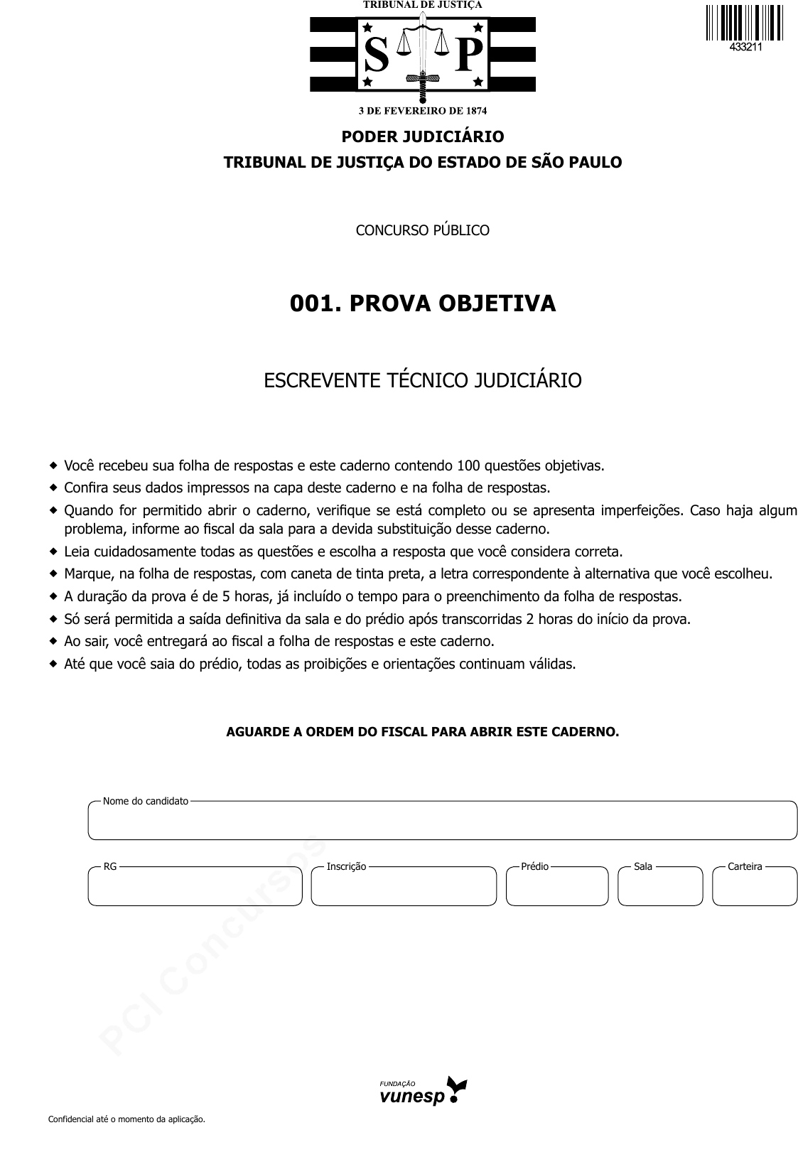 pcimarkpci MDAwMDowMDAwOjAwMDA6MDAwMDowMDAwOmZmZmY6YzhlYzpjMGNi:TW9uLCAyNCBKdW4gMjAyNCAxNToxNjo1NSAtMDMwMA== www.pciconcursos.com.br Confidencial até o momento da aplicação. PODER JUDICIÁRIO TRIBUNAL DE JUSTIÇA DO ESTADO DE SÃO PAULO concurso público 001. PROvA OBJETIvA escrevente técnico judiciário � você recebeu sua folha de respostas e este caderno contendo 100 questões objetivas. � Confira seus dados impressos na capa deste caderno e na folha de respostas. � Quando for permitido abrir o caderno, verifique se está completo ou se apresenta imperfeições. Caso haja algum problema, informe ao fiscal da sala para a devida substituição desse caderno. � Leia cuidadosamente todas as questões e escolha a resposta que você considera correta. � Marque, na folha de respostas, com caneta de tinta preta, a letra correspondente à alternativa que você escolheu. � A duração da prova é de 5 horas, já incluído o tempo para o preenchimento da folha de respostas. � Só será permitida a saída definitiva da sala e do prédio após transcorridas 2 horas do início da prova. � Ao sair, você entregará ao fiscal a folha de respostas e este caderno. � Até que você saia do prédio, todas as proibições e orientações continuam válidas. AgUARDE A ORDEm DO fIScAL PARA ABRIR ESTE cADERNO. Nome do candidato Prédio sala carteiraInscriçãorG pcimarkpci MDAwMDowMDAwOjAwMDA6MDAwMDowMDAwOmZmZmY6YzhlYzpjMGNi:TW9uLCAyNCBKdW4gMjAyNCAxNToxNjo1NSAtMDMwMA== www.pciconcursos.com.br Confidencial até o momento da aplicação. pcimarkpci MDAwMDowMDAwOjAwMDA6MDAwMDowMDAwOmZmZmY6YzhlYzpjMGNi:TW9uLCAyNCBKdW4gMjAyNCAxNToxNjo1NSAtMDMwMA== www.pciconcursos.com.br 3 TJSP2101/001-EscreventeTécnicoJudiciárioConfidencial até o momento da aplicação. LÍNgUA PORTUgUESA Leia o texto para responder às questões de números 01 a 05. Amor é para gastar Na economia da vida, o maior desperdício é fazer pou- pança de amor. Prejuízo na certa. Amor é para gastar, mos- trar, ostentar. O amor, aliás, é a mais saudável forma de osten- tação que existe no mundo. Vai por mim, amar é luxo só. Triste de quem sente e es- conde, de quem sente e fica no joguinho dramático, de quem sente e guarda a sete chaves. Sinto muito. Amor é da boca para fora. Amor é um escândalo que não se abafa. “Eu te amo” é para ser dito, desbocadamente. Guardar “eu te amo” é prejudicial à saúde. Na economia amorosa, só existe pagamento à vista, mis- sa de corpo presente. O amor não se parcela, não admite suaves prestações. Não existe essa de amor só amanhã, como na placa do fiado do boteco. Amor é hoje, aqui, agora... Amor não se so- nega, amor é tudo a declarar. (Xico Sá, “Amor é para gastar”. Em: http://www.itatiaia.com.br) 01. O estabelecimento de sentido no texto se dá pela inter- -relação entre a área do amor e a da (A) psicologia, enfatizando-se que a primeira vira osten- tação quando se faz joguinho dramático. (B) finança, enfatizando-se que a primeira dispensa grandes investimentos para que logre êxito. (C) etiqueta, enfatizando-se que a primeira pode trazer prejuízos à vida social se promove escândalos. (D) saúde, enfatizando-se que a primeira pode trazer problemas físicos se o amor é exagerado. (E) economia, enfatizando-se que a primeira exige o dis- pêndio de recursos de forma intensa. 02. A frase inicial do 2o parágrafo sintetiza o ponto de vista do autor: “Vai por mim, amar é luxo só.” Coerente com esse posicionamento, o autor reconhece que o amor é (A) uma lembrança do passado que se legitima como poupança. (B) um sentimento que deve ser declarado e vivido no tempo presente. (C) uma dívida de boteco que se intensifica quando é paga aos poucos. (D) uma ilusão que vai sendo construída ao longo da vida das pessoas. (E) um desperdício na vida das pessoas se não for bem guardado. 03. De acordo com a norma-padrão, a reescrita de informa- ções do texto está correta quanto à concordância verbal em: (A) Tristes daqueles que sente e esconde, que sente e fica no joguinho dramático. (B) Quando se usa sete chaves para guardar o amor, ele vai da boca para fora. (C) Existe sentimentos, como o amor, que são escânda- los e que não se abafa. (D) Acontece que, quando há suaves prestações, o amor está sendo poupado. (E) Joguinhos dramáticos expõe o perfil daquela pessoa que sente e esconde. 04. No trecho do 3o parágrafo – Guardar “eu te amo” é pre- judicial à saúde. –, a crase mantém-se se a expressão destacada for substituída por: (A) pessoa que o esconde. (B) pessoas que o escondem. (C) qualquer pessoa que o esconda. (D) quem o esconde. (E) todos que o escondem. 05. Releia as passagens do texto. • Na economia amorosa, só existe pagamento à vista, missa de corpo presente. O amor não se parcela... • Não existe essa de amor só amanhã, como na placa do fiado do boteco. Amor é hoje... • Amor não se sonega, amor é tudo a declarar. Na organização e estruturação das informações no texto, conclui-se corretamente que, em cada par de expressões destacadas, as relações entre as ideias se baseiam no sentido de (A) discrepância. (B) consequência. (C) semelhança. (D) analogia. (E) harmonia. pcimarkpci MDAwMDowMDAwOjAwMDA6MDAwMDowMDAwOmZmZmY6YzhlYzpjMGNi:TW9uLCAyNCBKdW4gMjAyNCAxNToxNjo1NSAtMDMwMA== www.pciconcursos.com.br 4TJSP2101/001-EscreventeTécnicoJudiciário Confidencial até o momento da aplicação. 08. Considere as passagens do texto. • ... onde o nível dos reservatórios até 24 de agosto caiu para 30,7%... (2o parágrafo) • ... a margem de manobra para 2022 será ainda menor. (5o parágrafo) • ... o que seria algo inédito. (5o parágrafo) No contexto em que estão empregadas, as formas ver- bais expressam, correta e respectivamente, sentido de: (A) ação concluída; imperativo; hipótese. (B) ação frequente; presente; certeza. (C) ação anterior a outra; futuro; desejo. (D) ação concl