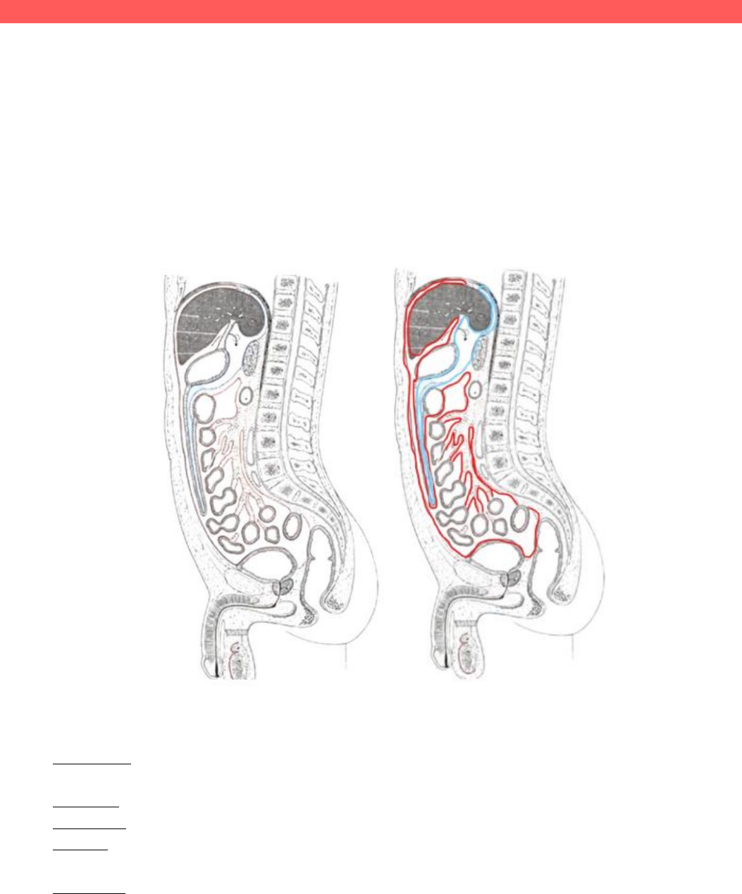 Sistema Hepático Stefanie de Sousa ANATOMIA LOCALIZAÇÃO • Abaixo do diafragma e ocupa maior parte do hipocôndrio direto, parte da região epigástrica e se estende ao hipocôndrio esquerdo • Parcialmente intraperitoneal O fígado é quase totalmente revestido por peritônio visceral e recoberto totalmente por uma camada densa de tecido conjuntivo (cápsula fibrosa) situada abaixo do peritônio • A área nua é formada pelas reflexões do peritônio LIGAMENTOS • Falciforme → liga-se na parte anterior do fígado, formado a partir dos ligamentos coronários que são peritoneais • Redondo → remanescente embriológico da veia umbilical • Coronário → ligamento formado pela reflexão do peritônio • Venoso → remanescente embriológico do ducto venoso • Hepatoduodenal → fígado – duodeno • Triangular → junção dos ligamentos coronários anteriores e posteriores Stefanie S. O omento menor sai da porta hepática LOBOS HEPÁTICOS FACE DIAFRAGMÁTICA • FACE DIAFRAGMÁTICA: Direito e esquerdo • FACE VISCERAL: Caudado e quadrado → ambos localizados no lobo direito PORTA EXTRA-HEPÁTICA → duplamente irrigado • Veia porta, artéria hepática própria e ducto hepático comum • Veia porta + artéria hepática própria → fazem parte do lobo direito e possuem apenas vasos aferentes Stefanie S. H HEPÁTICO VESÍCULA BILIAR • Localizada no lobo direito (em relação ao lobo quadrado), na parte visceral do fígado • Desemboca na ampola hepatopancreática junto com o ducto pancreático principal • Entra na papila maior do duodeno Stefanie S. VASCULARIZAÇÃO E IRRIGAÇÃO Artéria aorta quando passa pelo hiato aórtico, forma o tronco celíaco TRONCO CELÍACO • Artéria esplênica → baço • Artéria gástrica esquerda → estômago • Artéria hepática comum → fígado Veia porta leva o maior volume sanguíneo → leva maior parte do oxigênio hepático, maior que a artéria Veia porta, formada pela veia esplênica + veia mesentérica superior • A veia mesentérica inferior tributa na esplênica A drenagem do TGI pelas outras veias vai direto para a veia porta, para que o fígado metabolize → VEIA PORTA IRRIGA O FÍGADO FUNÇÕES DO FÍGADO Filtração sanguínea Metabolismo dos carboidratos, proteínas, lipídeos, hormônios e produtos químicos/tóxicos Armazenamento de vitaminas (D e B12 principalmente) e ferro Formação de fatores de coagulação Formação da bile Stefanie S. FUNÇÕES DA BILE Digestão e excreção Formação de micelas para digestão de gorduras Emulsificação de gorduras Componentes: sais biliares, fosfolipídios, pigmentos biliares, colesterol, proteínas e fármacos ORGANIZAÇÃO DOS HEPATÓCITOS Veia central → centro do lóbulo hepático Tríade portal intra-hepática → periferia dos lóbulos hepáticos • Ramo da veia porta • Ramo da artéria hepática • Ducto biliar IRRIGAÇÃO Ramos da veia porta e artéria hepática → irrigam e misturam o sangue venoso e arterial nos vasos sinusoides → absorção de nutrientes DRENAGEM Veias centrais se unem para formar as veias hepáticas → tributam na veia cava inferior Espaço de Disse → fica entre o vaso sinusoides e o hepatócito Entre os hepatócitos, possuem os canalículos biliares (não possuem relação com a veia central) Stefanie S. SAIS BILIARES Ácidos biliares primários são convertidos em secundários no duodeno por ação bacteriana Micelas vindas da bile separam gordura em gotículas para melhor ação enzimática sobre elas • Ação enzimática pancreática • ↓ micelas ↓ absorção de gordura PRIMÁRIOS - fígado • Ácido cólico, quenodesoxicólico e colesterol • As hidroxilas e carboxilas dessas cadeias promovem mais solubilidade → característica anfifílica • Bomba de sais biliares pegam esses ácidos e enviam para os canalículos biliares SECUNDÁRIOS – duodeno • Ácido desoxicólico e litocólico DRENAGEM DA BILE CANALÍCULOS → DUCTOS HEPÁTICOS D e E → DUCTO BILIAR PERILOBULAR → DUCTO INTERLOBULAR → DUCTO HEPÁTICO D e E → DUCTO HEPÁTICO COMUM + DUCTO CÍSTICO = DUCTO COLÉDOCO + DUCTO PANCREÁTICO → AMPOLA MAIOR DO DUODENO Stefanie S. ESTÍMULO FORTE • Células I do intestino delgado liberam colescitoquinina (CCK) → contração da vesícula e relaxamento do esfíncter da ampola hepatopancreática ESTÍMULO FRACO • Nervo vago libera acetilcolina → contração da vesícula PERÍODO INTERDIGESTIVO Formação da bile pelo fígado → secreção nos ductos biliares → armazenamento na vesícula biliar PERÍODO DIGESTIVO Contração da vesícula biliar → bile no duodeno → sais biliares emulsificam as gorduras → sais biliares voltam para o fígado (circulação êntero-hepática) HISTOFISIOLOGIA HEPÁTICA O sangue de cada lóbulo hepático chega pelos ramos da veia porta e da artéria hepática, presentes nos espaços porta O sangue é transferido para o interior dos sinusoides perilobulares, dirige-se para o centro do lóbulo, no qual se encontra a veia centrolobular (veia central) O sangue drenado pelas veias centrolobulares é conduzido para veias mais calibrosas e sai do fígado pelas veias hepáticas, tributárias da veia cava inferior Vênula hepática terminal = veia central do lóbulo ESPAÇO DE DISSE Esse espaço está em contato direto com o sangue e é preenchido com plasma O espaço perissinusoidal não tem uma lâmina basal contínua Local de trocas de materiais entre o sangue e células hepática Stefanie S. CÉLULAS DE KUPFFER • Recobrem junto com as células endoteliais típicas os sinusoides • Possuem núcleo grande, oval e muitos lisossomos • São macrófagos adaptados e especializados do fígado → fazem fagocitose • Metabolizam eritrócitos antigos • Digerem hemoglobina • Sintetizam e secretam proteínas imunológicas • Pertencem ao sistema fagocítico mononuclear e originam-se a partir de monócitos CÉLULAS ESTRELADAS – ITO • Células perissinusoidai
