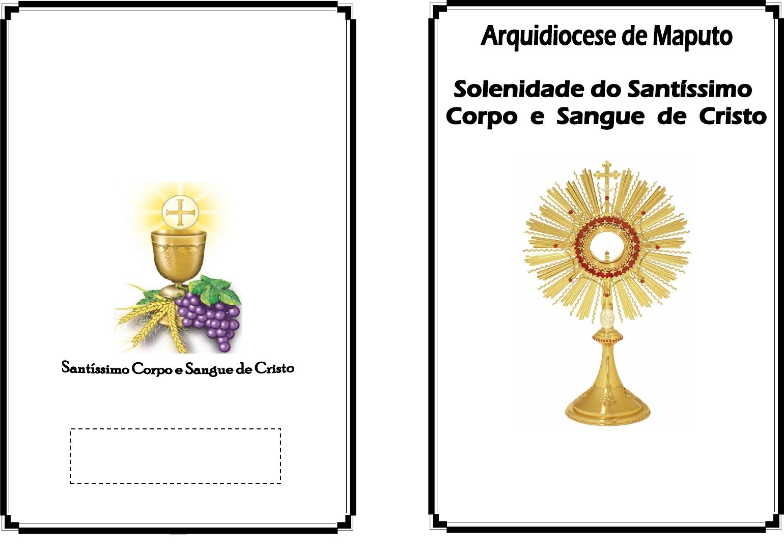 28 Eucaristia: Fonte do Anúncio e do Testemunho da Palavra de Deus hoje Secretariado de Coordenação Pastoral - Maputo - 2024 Procissão Arquidiocesana do Corpo de Cristo JUNHO DE 2024 2 3. A Igreja de Cristo na Terra Mãe e Mestra da Fé e do Amor, Proclamando a Paz contra a guerra E a voz de Jesus Redentor. 4. Mensageiro da paz para o Mundo Santo Padre, Vós sois Bom Pastor, Deus vos salve, Papa Francisco, Sempre firme na Lei do Senhor. I – AMBIENTAÇÃO A. CONFIANDO EM JESUS Coro: Confiando em Jesus, Rei dos Reis e Senhor, Nossa Luz e Redentor, Irmanados na Fé construamos a Paz Na Justiça e no Amor. 1. Redimidos pela Cruz de Cristo Caminhemos na paz, na alegria, Construindo Seu Reino benquisto Confiantes em Deus noite e dia. 2. Pelejando contra todo o mal Com a graça de Nosso Senhor Venceremos a fúria infernal Com as armas da paz e do amor. B. JESUS MUNENE 1. Jesus munene, wa ku randrekaTa- tana Muhuluxi wangaNdri buya mi- lengeni yakuNdra ku bekela xidrilu xanga Coro: A nfumu waku Jesus munene U ndri hanana a tilweni (2x) 2. A mbilu yaku yo Jesus Cristo, Ya pfura hi lirandru ku mine U trivelela na yone yanga Yi timekaka a wu siwanine C. É MEU CORPO TOMAI E COMEI Coro: É o meu Corpo, tomai e comei É o meu Sangue, tomai e bebei Porque eu sou a vida porque sou o amor Ó Senhor faz-nos viver no teu amor. (2x) 1. Como o Senhor nos amou jamais alguém pode amar Pelo caminho da justiça nos ensina a caminhar Quando estamos reunidos e partilhamos o Seu pão Ele nos dá o Seu amor e a sua paz. 3. Ndra drila Hosi, ndra ndrila ngonpfu Hi ku yingela swihono swanga Ndri trakamisi hi ngati yaku U tamelela ni moya wanga 27 2 - Mu yingiseni Muhanyisi lweyi A tile ku hanyisa vanhu A ni ntamu wa ku hi basisa loko hi pfumela ku kombela 3 - Tatana wa hina wa hi vitana a ku: tanani munga lahleki a hi fambeni hi ya ka Yena hakunene hi ta khensa Yesu. C: ABRASAI ABRASAI 1 - Mandai desse altar Um raio de luz Que abrase a minha alma Meu doce Jesus Alma de Cristo Alma de Cristo, santificai-me. Corpo de Cristo, salvai-me. Sangue de Cristo, inebriai-me. Água do lado de Cristo, lavai-me. Paixão de Cristo, confortai-me. Ó bom Jesus, ouvi-me. Dentro das Vossas Chagas, escondei-me. Não permitais que de Vós me separe. Do espírito maligno, defendei-me. Na hora da minha morte, chamai-me. E mandai-me ir para Vós, para que Vos louve com os Vossos Santos, por todos os séculos. Amen Coro: Abrasai, abrasai Jesus meu amor; Eu sou vosso escravo E vós meu Senhor 2 - Que dita tão grande Se eu for abrasado Ainda na terra Desse amor sagrado 3 - Serei todo vosso E vós todo meu Como foi a Virgem Enquanto viveu. 26 CORAÇÃO SANTO TU REINARÁS Coro: Coração Santo, Tu reinarás Tu nosso encanto Sempre serás. 1. Como soldado vela seu rei, Assim meu sangue por Ti darei XIII - OUTROS CÂNTICOS A. TEU FILHO AMADO Coro: Teu Filho amado, ó Mãe querida Na Comunhão se tornou Pão da vida (bis) 1 - O Salvador, que geraste Maria É nossa vida na Eucaristia. 2 - A humanidade que deste a Jesus É alimento que ao céu nos conduz. 3 - Ouvindo as preces da Mãe com carinho O filho amado mudou água em vinho. 4 - Pelos pedidos da Mãe tão querida Cristo Jesus mudará nossa vida B. NDZA KHENSA HIKUVA 1 - Ndza khensa hikuva Yesu a kona Wa vitana mina a kuta ku Yena Wa ndri hanyisa loko ndzi kholwa Hiswona, na ku khongela wena. Tekel: Ndza ku pfumela wena, Hosi Ndzi katekise mina wa wena Hosi ya mina yi ta ndzi pfuna Nyamuntlha ndza tshemba ka Yena. 4. Anjos, Arcanjos, Santos do céu Connosco velam o trono Teu. 2. Se o mundo iniquo me combater Sempre a Teu lado hei-de vencer 3. Jesus soberano, deixa-me ser Teu guarda d´honra até morrer 3 2. Como o Senhor nos amou jamais alguém nos amar Em tudo o que nos legou, manifestou o Seu amor Quem comer a Minha carne e beber o Meu sangue Permanecerá em Mim e Eu nele. 3. Sempre que este pão tomais e deste cálice bebeis Até que o Senhor volte, Sua Morte anunciais Quem tomar indignamente este Santo alimento Será réu do Corpo e Sangue do Senhor 4. Como o Senhor nos amou, jamais alguém pode amar Reuniu os homens todos na justiça e na verdade Quem tomar no mundo quer amar é um membro do seu corpo Nada o pode separar do Seu amor. 5.Glória ao Pai que nos criou, glória ao Filho Redentor Glória ao Espírito da vida que nos dá o Seu amor Unidos por este Pão que o Senhor transformou Demos graças ao Senhor que nos salvou. II – INTRODUÇÃO Caros irmãos! Celebramos hoje, a Solenidade do Corpo e Sangue de Nosso Senhor Jesus Cristo, na qual revivemos a doação do Filho de Deus aos homens como verdadeira comida e verdadeira bebida na nos- sa caminhada para a vida eterna (cf. Jo 6,55). A carne e o sangue de Jesus doados na Eucaristia perpetuam o sacrifício de Cristo e tornam presente a Pessoa do Filho de Deus entre os homens. A nossa Família Arquidiocesana, inspirada pelo lema: “Eucaristia, fonte do Anúncio e do Testemunho da Palavra de Deus hoje”, reúne-se diante de Jesus sacramentado para adorar o Filho de Deus na santa Eu- caristia, num contexto em que refletimos, a nível das nossas Comuni- dades, nas Conclusões da IV Assembleia Nacional de Pastoral. 4 O Corpo e o Sangue de Jesus Cristo são a fonte e o cume da vida cristã (LG 11), são também geradores de força para todo o anúncio da Pala- vra de Deus e para o verdadeiro testemunho na vida dos cristãos. Por isso, colocamos aos pés de Jesus sacramentado todos os cristãos da nossa Arquidiocese e todos os anunciadores da Palavra de Deus, para que busquem na Eucaristia a sua força e alimento. Amados irmãos, ao realizarmos esta procissão com o Santíssimo Cor- po do Filho de Deus pelas avenidas e ruas da nossa cidade, proclama- mos a nossa fé na Eucaristia: Jesus totalmente presente com todo o seu poder e amor no pão. Jesus caminha connosco para purificar nossos corações, fortalecer os abatidos, consolar os tristes, visitar os nossos doentes e abençoar as nossas famílias. Todo o nosso itinerário decorrer