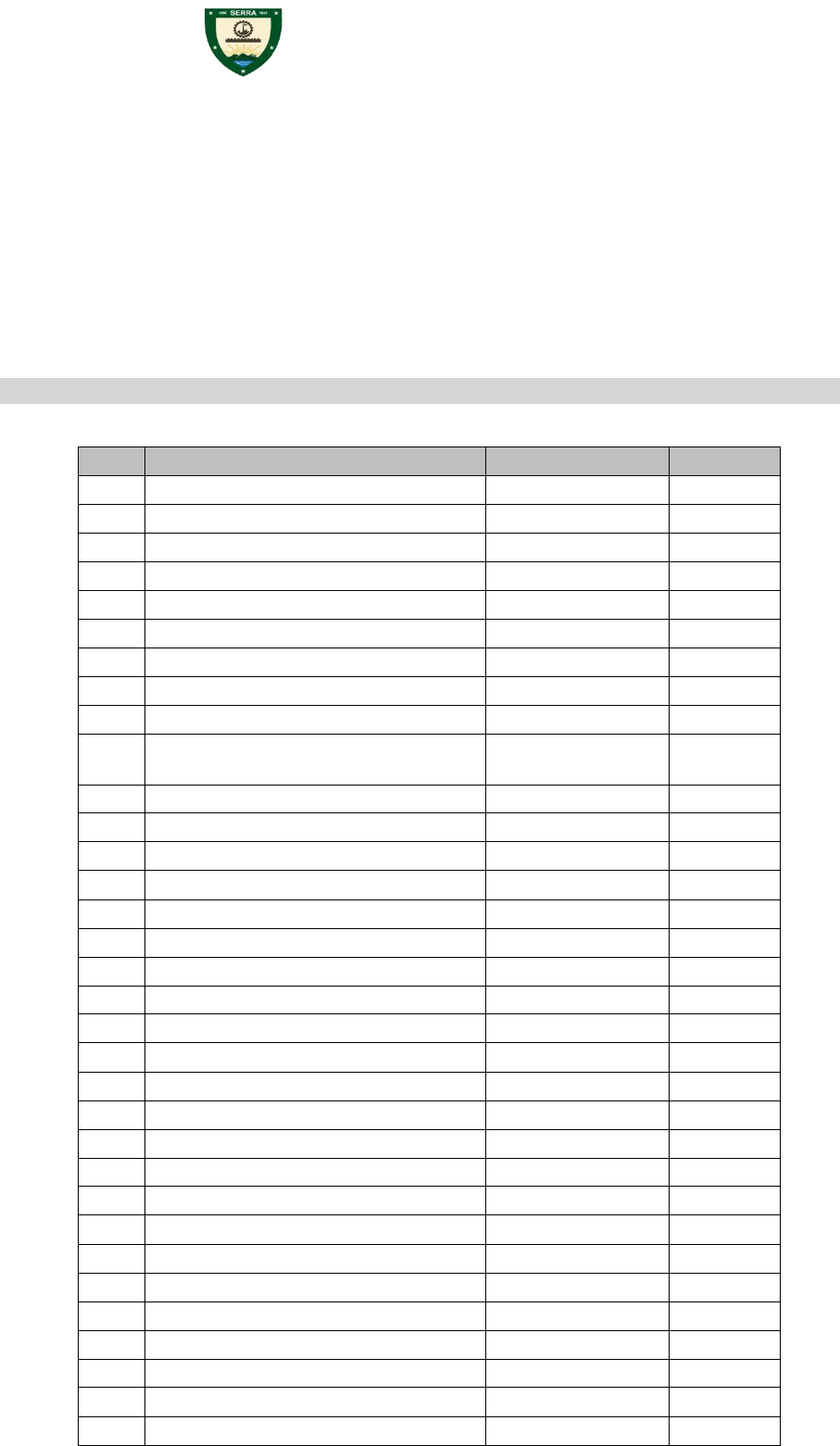 PREFEITURA MUNICIPAL DA SERRA SECRETARIA MUNICIPAL DE EDUCAÇÃO – SEDU 1 RESULTADO PARCIAL - EDITAL Nº 003/2024 REFERENTE AO PROCESSO SELETIVO SIMPLIFICADO PARA CONTRATAÇÃO TEMPORÁRIA DE AUXILIAR DE CRECHE A SECRETARIA MUNICIPAL DE EDUCAÇÃO DA SERRA divulga o Resultado Parcial do Processo Seletivo Simplificado para Contratação Temporária de Auxiliar de Creche, conforme previsão no anexo III do Edital 003/2024. RESULTADO PARCIAL Classi. Nome Data de Nasc. Pont. Total 1º Ivanete Feu Rosa Radaelle 15/02/1955 43,00 2º Liege Lima de Souza 20/10/1955 43,00 3º Hayda Maria Marques 26/02/1957 43,00 4º Sandra Regina Galdino 26/04/1962 43,00 5º Eliane maria Souza beretta 13/06/1962 43,00 6º Rosangela Gabriel de Souza 12/07/1962 43,00 7º Sonia Maria Lescio Nascimento 02/11/1962 43,00 8º Maria da Penha Mattos Sant Ana 18/02/1963 43,00 9º ROSIANE DE ALMEIDA CASTRO 20/02/1963 43,00 10º MARIA DAS GRAÇAS SOUZA TRANCOZO 02/10/1963 43,00 11º Rita Gomes da Silva 19/12/1963 43,00 12º Dilma Salgado Sousa 17/01/1964 43,00 13º Ivonete Silva Themoteo THEMOTEO 20/04/1964 43,00 14º MARIA DELMA PEREIRA COSTA 25/04/1964 43,00 15º ELIANA Zocolotto Graça 04/12/1964 43,00 16º LUCINEIA DE PAULO 06/03/1965 43,00 17º Valeria Ferreira Lange 10/03/1965 43,00 18º NIRLEA MARIA BORGES LOUREIRO 17/05/1965 43,00 19º Alvaneide Alves quirino 04/11/1965 43,00 20º JOSILENE ALVES DA SILVA 06/12/1965 43,00 21º RITA DE CASSIA ALTICIA 06/01/1966 43,00 22º Maura de Lourdes Correa 04/08/1966 43,00 23º Idalina Pereira Nascimento 02/01/1967 43,00 24º maria da penha da silva de meira 16/02/1967 43,00 25º Gilma Fideles Ribeiro 26/03/1967 43,00 26º Giovana Ramires Ferreira 21/07/1967 43,00 27º Ozélia Dias de Sales 28/08/1967 43,00 28º VERA LUCIA FEU BRASSEROSE 09/01/1969 43,00 29º LOURDES ELIETE SCHUNK PEREIRA 11/02/1969 43,00 30º Elcimara Ferreira Batista 21/02/1969 43,00 31º Rosilene Falcão Amorim 25/03/1969 43,00 32º Cristiane Maria de Souza Corrêa 01/04/1969 43,00 33º NELIA NEVES ARCANJO DA SILVA 01/04/1969 43,00 PREFEITURA MUNICIPAL DA SERRA SECRETARIA MUNICIPAL DE EDUCAÇÃO – SEDU 2 34º MARIA APARECIDA VIEIRA BONO 07/04/1969 43,00 35º Dulcilene Ramos Miranda 23/04/1969 43,00 36º Reginete Ozéas Ribeiro 01/10/1969 43,00 37º Rosecleia Narciso Costa Madeira 06/04/1970 43,00 38º Sirlene Rodrigues de Souza 11/08/1970 43,00 39º Luciane de Paula Lessa Ramos 02/12/1970 43,00 40º DEUZILENE DE SOUZA 11/10/1971 43,00 41º Regiani Pinto de Oliveira Pinheiro 07/02/1972 43,00 42º Valéria Cristina da Silva Rocha 30/06/1972 43,00 43º marli machado de Alvarenga 07/11/1972 43,00 44º Simone Gomes Corrêa 16/11/1972 43,00 45º Laudicéia Moreira de Paula Oliveira 01/01/1973 43,00 46º Deucimar Fraga Rosáro 25/03/1973 43,00 47º Edseia Gonçalves dos Santos Silva 18/04/1973 43,00 48º Waldineia Da Silva Rodrigues Oliveira 20/06/1973 43,00 49º Alessandra Nunes Miranda Farias 12/08/1973 43,00 50º Jilmaria frança Cerqueira santos 28/09/1973 43,00 51º Maria de Fátima Santos Nunes 09/02/1974 43,00 52º Glaucia Simone Quintal 11/09/1974 43,00 53º Vera Giacomin Ladislau Camargo 28/11/1974 43,00 54º Aparecida de Cacia Natividade da Silva Sales Natividade 11/12/1974 43,00 55º marta flora rocha santos 18/03/1975 43,00 56º Luciane Rocha da Silva Silva 26/03/1975 43,00 57º Alzimar Bianca da Silva Sá 22/04/1975 43,00 58º Monica Oliveiras Soares 20/05/1975 43,00 59º ALDILENA MENEZES PERONI 18/08/1975 43,00 60º Lindamar Rosa Aires Aires 25/08/1975 43,00 61º Edineia Siqueira Correa Evangelista 21/09/1975 43,00 62º Claudinália Ferreira Alves Basílio 06/03/1976 43,00 63º Shirlen Cruz de oliveira 23/04/1976 43,00 64º Vanilda Marciano Pereira Rocha 02/05/1976 43,00 65º Sandra Lúcia Araújo Pereira 20/05/1976 43,00 66º Gláucia de Siqueira 15/12/1976 43,00 67º Giselle França Caldeira 25/12/1976 43,00 68º Andréa Duque Rodrigues 01/06/1977 43,00 69º Andreia silva de melo 03/12/1977 43,00 70º Maria das graças dos santos Martins Santos martins 11/01/1978 43,00 71º Luciana Da Silva Batista 29/01/1978 43,00 72º Ana Cláudia Teodoro de Moraes Cláudia 06/04/1978 43,00 73º SIMONE de Souza Bandeira de Amacedo 30/04/1978 43,00 74º Clebia Rosa dos Santos 14/05/1978 43,00 75º Sueli paulo da silva 10/06/1978 43,00 76º Veruska dos Santos Pereira Ferreira Ferreira 16/09/1978 43,00 PREFEITURA MUNICIPAL DA SERRA SECRETARIA MUNICIPAL DE EDUCAÇÃO – SEDU 3 77º Denise Cristina dos Santos de Souza 08/02/1979 43,00 78º AURENICE PEREIRA SANTOS 11/02/1979 43,00 79º Elisangela Alves de Jesus Lira de Souza 06/03/1979 43,00 80º Viviane Andreatta 26/05/1979 43,00 81º ALINE OLIVEIRA DA SILVA DE ARAUJO 07/07/1979 43,00 82º Eliana Anizio Moreira 16/07/1979 43,00 83º Jetron Julio de souza De douza 24/10/1979 43,00 84º Elaine Cristina Borges Pereira 07/05/1980 43,00 85º Nidia Paula Nossa Gonçalves Gonçalves 17/06/1980 43,00 86º Silvana Vieira lirio Ferreira 21/06/1980 43,00 87º Andressa Gomes Alexandre 02/08/1980 43,00 88º Maria Eronilde Santos Lima 01/09/1980 43,00 89º Marlene Santana Raimundo do Espirito Santo 17/10/1980 43,00 90º Lucimaura Ferreira da silva 25/12/1980 43,00 91º Shirlei Santos Sena 10/02/1981 43,00 92º Cleonice Da Flota Duques Gonçalves 25/04/1981 43,00 93º Marli Almeida 16/05/1981 43,00 94º Ueliton Cruz Palma 22/05/1981 43,00 95º Ana Neide Nascimento dos Santos 29/07/1981 43,00 96º Débora Barbosa de Maria 21/10/1981 43,00 97º Lorena Luzia Batista Sepulchro Gomes Gomes 13/12/1981 43,00 98º Alciele Rosa de Andrade Mota Ferreira 17/02/1982 43,00 99º Lucileia PEREIRA FERREIRA 27/03/1982 43,00 100º Maria Everlandia Soares Cruz Soares 30/04/1982 43,00 101º Tatiana Mendes da cunha 01/05/1982 43,00 102º Adriana da Rocha Pereira Pereira 12/06/1982 43,00 103º Raquel Tostes da Rocha Pereira 12/06/1982 43,00 104º Simone Rios Guilherme 29/06/1982 43,00 105º PRISCILA CARLA LAIBER 20/07/1982 43,00 106º Meyre de Oliveira Nascimento 25/07/1982 43,00 107º Magdala Cherman 