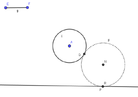 Desenho Geométrico e Geometria Descritiva Atividade - 08/09 1- Desenvolva a construção (passos, afirmação e justificativa) dos exemplos 2, 3, 4 do livro “Construções Geométricas – Eduardo Wagner” (material em anexo). 2- Dados em posição um círculo C e uma reta r, construa um círculo de raio EF, tangente a r e tangente externamente a C. Fig 1: Ilustração da solução. 3- Construa o triângulo ABC conhecendo o lado a o ângulo  e a mediana ma.