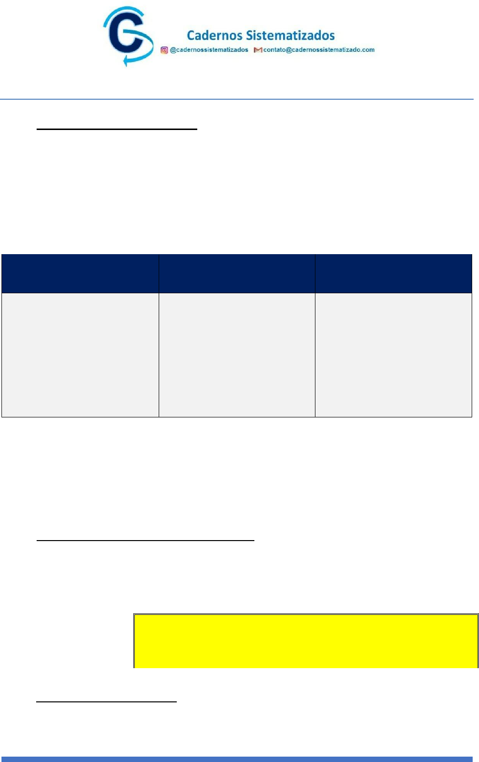 Para melhor compreensão, colacionou-se o quadro produzido pelo Prof. Rogério