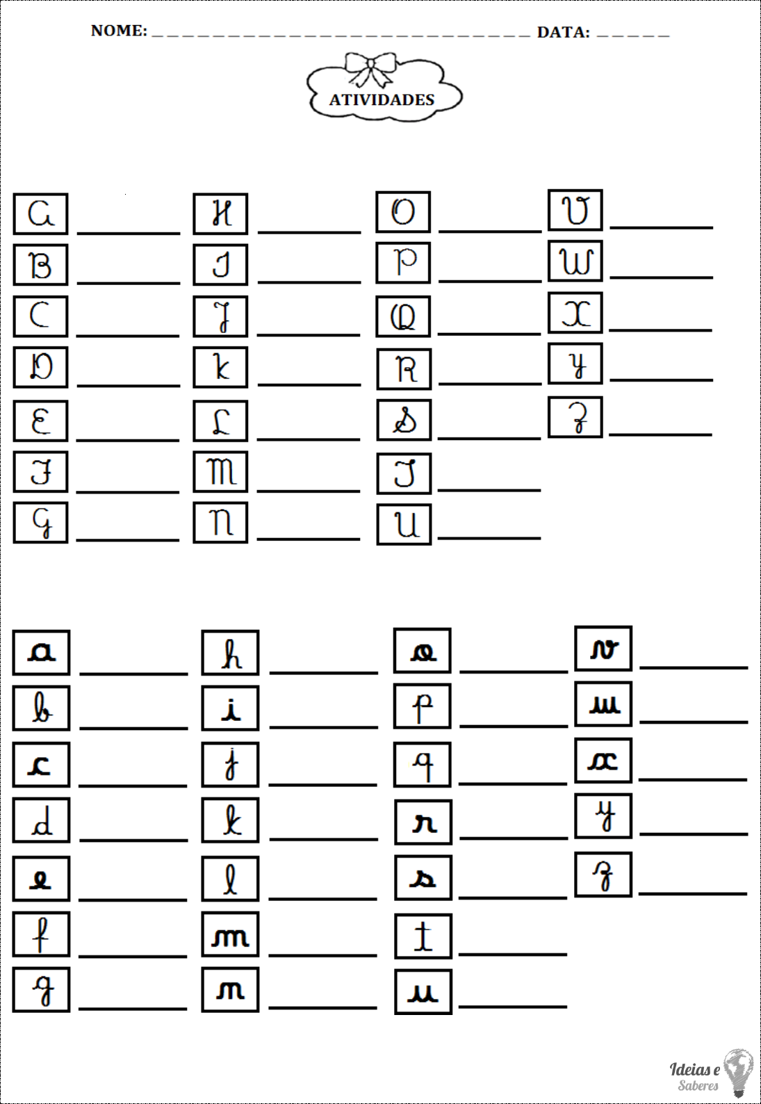 1) VAMOS TREINAR A ESCRITA DA LETRA CURSIVA MAIÚSCULA: 2) AGORA, VAMOS TREINAR A ESCRITA DA LETRA CURSIVA MINÚSCULA: