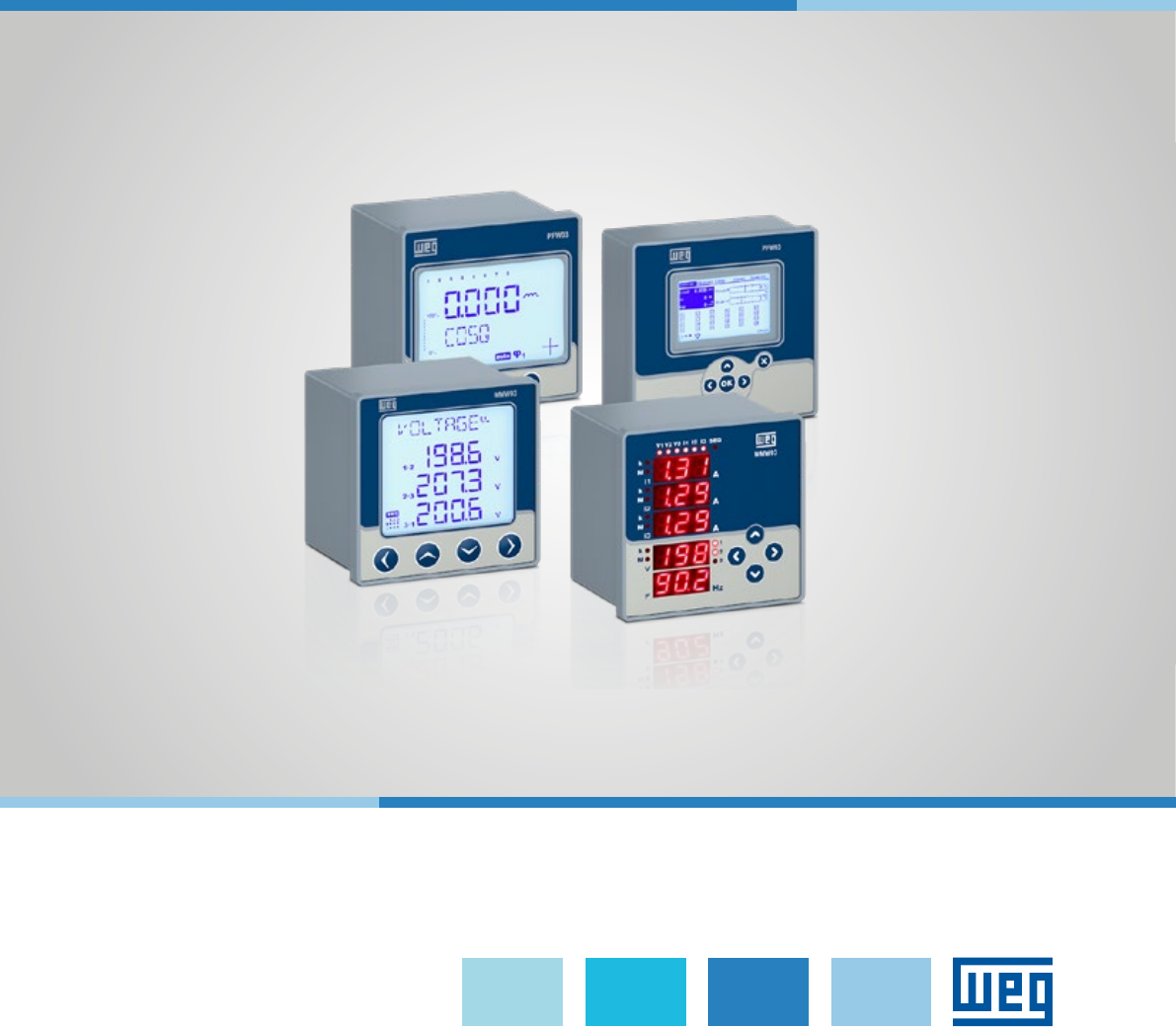 MULTIMEDIDOR DE GRANDEZAS ELÉTRICAS E CONTROLADOR AUTOMÁTICO DO FATOR DE POTÊNCIA Conectividade, integração e otimização de processos na indústria 4.0 Motores | Automação | Energia | Transmissão & Distribuição | Tintas Multimedidor de Grandezas Elétricas e Controlador Automático do Fator de Potência Sumário Software de Parametrização 13 Operações de Controle e Funções 28 Benefícios e Vantagens 09 Benefícios e Vantagens 24 Panorama da Linha 12 Panorama da Linha 27 Identificação das Funções no Display 15 Identificação das Conexões – Vista Posterior 31 Identificação das Funções no Frontal do Equipamento 14 Identificação das Funções no Frontal do Equipamento 30 Introdução 04 MMW – Multimedidores e Analisadores 08 Identificação das Conexões - Vista Posterior 16 Diagramas de Ligação 33 Características Técnicas 35 Características Técnicas 41 Dimensões (mm) 37 Dimensões (mm) 42 Acessórios 38 PFW – Controladores Automáticos do Fator de Potência 22 Diagramas de Ligação da Medição 16 Diagramas de Ligação das Entradas e Saídas Digitais e Contatos de Alarme 18 Características Técnicas 19 Dimensões (mm) 21 www.weg.net MMW03 e PFW03 - Multimedidor de Grandezas Elétricas e Controlador Automático do Fator de Potência4 Gestão da energia e eficiência energética fazem parte da indústria 4.0. Para implantação destas atividades torna-se necessário a aquisição de dados e a possibilidade de manobra de cargas. Os multimedidores e analisadores MMW e os Controladores Automáticos do Fator de Potência PFW viabilizam a medição de grandezas elétricas, energia reativa consumida em processos industriais, comerciais e residenciais e controle de cargas. Com conectividade, integração das medições e controle das grandezas elétricas obtém-se otimização de processos, rapidez na identificação de problemas e consequente redução de custos dos sistemas supervisionados. CONECTIVIDADE, INTEGRAÇÃO E OTIMIZAÇÃO DE PROCESSOS NA INDÚSTRIA 4.0 www.weg.net MMW03 e PFW03 - Multimedidor de Grandezas Elétricas e Controlador Automático do Fator de Potência 5 Para interligação com sistemas de gestão e controle de energia, como por exemplo, o software WEG Energy Management, os multimedidores e analisadores MMW e controladores automáticos do fator de potência PFW dispõe de uma porta RS485 com protocolo de comunicação Modbus-RTU e entradas e saídas digitais configuráveis. Além da gestão, os MMW e PFW permitem uma avaliação da qualidade de energia elétrica. Esta análise pode ser feita através do software WEG Energy Management ou pelos registros e visualização rápida de tensão, corrente potência, demanda, energia elétrica e harmônicos até 51ª ordem além de telas com diagrama fasorial, forma de onda e gráfico de barras dos harmônicos. Conectividade Nota: 1) O software WEG Energy Management não faz parte do escopo de fornecimento dos equipamentos das linhas PFW, MMW e acessórios. Sugestão de uma arquitetura para acesso remoto com equipamentos WEG para gestão de energia. CONECTIVIDADE, INTEGRAÇÃO E OTIMIZAÇÃO DE PROCESSOS NA INDÚSTRIA 4.0 E th er ne t E th er ne t Ethernet WEG Energy Management WEG Energy Management Modbus RS485 Modbus WEG Energy Management WEG Energy Management Modem Modem Modbus Modbus Ethernet RS485 Conversor WEG RS485-ETH-N PFW ou MMW Serial Device-1 Serial Device-2 Serial Device-3 www.weg.net MMW03 e PFW03 - Multimedidor de Grandezas Elétricas e Controlador Automático do Fator de Potência6 O WEG Energy Management é um software de gerenciamento do consumo de recursos, como energia elétrica, água, gás, ar comprimido e combustíveis, para aplicações industriais, comerciais e até mesmo condomínios. Os dados são coletados por dispositivos de medição de energia e utilidades e transformados em informações para gestão e monitoramento do uso desses recursos, em tempo real e de forma amigável. Principais Características J Monitoramento on-line de grandezas elétricas; J Função “Osciloscópio virtual” para diagnósticos precisos; J Informações assertivas para planejamento de manutenção preditiva; J Rateio do consumo de recursos por centro de custo; J Auxilia na tomada de decisão para viabilizar projetos de eficiência energética; J Software escalável; J Promove o uso consciente e sustentável dos recursos; J Auxilia na implementação de planos de redução de despesas e de programas de gestão de energia como a ISO 50001; J Integração com outras plataformas, possibilitando a criação de KPIs, como por exemplo: KWh/peça produzida e/ou litros de água/peça produzida. SOFTWARE PARA GESTÃO DE ENERGIA ELÉTRICA E UTILIDADES WEG ENERGY MANAGEMENT SAIBA MAIS: ou acesse weg.net/digitalsolutions www.weg.net MMW03 e PFW03 - Multimedidor de Grandezas Elétricas e Controlador Automático do Fator de Potência 7 Coleta e visualização on-line de dados Co-criação para customização de dashboards e relatórios Configuração de regras de acesso para usuários Osciloscópio virtual para diagnósticos precisos Funções de cálculos, alarmes e relatórios configuráveis pelo usuário Integração com outros sistemas ERP, MES, SCADA e bancos de dados Compatibilidade com diversos dispositivos de medição do mercado (reduz o Total Cost Ownership) Sistema escalável, possibilitando expansão dos pontos de medição www.weg.net MMW03 e PFW03 - Multimedidor de Grandezas Elétricas e Controlador Automático do Fator de Potência8 A família dos multimedidores e analisadores de energia MMW possuem funções de leitura e cálculo de grandezas elétricas. O analisador de energia além de ser um multimedidor agrega as ações de monitoramento, análise e controle de um sistema elétrico. Ele é capacitado para aplicações avançadas tais como medição de energia, registros de parâmetros elétricos, entradas e saídas digitais programáveis. Disponibiliza visualização e regis