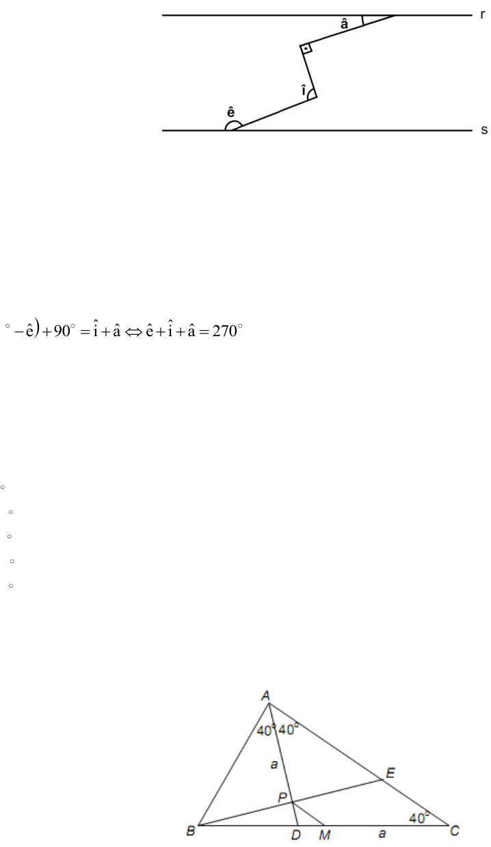 SIMULADO DE MATEMÁTICA TURMA AFA-EEAR ESTILO AFA 20 QUESTÕES OBJETIVAS DATA 20 DE MARÇO DE 2010 QUESTÃO 1 Considere as retas r e s (r//s) e os ângulos ê, î e â da figura abaixo Pode-se afirmar que a) ê + î + â = 270° b) ê + î + â = 180° c) ê + î = â d) ê + î = â + 90° RESPOSTA: a RESOLUÇÃO: ˆ ˆˆ ˆ ˆ ˆ180 e 90 i a e i a 270 REFERÊNCIA: EPCAR 2004 QUESTÃO 2 No triângulo ABC, AD é bissetriz interna do ângulo A. Sendo aBC 2 assinale o ponto P sobre AD tal que aAP . Se o60ABC e o80BAC , determine o ângulo PBD. a) 5 b) 10 c) 15 d) 20 e) 30 RESPOSTA: b RESOLUÇÃO: Seja M o ponto médio de BC. Seja E o ponto onde a reta BP encontra AC. Como MCAPAC e MCPA então ACMP é um trapézio e, portanto, MP é paralelo a AC. Como M é médio de BC então P é médio de BE. No triângulo ABE, AP é bissetriz e PEPB . Logo, AEAB e a mediana AP é também altura. Como o ângulo APB é reto e o80ADB então o10PBD . REFERÊNCIA: Prof. Eduardo Wagner QUESTÃO 3 As medidas dos ângulos do triângulo ABC são tais que Ĉ90B̂ . As bissetrizes externas dos ângulos  e Ĉ cortam os prolongamentos dos lados opostos BC e AB nos pontos P e Q, respectivamente. Sabendo que ACCQAP , determine o ângulo de B̂ . a) 12º b) 24º c) 30º d) 36º e) 60º RESPOSTA: d RESOLUÇÃO: x 2y 180 2 x 24 y 84 4x y 180 x 3 2x x 36 2 2 QUESTÃO 4 O comprimento da mediana relativa ao lado BC do triângulo ABC, sendo A(1, 2), B(2, 3) e C(4,7), é: a) 5 b) 4 c) 3 d) 2 e) 1 RESPOSTA: a RESOLUÇÃO: O ponto médio de BC é 2 4 3 7 M , 3,5 2 2 . O comprimento da mediana é 2 2 AM 1 3 2 5 5 . QUESTÃO 5 Os vetores a e b são perpendiculares e c forma com a e b ângulos iguais a rd 3 . Se a e c são unitários, b 2 e p 3a b c , então p é igual a: a) 5 b) 2 c) 15 d) 2 e) 2 3 RESPOSTA: c RESOLUÇÃO: 2 22 2 2 2 p p p 3a b c 3a b c 9a a 3a b 3a c 3b a b b b c 3c a c b c c 9 a 3 a b cos 3 a c cos 3 b a cos b b c cos 3 c a cos c b cos c 2 3 2 3 3 3 1 9 1 3 1 2 0 3 1 1 3 2 1 0 2 2 21 1 1 2 1 3 1 1 1 2 1 15 2 2 2 p 15 QUESTÃO 6 Sejam A e C os vetores a partir da origem O até os pontos A e C, respectivamente, e X o módulo do vetor X . Se 2 2 A C A C A C A C , então o valor do ângulo ˆAOC é: a) 150 b) 135 c) 120 d) 90 e) 60 RESPOSTA: c RESOLUÇÃO: Lei dos cossenos no AOC : 2 22 2 2 ˆ ˆAC OA OC 2 OA OC cosAOC A C 2 A C cosAOC Do enunciado: 2 2 22AC A C A C A C A C A C 2 2 2 2 1ˆ ˆ ˆA C 2 A C cos AOC A C A C cos AOC AOC 120 2 REFERÊNCIA: Rusczyk, R. e Lehoczky, S. The Art of Problem Solving – pg. 183. QUESTÃO 7 Um arco de medida igual a x é tal que 1530 1620o ox e 225 144tg x . O valor de 12 5cotgx senx cosx é igual a: a) 0 b) 1 c) 2 d) 3 e) 5 RESPOSTA: a RESOLUÇÃO: 1530 1620 4 360 90 4 360 180 tg 0 o ox x x 2 12 5 25 144 tg cotg 5 12 tg x x x 2 2 144 169 13 5 sec x 1 tg x 1 sec x cos x 25 25 5 13 2 2 25 144 12 sen x 1 cos x 1 sen x 169 169 13 5 12 5 12 5 12 5 0 12 13 13 cotg x senx cosx QUESTÃO 8 Seja a um número real tal que a k 2 , onde k . Se 0 0x , y é solução do sistema 2seca x 3tg a y 2cosa 2 tg a x 3seca y 0 então podemos afirmar que: a) 0 0x y 3 2sen a b) 2 2 2 0 0 2 4 x y cos a 2 3 9 c) 0 0x y 0 d) 0 0x y 0 e) 2 2 2 0 0 2 4 x y cos a 3 9 RESPOSTA: e RESOLUÇÃO: 2 2 2 2 2 2 2 2 2 2 2 2 2 2 2 2 2 2 2 2 2 2 2 2 2 2 1 tg a sec a sec a tg a 1 4sec a x 9 tg a y 12seca tg a xy 4cos a 4 tg a x 9sec a y 12seca tg a xy 0 4 sec a tg a x 9 tg a sec a y 4cos a 2 4 4x 9y 4cos a x y cos a 3 9 REFERÊNCIA: ITA 1983 QUESTÃO 9 Sejam a e b constantes reais positivas. Se a equação 3 2cos x a 1 cos x a b cos x b 0 possui duas raízes reais distintas no intervalo [0 , /2], devemos ter a) 0 < b a – 1 b) 0 < b < a + 1 c) a < b < a + 2 d) a + 1 < b a + 2 e) nda RESPOSTA: b RESOLUÇÃO: 3 2 2 cos x a 1 cos x a b cos x b 0 cos x 1 cos x a cos x b 0 2a a 4b cos x 1ou cos x 2 (pois x 0 ) Para que a equação possua duas raízes reais distintas em [0 , /2], devemos ter 2 2a a 4b 0 cos x 1 0 1 0 a a 4b 2 2 22 2 2a a 4b a 2 a a 4b a 2 0 b a 1 Como b > 0, então 0 < b < a + 1. REFERÊNCIA: ITA 1991 QUESTÃO 10 Quantos pares de números (x, y) satisfazem as duas condições a seguir: 2tg y sen x 0 e 2 2x y 2 ? a) 4 b) 5 c) 8 d) 9 e) 10 RESPOSTA: d RESOLUÇÃO: Como tg y 0 e 2sen x 0 , para que 2tg y sen x 0 deve-se ter 2tg y sen x 0 . tg y 0 tg y 0 y 2sen x 0 sen x 0 x Como 2 2x y 2 e x,y , então x,y 1,0,1 . Logo, há 3 3 9 pontos x,y que satisfazem à condição do enunciado. REFERÊNCIA: Chinese Mathematics Competitions and Olympiads 1993-2001 - A. Liu – Pg. 3. QUESTÃO 11 Considere as proposições abaixo. I) A soma dos infinitos termos da sequência cujo termo geral é n n 3 , *n , converge para 3 4 . II) Se k 2k a cos 3 , *k , o valor de 1 2 3 97a a a a é zero. III) Se 3,a,b formam uma progressão geométrica de razão q e a,b,45 , uma progressão aritmética de razão r, com a,b , então r 6 q . Pode-se afirmar que, entre as proposições, a) apenas uma é falsa. b) apenas duas são falsas. c) todas são falsas. d) todas são verdadeiras. RESPOSTA: a RESOLUÇÃO: REFERÊNCIA: AFA 2009 QUESTÃO 12 João Victor e Samuel são dois atletas que competem numa mesma maratona. Num determinado momento, João Victor encontra-se no ponto M, enquanto Samuel encontra-se no ponto N, 5 m à sua frente. A partir desse momento, um observador passa a acompanhá-los registrando as distâncias percorridas em cada intervalo de tempo de 1 segundo, conforme tabelas abaixo. Sabe-se que os números da tabela acima que representam as distâncias percorridas por João Victor formam uma progressão geométrica, enquanto os números da tabela acima que representam as distâncias percorridas por Samuel formam uma progressão aritmética. Com base nessas informações, é INCORRETO afirmar que ao final do a) 5º segundo, João Victor já terá atingido o ponto N b) 5º segundo, Samuel percorreu uma distância igual à que os separava nos pontos M e N c) 6º segundo, João Victor terá alcançado Samuel. d) 8º segundo, João 