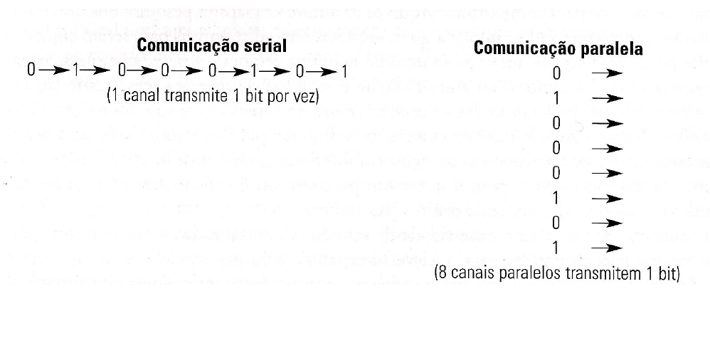 3 Comunicação Serial X Comunicação Paralela A comunicação/transmissão serial transmite um único bit por vez, em sequência, por um único canal de comunicação, e sua velocidade é limitada; enquanto que, na comunicação/transmissão paralela são transmitidos vários bits por vez, de forma aleatória, por diferentes canais. Considerando uma mesma velocidade na linha e a mesma quantidade de tempo requerida para transmissão, na comunicação serial transmite um bit e na comunicação paralela podemos transmitir oito (ou mais) bits de dados. A comunicação paralela é mais rápida, porém, menos segura, pois não garante como os bits serão enviados e recebidos, além da necessidade de um canal de comunicação mais complexo, usando grandes cabos de cobre. Quanto mais distante a ligação paralela, pior é a degradação do sinal elétrico para os nós mais distantes. A comunicação serial em sistemas de comunicação propicia a redução de custos, pois utiliza menos fios na transmissão de dados, por isso, a comunicação serial é muito utilizada em sistemas de comunicação de dados de longas distâncias, porém a sua transmissão é mais lenta, além de permitir a sua transmissão através de sistemas de comunicação já existentes que originalmente não foram projetadas para este tipo de transmissão, como exemplo, conexões de terminais a sistemas, conexões via linhas telefônicas para transferência de dados, conexões por linhas discadas e linhas de fibra ótica. A informação processada por softwares é paralela, e para ter segurança em sua transmissão, deve ser convertida em uma representação serial, para isto, o transmissor e o receptor devem concordar sobre a que bit, na representação serial, corresponde cada bit na representação paralela. 3.1 Síncrono X Assíncrona Na figura 4, na comunicação serial foi transferido um único caractere, porém, pode ser Figura 4: Comunicações serial e paralela. Aqui, o caractere E, que é 01000101 em representação binária, é transmitido 1 bit por vez na comunicação serial e 8 bits de uma vez na comunicação paralela. 3 Comunicação Serial X Comunicação Paralela 3.1 Síncrono X Assíncrona