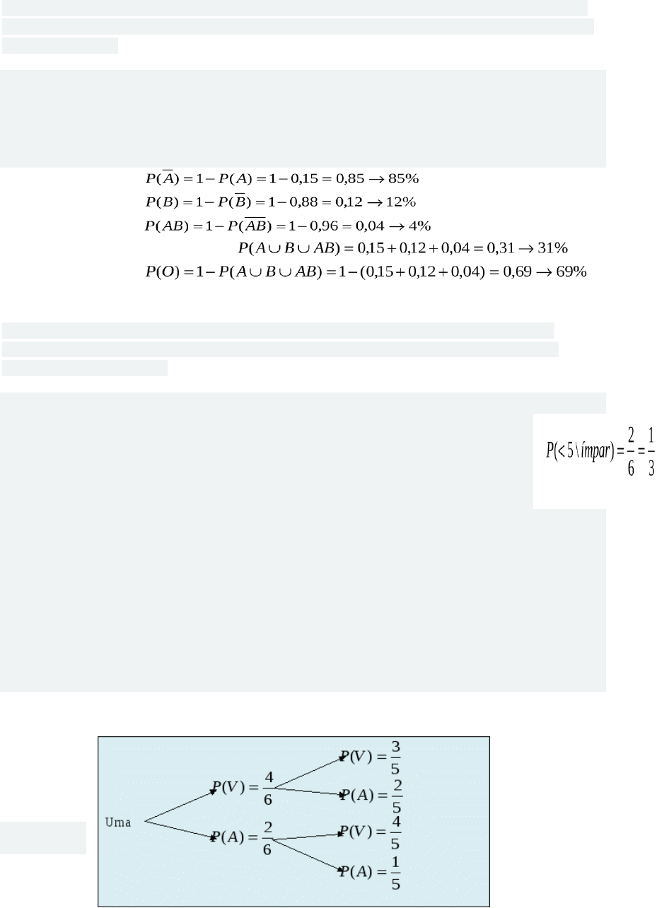 1) Numa certa população 15% das pessoas têm sangue tipo A, 88% não têm sangue tipo B e