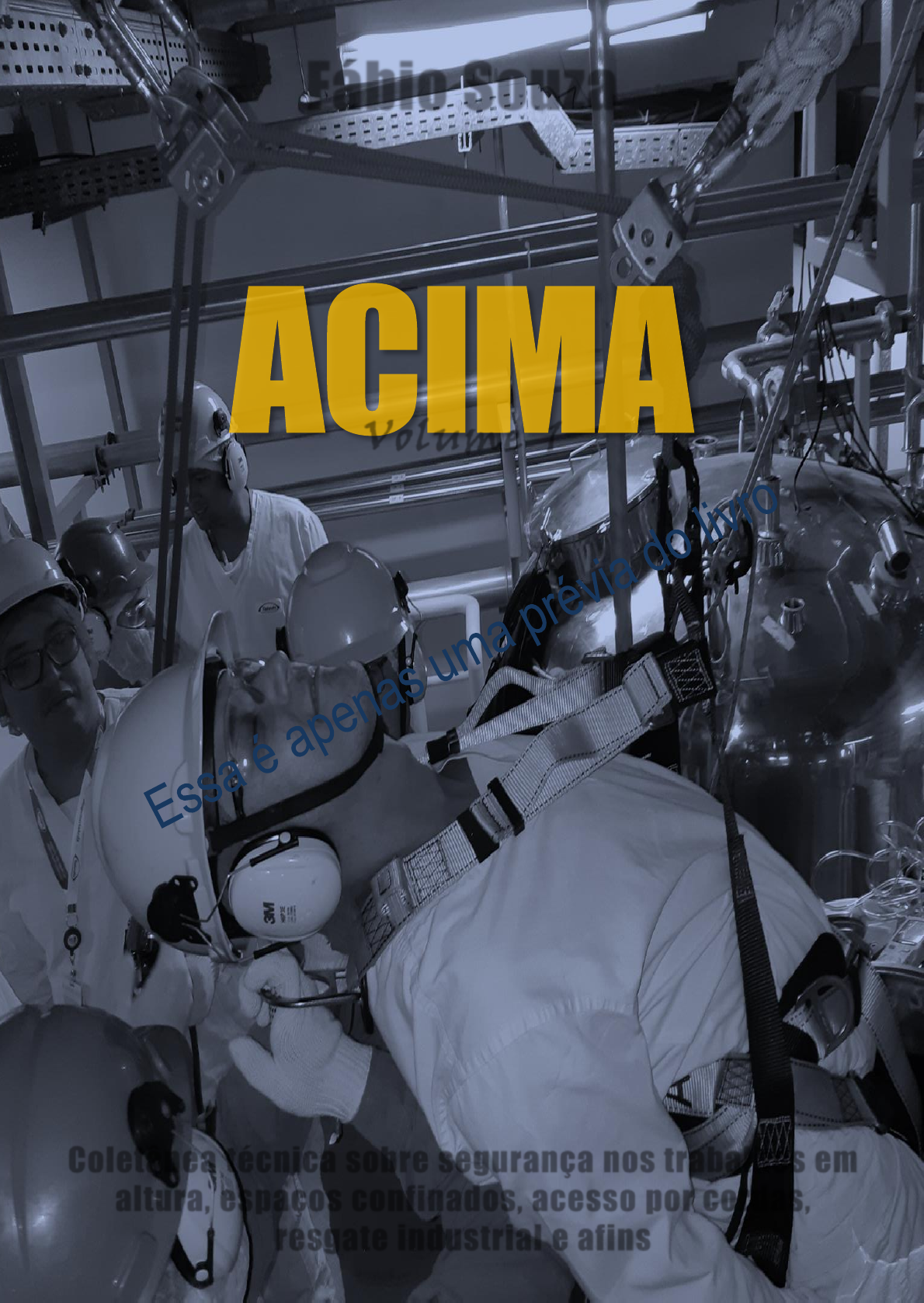 Coletânea técnica sobre segurança nos trabalhos em altura, espaços confinados, acesso por cordas, resgate industrial e afins Fábio Souza Volume 1 2 Coletânea técnica sobre segurança nos trabalhos em altura, espaços confinados, acesso por cordas, resgate industrial e afins. ACIMA Volume 1 Primeira edição São Paulo – setembro de 2020 3 Fábio Souza Não utilize nenhuma das informações aqui contidas como um treinamento ou como a qualificação para executar um trabalho em altura, espaço confinado, resgate ou qualquer outro tipo de atividade de risco. Atividades de risco necessitam de capacitação adequada sob supervisão de instrutores proficientes no assunto de interesse. Além disso atividades de risco necessitam de autorização formal dada por um empregador ou seu representante. ACIMA Volume 1 ALERTA 4 SOBRE O AUTOR Técnico em segurança do trabalho com mais de uma década de experiência no setor petroquímico, diretamente envolvido no planejamento, liberação e acompanhamento de trabalhos de risco envolvendo altura, espaços confinados, radiação ionizante, trabalhos a quente, ambientes inertizados, movimentação de carga, entre outros. Atuou também na área de supervisão operacional em laboratório químico e na área higiene ocupacional dentro da indústria de refino de petróleo. Graduado em tecnologia de gestão ambiental, pós-graduado em psicopedagogia institucional e pós graduado em gestão de emergências e desastres. Atua como membro de equipe de resposta a emergência e resgate envolvendo altura, espaços confinados, incêndios e emergências químicas no setor petroquímico. Coordenador de equipe de resgate técnico em altura e espaço confinado em setores industriais e comerciais. É também técnico em acesso por cordas nível 3 desenvolvendo trabalhos dentro do setor petroquímico, farmacêutico, logística e meio urbano. Atuou também como instrutor e auxiliar em cursos de formação de acesso por cordas dentro do sistema IRATA. Atuou como parceiro técnico da empresa Pro Altitude de Campinas/SP desenvolvendo soluções para implementação de cursos de primeiros socorros dentro do sistema GWO e no desenvolvimento de cenários e conteúdos para cursos de resgate em altura e espaços confinados. Trabalha no desenvolvimento e assessoria de planos de emergência envolvendo incêndios, altura e espaços confinados dentro de setores industriais e comerciais diversificados. Instrutor em cursos de resgate industrial em altura e espaços confinados, segurança para trabalhos em altura, espaços confinados, primeiros socorros, brigadas de emergência e outros temas diversificados dentro do universo da segurança do trabalho e atendimento de emergências. Parceiro técnico da empresa ULTRA SAFE na publicação de materiais técnicos e ajudando no teste de produtos e soluções para o mercado de altura, espaços confinados e resgate industrial. Fundador e coordenador técnico na empresa Controle Acima onde desenvolve treinamentos, assessoria para empresas, publicação de materiais técnicos, serviços em acesso por cordas e plantão na supervisão de trabalhos em altura, espaços confinados e no resgate técnico industrial. Como professor em cursos técnicos de segurança do trabalho lecionou em instituições como SENAC (São José dos Campos/SP), Instituto Tecnológico de Logística (Campinas/SP) e Colégio Cosmos na cidade de Paulínia/SP. Atuou também como coordenador técnico do curso de segurança do trabalho na FITEL Campinas/SP, membro de banca avaliadora, orientador de estágios e no desenvolvimento de planos de estudo e ementas para o curso técnico em segurança do trabalho. Autor e gestor do blog e do site Controle Acima. Autor também do canal no You Tube (não sou you tuber rsrs) CANAL ACIMA. Palestrante em seminários, SIPATs e workshops. Desenhista amador, escritor e leitor assíduo de normas, artigos e livros técnicos. Eterno aluno, sempre disposto a aprender. ACIMA 5 A base do conteúdo dessa obra está em materiais publicados em diferentes anos e períodos. Em alguns momentos o (a) atento (a) leitor (a) pode estranhar citações de normas ou documentos que possivelmente estejam atualizadas, alteradas ou até canceladas. Verifique sempre no início de cada assunto o ano da publicação para que não exista interpretação equivocada do conteúdo. Felizmente leis, normas e procedimentos são atualizados e precisamos ficar atentos para as mudanças. Os textos contidos dentro de comentários e em itálico são colocações atuais do autor para melhor entendimento sobre o assunto publicado em anos anteriores e o contexto em que foram escritos. O conteúdo foi todo revisado em relação aos boletins e artigos anteriormente publicados e novas informações foram inseridas a fim de manter coerência com o período atual. Agora sim, boa leitura! ULTIMAS INFORMAÇÕES ANTES DA LEITURA ACIMA 6 Essa obra é o resultado incansável de anos e anos de estudos, práticas, discussões, erros, aprendizados, tentativas, ensinamentos, normas, procedimentos, simulados, traduções e tudo mais que pude reunir do meu trabalho já colocado a disposição de milhares de profissionais e alunos (as) por meio de artigos, boletins, informes, campanhas, palestras, cursos, workshops, redes sociais, etc. Essa obra é um legado de anos de dedicação nas áreas de segurança do trabalho, resgate industrial, acesso por cordas e educação. Esse material não se trata especificamente de um manual e de como fazer as coisas, mas sim de como despertar o interesse para procurar, cada vez mais, por conhecimento e prática dentro de cada profissão e setores abordados e envolvidos aqui de alguma forma. Uma parte deste livro mostra o registro de três anos dedicados na produção de informativos técnicos que resultaram em dezenas de publicações. Mas, bem antes desses últimos três anos, já existiam outros anos de pesquisas e produção de conteúdo através de artigos em