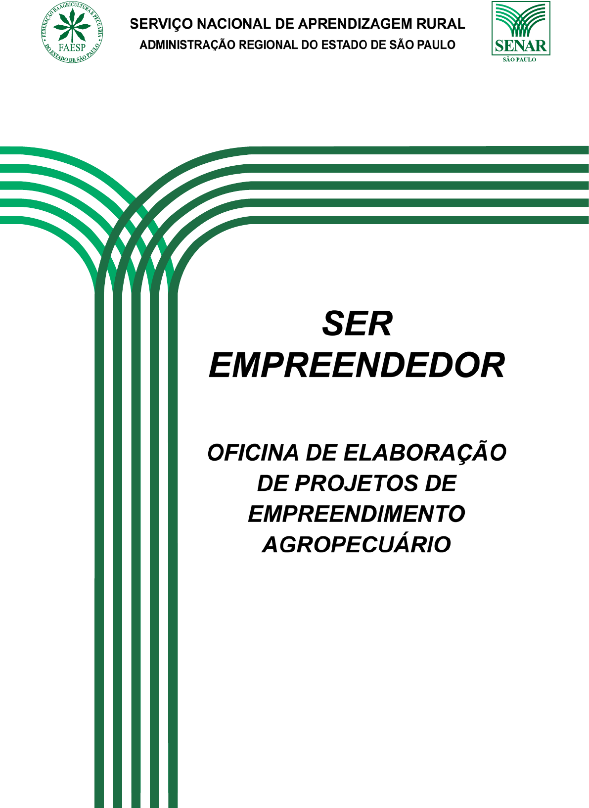 PROGRAMA JOVEM AGRICULTOR DO FUTURO SERVIÇO NACIONAL DE APRENDIZAGEM RURAL ADMINISTRAÇÃO REGIONAL DO ESTADO DE SÃO PAULO “O SENAR-AR/SP está permanentemente empenhado no aprimoramento profissional e na promoção social, destacando-se a saúde do produtor e do trabalhador rural.” FÁBIO MEIRELLES Presidente do Sistema FAESP-SENAR-AR/SP CARTILHA DO PARTICIPANTE SãO PAuLO - 2014 SER EMPREENDEDOR OFICINA DE ELABORAÇÃO DE PROJETOS DE EMPREENDIMENTO AGROPECUÁRIO FEDERAÇÃO DA AGRICULTURA E PECUÁRIA DO ESTADO DE SÃO PAULO Gestão 2016-2020 FÁBIO DE SALLES MEIRELLES Presidente SERVIÇO NACIONAL DE APRENDIZAGEM RURAL ADMINISTRAÇÃO REGIONAL DO ESTADO DE SÃO PAULO CONSELHO ADMINISTRATIVO FÁBIO DE SALLES MEIRELLES Presidente EDUARDO LUIZ BICUDO FERRARO Vice-Presidente TIRSO DE SALLES MEIRELLES Vice-Presidente RAPHAEL MELLILO Vice-Presidente MARCIO ANTONIO VASSOLER Vice-Presidente MARCOS ANTÔNIO MAZETI Diretor 1º Secretário ADRIANA MENEZES DA SILVA Diretor 2º Secretário MARIA LÚCIA FERREIRA Diretor 3º Secretário LUIZ SUTTI Diretor 1º Tesoureiro PEDRO LUIZ OLIVIERI LUCCHESI Diretor 2º Tesoureiro DANIEL KLÜPPEL CARRARA Representante da Administração Central ISAAC LEITE Presidente da FETAESP SÉRGIO ANTONIO EXPRESSÃO Representante do Segmento das Classes Produtoras ADRIANA MENEZES DA SILVA Representante do Segmento das Classes Produtoras MÁRIO ANTONIO DE MORAES BIRAL Superintendente SÉRGIO PERRONE RIBEIRO Coordenador Geral Administrativo e Técnico SERVIÇO NACIONAL DE APRENDIZAGEM RURAL ADMINISTRAÇÃO REGIONAL DO ESTADO DE SÃO PAULO PROGRAMA JOVEM AGRICULTOR DO FUTURO SER EMPREENDEDOR OFICINA DE ELABORAÇÃO DE PROJETOS DE EMPREENDIMENTO AGROPECUÁRIO CARTILHA DO PARTICIPANTE SãO PAuLO - 2014 do Estado dE são PauloFEdEração da agricultura E PEcuária4 Direitos Autorais: é proibida a reprodução total ou parcial desta cartilha, e por qualquer processo, sem a expressa e prévia autorização do SENAR-AR/SP. IDEALIZAÇÃO Fábio de Salles Meirelles Presidente do Sistema FAESP-SENAR-AR/SP SUPERVISÃO GERAL Jair Kaczinski Chefe da Divisão Técnica do SENAR-AR/SP RESPONSÁVEL TÉCNICO Andréia de Rezende Bittencourt Divisão Técnica do SENAR-AR/SP AUTORES Jasdimilia Santos da Rocha Josimar Leoni Marcel Luis Biava Cordova Regiana Cristina Berteli Roseli Aparecida Martins Caramori REVISÃO GRAMATICAL André Pomorski Lorente DIAGRAMAÇÃO Felipe Prado Bifulco Diagramador do SENAR-AR/SP Serviço NacioNal de apreNdizagem rural admiNiStração regioNal do eStado de São paulo 5 SUMÁRIO APRESENTAÇÃO .............................................................................................................................................7 I - INTRODUÇÃO ..............................................................................................................................................9 II - COMPETÊNCIAS A SEREM DESENVOLVIDAS NA OFICINA ................................................................10 SESSÃO 1/4.................................................................................................................................................... 11 I - CONHECENDO A OFICINA DE ELABORAÇÃO DE PROJETOS DE EMPREENDIMENTO AGRÍCOLA ................................................................................................................................... 11 II - RELEMBRANDO COMO ELABORAR PROJETOS ........................................................................13 INTERVALO ..........................................................................................................................................18 III - ELABORANDO PROJETO EXECUTÁVEL DE EMPREENDIMENTO AGRÍCOLA ........................18 SESSÃO 2 E 3/4 .............................................................................................................................................19 I - ELABORANDO PROJETO EXECUTÁVEL DE EMPREENDIMENTO AGRÍCOLA ..........................20 II - APRESENTANDO OS PROJETOS DE EMPREENDIMENTO AGRÍCOLA .....................................20 III - REFLEXÃO .....................................................................................................................................20 SESSÃO 4/4....................................................................................................................................................20 BIBLIOGRAFIA ...............................................................................................................................................22 do Estado dE são PauloFEdEração da agricultura E PEcuária6 Serviço NacioNal de apreNdizagem rural admiNiStração regioNal do eStado de São paulo 7 APRESENTAÇÃO O SERVIÇO NACIONAL DE APRENDIZAGEM RURAL - SENAR-AR/SP, criado em 23 de dezembro de 1991, pela Lei n° 8.315, e regulamentado em 10 de junho de 1992, como Entidade de personalidade jurídica de direito privado, sem fins lucrativos, teve a Administração Regional do Estado de São Paulo criada em 21 de maio de 1993. Instalado no mesmo prédio da Federação da Agricultura e Pecuária do Estado de São Paulo - FAESP, Edifício Barão de Itapetininga - Casa do Agricultor Fábio de Salles Meirelles, o SENAR-AR/SP tem, como objetivo, organizar, administrar e executar, em todo o Estado de São Paulo, o ensino da Formação Profissional e da Promoção Social Rurais dos trabalhadores e produtores rurais que atuam na produção primária de origem animal e vegetal, na agroindústria, no extrativismo, no apoio e na prestação de serviços rurais. Atendendo a um de seus principais objetivos, que é o de elevar o nível técnico, social e econômico do Homem do Campo e, consequentemente, a melhoria das suas condições de vida, o SENAR-AR/SP elaborou o Programa “Jovem Agricultor do Futuro”, a fim de proporcionar aos filhos de trabalhadores e produtores rurais um aprendizado simples e objetivo no que se refere às práticas agrosilvopastoris e ao uso correto das te