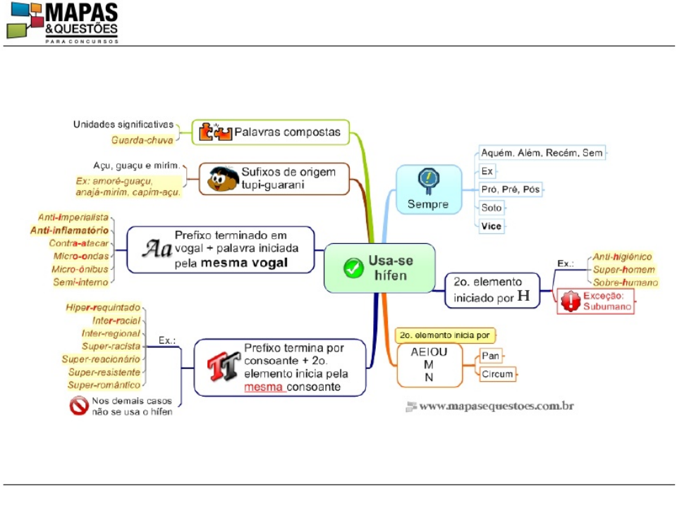 www.mapasequestoes.com.brPortuguês Português - Principais Tópicos Para Concursos contato@mapasequestoes.com.br 6 Hífen – 01 - Usa-se HífenHífen – 01 - Usa-se Hífen