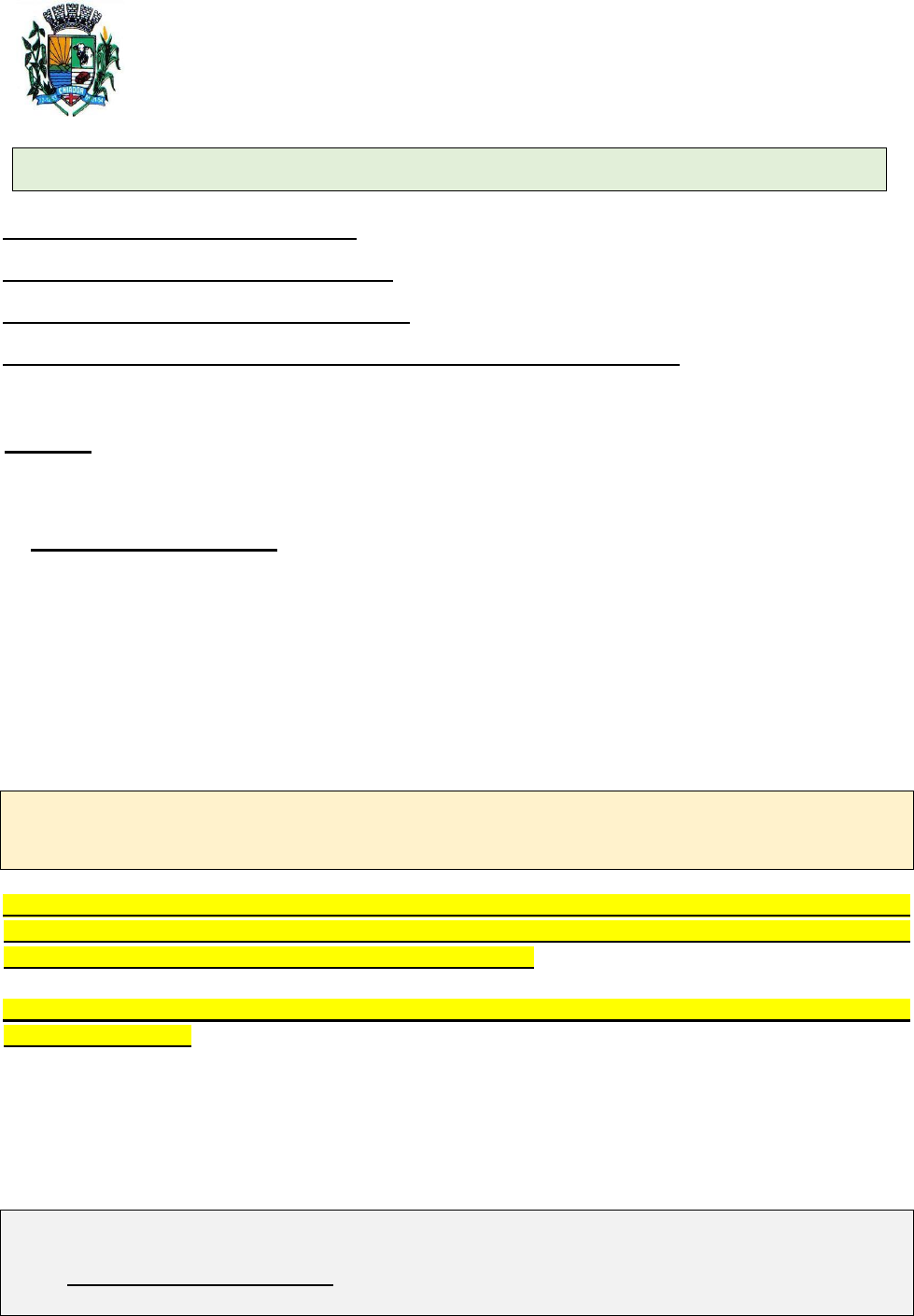 PREFEITURA MUNICIPAL DE CHIADOR ESTADO DE MINAS GERAIS Página 1 de 67 PREÂMBULO PROCESSO LICITATÓRIO Nº 086/2024 PREGÃO PRESENCIAL (SRP) Nº 023/2024 SISTEMA DE REGISTRO DE PREÇOS (SRP) TIPO DE LICITAÇÃO: MAIOR PERCENTUAL DE DESCONTO, POR LOTE. OBJETO: “EVENTUAL E FUTURA AQUISIÇÃO DE MEDICAMENTOS: ÉTICOS, GENÉRICOS E SIMILARES”. O MUNICÍPIO DE CHIADOR, Pessoa Jurídica de Direito Público, por seu órgão PREFEITURA MUNICIPAL, com sede na Rua Padre Carlos Dondero, nº 16 – Centro. Chiador / MG – CEP: 36.630000, e o Pregoeiro, levam ao conhecimento dos interessados que, na forma da Lei Federal nº 10.520/2002 e da Lei Federal n° 8.666/1993, nos termos do Decreto Municipal nº 006/2010 (Regulamentação da Modalidade de Licitação Pregão), e do Decreto Municipal nº 030/2013 (Regulamentação do Sistema de Registro de Preços), fará realizar licitação na modalidade Pregão Presencial, nos termos seguintes: O valor global estimado pela Administração para contratação do objeto é R$ 240.000,00 (Duzentos e quarenta mil reais). A participação nesta licitação é exclusiva para Microempresas - ME, Empresas de Pequeno Porte - EPP e Microempreendedor Individual – MEI. Em conformidade com os ditames do Art. 48, I e Art. 18-E, § 2º da LC/147 de 07 de agosto de 2014. A utilização da forma presencial no presente Pregão se justifica tendo em vista que o Art. 176 da Lei 14.133/2021 estabelece um prazo maior para os Municípios de até 20.000 habitantes, como é o caso de Chiador – MG, adequarem-se à forma eletrônica. ESTE EDITAL ESTÁ SENDO REPUBLICADO TENDO EM VISTA QUE O CERTAME ANTERIOR RESTOU DESERTO. Entrega dos Envelopes: “PROPOSTAS” E “DOCUMENTAÇÃO” Os envelopes serão recebidos durante o expediente normal da entidade, até a data e hora abaixo identificada, no seguinte local: MUNICÍPIO DE CHIADOR – MG. Tel: (+00) 32.3285-1000 Email: licitacao@chiador.mg.gov.br Rua Padre Carlos Dondero, nº 16 – Centro. Chiador / MG – CEP: 36.630-000 A documentação dos licitantes será aberta em sessão pública, no local acima identificado, na seguinte data e horário: PREFEITURA MUNICIPAL DE CHIADOR ESTADO DE MINAS GERAIS Página 2 de 67 Data: 26/06/2024 Horário: 09:00 (Nove) Horas A análise dos documentos de habilitação será logo após o encerramento da fase de lances, ou, em caso do horário de expediente não for compatível, poderá ser agendada para outra data e/ou horário, a critério do Pregoeiro e equipe de apoio. A participação neste certame implica aceitação de todas as condições estabelecidas neste instrumento convocatório. EDITAL O certame será regulado pelas seguintes cláusulas e condições: 1. DO OBJETO E OBJETIVO 1.1. A presente licitação tem como objeto o EVENTUAL E FUTURA AQUISIÇÃO DE MEDICAMENTOS: ÉTICOS, GENÉRICOS E SIMILARES, tudo conforme especificado no Termo de Referência (Anexo I) do presente Edital. 1.2. A futura contratação se faz necessária pois, considerando a necessidade de suprir a demanda na Secretaria Municipal de Saúde no desenvolvimento de suas atividades. 1.3. Faz-se necessário a realização de procedimento Administrativo de licitação, observando sempre a busca da Administração Pública pela melhor qualidade e o menor desembolso, através de um procedimento formal de disputa e registro de preços. 1.4. Os bens descritos no objeto são de natureza comuns, tendo em vista que seus padrões de desempenho e qualidade podem ser objetivamente definidos pelo edital, por meio de especificações usuais de mercado, nos termos do Art. 6º, inciso XIII, da Lei Federal nº 14.133/2021. 1.5. Conf. Art. 83 da Lei 14.133/2021, a existência de preços registrados implicará compromisso de fornecimento nas condições estabelecidas, mas não obrigará a Administração a contratar, facultada a realização de licitação específica para a aquisição pretendida, desde que devidamente motivada. 1.6. Nota 1: Para efeito de aquisição, prevalecerá, aquele tipo de medicamento que apresentar o menor valor no momento da solicitação, ou seja, o Laboratório que apresentar o menor valor; sendo que a referência será sempre o “ Preço de Fábrica (ou Preço Fabricante) – PF dos medicamentos constantes da Tabela CMED (CÂMARA DE REGULAÇÃO DO MERCADO DE MEDICAMENTOS)”, que é o maior preço permitido para vendas dos medicamentos selecionados; com índice praticado para o PREFEITURA MUNICIPAL DE CHIADOR ESTADO DE MINAS GERAIS Página 3 de 67 Estado de Minas Gerais, para aquele tipo específico de medicamento a ser fornecido, divulgado pela tabela da CMED, sobre o qual incidirá o percentual registrado. Nota 2: Os descontos serão aplicados sobre os Preços Fábrica (ou Preços Fabricante) – PF de todos os medicamentos relacionados nas TABELAS CMED (CÂMARA DE REGULAÇÃO DO MERCADO DE MEDICAMENTOS) de “A” a “Z” e ficará registrado em ata, de forma que no momento dos pedidos, serão considerados para fins de aplicação dos descontos e apuração dos valores dos medicamentos em Reais (R$), os preços constantes da tabela publicada na solicitação dos pedidos. 2 - DAS DEFINIÇÕES Adotam-se neste instrumento e em toda a documentação a ele associada as seguintes definições: 2.1 – MUNICÍPIO/ CONTRATANTE: pessoa jurídica de direito público interno que promove a presente licitação e signatário do Instrumento Contratual. 2.2 – PROPONENTE, INTERESSADOS, LICITANTE OU CONCORRENTE: pessoa jurídica de direito público ou privado que venha a apresentar documentação de habilitação e proposta na presente licitação. 2.3 – COMISSÃO DE LICITAÇÃO/LEILOEIRO/PREGOEIRO: grupo de servidores ou servidor do município designado para receber, analisar documentos de habilitação e julgar as propostas ou lances apresentados nesta licitação. 2.4 – DETENTOR DO REGISTRO: pessoa jurídica que ficará registrada na Ata de Registro de Preços para que possa usufruir de todos os efeitos 