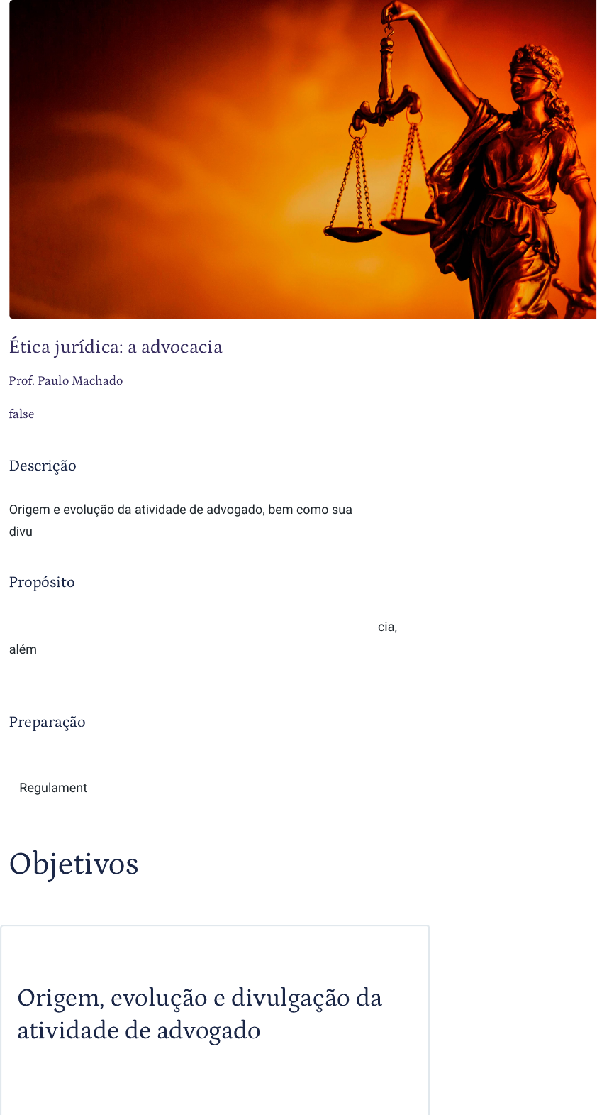 Ética jurídica: a advocacia Prof. Paulo Machado false Descrição Origem e evolução da atividade de advogado, bem como sua divulgação. Propósito Conhecer acerca do surgimento e do desenvolvimento da advocacia, além de saber como divulgar a atividade advocatícia, é essencial para a construção de uma carreira sólida e de sucesso. Preparação Tenha em mãos a Lei nº 8.906/1994 (Estatuto da Advocacia e da OAB), o Regulamento Geral do EAOAB e o Código de Ética e Disciplina. Objetivos Módulo 1 Origem, evolução e divulgação da atividade de advogado Reconhecer a origem e evolução da atividade de advogado, assim como sua divulgação. Módulo 2 Advogado sócio e advogado empregado Distinguir a figura do advogado sócio do advogado empregado. Módulo 3 Direitos e prerrogativas. Honorários advocatícios Analisar os direitos, prerrogativas e honorários advocatícios. Conhecer as bases, os princípios e as regras éticas da nossa profissão é essencial para um futuro promissor. A deontologia jurídica ensina que de nada adianta o advogado saber muito sobre determinado ramo do Direito, mas não utilizar seus conhecimentos de forma ética. Por conseguinte, um advogado que infringe as normas éticas pode colocar a história de sua carreira em risco. Introdução 1 - Origem, evolução e divulgação da atividade de advogado. Ao �nal deste módulo, você será capaz de reconhecer a origem e evolução da atividade de advogado, assim como sua divulgação. Origem e evolução da advocacia Origem e evolução da advocacia Você conhece a origem da advocacia? E quanto à sua evolução? Vamos acompanhar o professor Paulo Machado discorrer sobre o assunto. Origem e evolução da advocacia Não temos como precisar quem foi o primeiro advogado do mundo. Rui Barbosa dizia que o primeiro foi aquele que defendeu alguém de uma injustiça, de uma lesão ou de uma ameaça. Alguns historiadores tentam se ater a alguns pontos, até mesmo da Bíblia, para achar algum registro de quando a advocacia se tornou profissão. Isso se dá porque antigamente essa profissão estava entre atividades não especulativas, assim como médicos, professores e amas de leite. No entanto, existe um registro de quem foi o primeiro advogado no Brasil. Trata-se de Duarte Perez, um português degredado em 1502. Em linhas gerais, podemos organizar o surgimento e a evolução da advocacia em três momentos (sem nos prender a lugar e tempo). Foi caracterizado pelo uso intenso da oratória, pois nessa época ainda não havia escrita. Esse momento se iniciou com as partes atuando em defesa própria, surgindo depois a possibilidade de levar um amigo (amicus) ao “tribunal”. Mais tarde, os amigos que mais se destacavam pelo dom da palavra evoluíram para a figura de orador, etapa em que passaram a ser contratados para representar alguém. Daí a expressão advogado, do latim AD (para junto) mais VOCATUS (chamado), aquele que é chamado para junto. Com isso, o uso intenso da palavra deu azo para o surgimento das falácias (falsas ideias, quando a premissa aparentemente verdadeira era utilizada para se chegar a conclusões equivocadas). Diante disso, algumas restrições passaram a ser criadas: limite do uso do tempo, menores de idade não puderam mais representar outras pessoas e o orador tinha de abandonar a causa, se ela fosse injusta. Tão logo a escrita foi sendo criada, iniciou-se o segundo momento da evolução da advocacia. Há registos de que, no Egito, o processo passou a ser 100% escrito (por muito tempo). Tudo isso com o objetivo de se evitar o abuso da oratória. Primeiro momento Segundo momento Terceiro momento O terceiro momento da evolução da advocacia ocorreu com a criação das leis. Aqui então junta-se a figura do orador com a do jurisconsulto, que é a versão mais próxima dos advogados dos tempos atuais. Você deve estar se perguntando como isso se deu no Brasil, certo? Curiosidade No Brasil, os principais acontecimentos do surgimento da advocacia foram em 1825, mais precisamente no dia 11 de agosto, quando foi autorizada a criação da primeira faculdade de Direito do país, que acabou não acontecendo. Selo postal de 1977 homenageando a lei imperial de 11 de agosto de 1827 que criou os cursos em Olinda e São Paulo. Entretanto, aproveitando o ensejo, Visconde de Cachoeira criou o primeiro estatuto das faculdades de Direito. Em 1827, de fato, foram criadas as primeiras faculdades de Direito do país, mais precisamente em Olinda e São Paulo. Divulgação e publicidade da advocacia A questão da publicidade dos serviços advocatícios está abordada nos arts. 39 a 47 do Novo Código de Ética e Disciplina, que manteve a permissão da publicidade, mas com algumas restrições. Saiba mais Diferentemente de outros lugares (como, por exemplo, nos EUA, onde a publicidade pode ser feita com mais liberdade), no Brasil não se admite o uso de mecanismos ou de expressões que possam captar clientes nem a divulgação da advocacia com outra atividade. Vedam-se ainda a veiculação pelo rádio e pela televisão e a denominação de nome fantasia. A fim de alcançar todos os detalhes acerca desse relevante tema, veremos a seguir as regras básicas a respeito dele trazidas no Código de Ética e Disciplina (CED). Regramento da divulgação e publicidade na advocacia O art. 39 do CED determina que a publicidade profissional do advogado tem caráter meramente informativo e deve primar pela discrição e sobriedade, não podendo configurar captação de clientela ou mercantilização da profissão. Já o art. 40 do mesmo diploma traz as principais diretrizes acerca do tema ao dizer que são vedados: I - a veiculação da publicidade por meio de rádio, cinema e televisão; II - o uso de outdoors, painéis luminosos ou formas assemelhadas de publicidade; [...] III - as inscrições em muros, paredes, veículos, elevadores ou em qualquer espaço público; IV - a divulgação de serviços de advocacia juntamente 