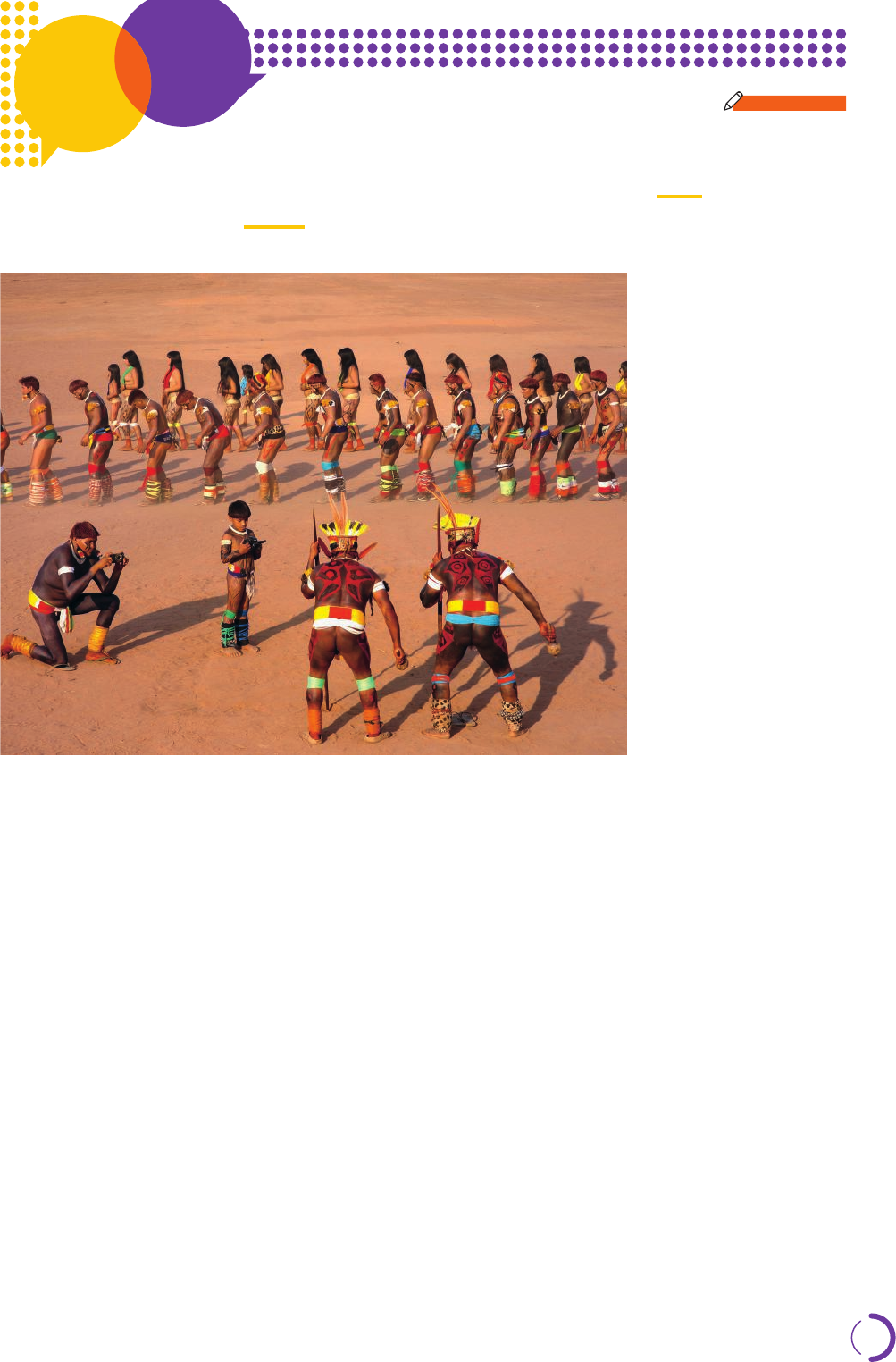 DI¡LOGOS NÃO ESCREVA NO LIVRO 1. Observe com atenção a fotografia abaixo. Trata-se do registro do lança- mento do primeiro filme kuikuro, resultado de um projeto do cacique Afukaká Kuikuro. Indígenas da etnia Kuikuro filmam dança nativa, em 2008, no Alto Xingu (MT). R e n a to S o a re s /P u ls a r Im a g e n s Veja respostas e orientações no Manual do Professor. Kuikuro: etnia com maior população no Alto Xingu (MT). Vive em aldeias na região oriental da bacia hidrográfica dos rios Culuene, Buriti e Curisevo e fala o nahukuá, um dialeto do karib alto-xinguano, família linguística que inclui os Matipu, os Nahukuá e os Kalapalo. Cultiva especialmente a mandioca e pratica a pesca e a coleta. A caça não é uma atividade importante na cultura kuikuro. a) Cite os elementos da fotografia que você identifica como parte da tradi- ção cultural kuikuro. b) Explique por que a preservação desses elementos culturais é impor- tante para os Kuikuro. c) As câmeras e os microfones presentes na imagem não são elementos da cultura tradicional kuikuro. São objetos tecnológicos assimilados das sociedades industriais criadas pelos não indígenas. Em seu enten- dimento, que função eles podem ter para os Kuikuro? d) Ao opinar sobre a demarcação de terras indígenas na região do Amazo- nas, uma autoridade local afirmou: “esses aí não são mais índios, já es- tão de calça e camisa, já estão usando óculos e relógios, já estão falando português, não são mais índios”. (Disponível em: www.kaninde.org.br/ cinco-ideias-equivocadas-sobre-indios/. Acesso em: 17 ago. 2020.) • Forme um grupo com mais cinco colegas e debatam essa afirmação. Os conhecimentos adquiridos no capítulo endossam ou contrariam a visão da autoridade amazonense? Ao final da discussão, elejam um porta- -voz para apresentar à turma a conclusão do grupo e os argumentos em defesa dela. 37 V1_CIE_HUM_Claudio_g21Sa_Cap1_016a043.indd 37V1_CIE_HUM_Claudio_g21Sa_Cap1_016a043.indd 37 9/14/20 6:10 PM9/14/20 6:10 PM Natureza e cultura De modo geral, entendemos por natureza tudo o que existe no mundo sem a interferência dos seres humanos. Entre os seres humanos, a natu- reza diz mais respeito aos fatores hereditários, que são transmitidos biolo- gicamente dos ascendentes para os descendentes, assim como à idade e à constituição física. Entre os animais, a estrutura biológica orienta suas ações possibilitando variedades mais estreitas de comportamentos. Já no ser humano a sua es- trutura natural, inata, induz respostas bem gerais, variáveis e imprevisíveis. Nesse caso, os elementos naturais e genéticos associam-se aos padrões culturais, adquiridos desde o nascimento e desenvolvidos ao longo da vida. No entanto, ainda submetido às questões genéticas e culturais, de acordo com o filósofo italiano Pico della Mirandola (1463-1494), o ser humano tem a liberdade de construir a si mesmo, como juiz e artesão de sua vida, mode- lando-se na obra que ele próprio escolheu ser. Os seres humanos são criaturas da natureza e a utilizam para a satisfa- ção de suas necessidades, assim como os demais seres vivos. Por isso, filo- soficamente, dificilmente será possível estabelecer limites entre natureza e cultura. Entretanto, os seres humanos são criadores da cultura do mundo em que vivem. E, diferentemente dos demais seres vivos, as formas que desen- volvem para se relacionarem com a natureza são bastante diversificadas, variando não apenas no tempo e no espaço, mas também entre os grupos humanos, povos e sociedades em uma mesma época e região, como um con- tinente ou zona climática. Na foto, o indígena da etnia Inuíte Dami Sakiagak mostra como construir um iglu – tipo de casa usada pelos povos nativos das regiões árticas. Sakiagak se dedica à construção de iglus para transmitir às gerações mais jovens os ensinamentos técnicos relacionados à edificação dessas habitações tão peculiares. Para construir um bom iglu, é importante levar em consideração o tipo de neve a ser usado, de que forma essa neve será cortada, já que ela tem de formar os blocos de gelo ideais para esse tipo de edificação, e de que maneira esses blocos de gelo devem ser unidos para que a casa não desabe. Além desses cuidados, um iglu bem construído deve permitir a entrada de luz e manter o vento gelado do lado de fora. Kangiqsujuaq, Nunavik, Quebec, Canadá, 2017. MIRANDOLA, Pico della. Discurso sobre a dignidade do homem. São Paulo: Edições 70, 2006. 38 V1_CIE_HUM_Claudio_g21Sa_Cap1_016a043.indd 38V1_CIE_HUM_Claudio_g21Sa_Cap1_016a043.indd 38 9/14/20 6:10 PM9/14/20 6:10 PM