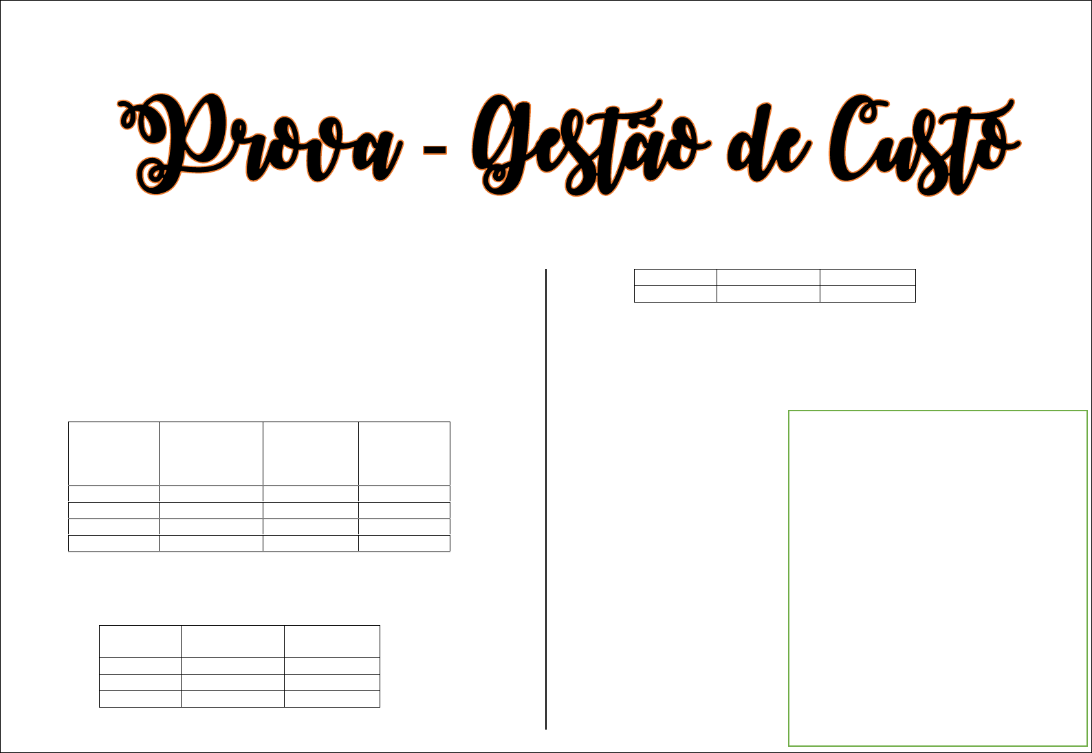 Pergunta 1 Com base nas informações a seguir, relativas ao mês de novembro, calcule o Custo Total de Produção no final do mês de novembro da totalidade das Ordens de Produção e a Lucratividade das OP 120 e 145, considerando que elas foram concluídas e faturadas nesse mês por R$ 700.000,00 e R$ 360.000,00, respectivamente: a) A Cia Elétrica CB Ltda. fabrica geradores de alta tensão sob encomenda. Em 31 de outubro havia as seguintes Ordens de Produção em andamento: OP Matéria-Prima $ Mão-de-Obra S Custos Indiretos de Fabricação S 120 120.000 60.000 89.000 143 39.000 17.800 12.000 145 25.000 11.000 15.600 Total 184.000 88.800 116.600 Durante o mês de novembro, os gastos com matérias-primas e os apontamentos de mão-de-obra direta durante o mês de novembro apresentaram os seguintes valores: OP Matéria-Prima $ Mão-de-Obra S 120 155.000 145.000 143 164.000 63.000 145 102.450 75.000 146 51.325 33.400 Total 472.775 316.400 c) Os custos indiretos de fabricação totalizaram $ 329.000 no mês de novembro e são apropriados a cada OP proporcionalmente aos gastos com matérias-primas do mês. Realizando os respectivos processos de acumulação de custos, o Custo Total de Produção e a Lucratividade das OP 120 e 145, será respectivamente: 967.987,00; 21.116,31 e 62.642,36 1.507.485,00; 25.116,31 e 57.642,36 1.507.485,00 ; 23.116,31 e 59.642,36 1.570.485,00; 22.123,45 e 57.642,36 967.987,00; 23.116,31 e 59.642,36 Solução: Custo total out e nov = MD +MOD+CIF CT = (184.000+472.775) + (88.800+ 316.400) + (1116.600 + 329.00) = 1.507.575 Rateio do CIF de novembro OP120 155.000/ 472.775 = 32,79% x 329.000 = 107.879,10 Custo = 120.000 + 155.000 + 60.000 + 145.000 + 89.000 + 107.879,10 = 676.879,10 OP 145 102.450 / 472.775 = 21,67% x 329.000 = 71.294,30 Custo = 25.000 + 102.450 + 11.000 + 75.000 + 15.600 + 71.294,30 = 300.344,30 Lucratividade L (op120) = 700.000 - 676.879,10 = 23.120,90 L (op145) = 360.0000 – 300.344,30 = 59.655,70 Pergunta 2 São várias as formas de classificar os custos. Com relação aos produtos, os custos podem ser classificados como: Primário e secundário Fabril e de conversão Semifixos e semivariáveis Fixos e variáveis Diretos e Indiretos Pergunta 3 Leia com atenção a frase a seguir: “Se a escolha for, por exemplo, a MOD, precisa se conhecer o porcentual dela utilizada na produção de cada produto, atividade ou centro de custo e, com base nesse percentual, distribuir os CIFs ou conforme outras denominações as Despesas Indiretas de Fabricação - DIFs, Custos Gerais de Fabricação - CGFs ou as Despesas Gerais da Fabricação - DGs” Ela se refere: Processo de Rateio de custos Sistemas de Acumulação de Custos Métodos de Avaliação de estoques Mecanismos Controle de custos Métodos de Custeio Pergunta 4 “A proximidade entre o _________ e a capacidade máxima, denominada Grau de Comprometimento da Receita (GCR), pode ser interpretada como medida do risco operacional da empresa.” Complete a frase: Ponto de Equilíbrio Operacional Ponto de Equilíbrio contábil Ponto de Equilíbrio mix Ponto de Equilíbrio financeiro Ponto de Equilíbrio econômico Pergunta 5 Considerando o custeio de absorção, analise as afirmativas abaixo e responda: I. O método de custeio por absorção caracteriza-se por apropriar custos fixos e avariáveis aos produtos. Os produtos fabricados “absorvem” todos os custos incorridos de um período; II. As despesas não são apropriadas aos produtos, e sim lançadas na demonstração de resultado do exercício, os custos são apropriados aos produtos, e os investimentos ativados; III. É o método de custeio que atende o que pede a legislação do imposto de renda. Deve ser utilizado quando a empresa busca o uso do sistema de custos integrado à contabilidade. IV. Para esse método ser adotado, a empresa precisa ser dividida contabilmente por centros de custos, o que permite a atribuição a cada um dos centros. Pergunta 6 Existem diferentes ______________ de custeio, os quais são adotados de acordo com os _________ estabelecidos pela empresa. Eles são: ________________, ________________, __________ e _______________________. Escolha a alternativa que completa a frase: Métodos, objetivos, custeio por absorção, custeio primário, custeio variável, custeio ABC Métodos, objetivos, custeio por rateio, custeio administrativo, custeio variável, custeio BCG Métodos, procedimentos, custeio por atratividade, custeio arbitrado, custeio variável, custeio automático Métodos, objetivos, custeio por tradição, custeio parcial, custeio variável, custeio automático Métodos, objetivos, custeio por absorção, custeio pleno, custeio variável, custeio ABC Pergunta 7 Complete as lacunas da frase: Nas empresas de produção por ____________, __________ são ____________ em cada ordem _____________ especificamente relacionadas com um determinado produto. Processos, os custos, distribuídos, contínua Encomenda, as despesas, acumuladas, de produção Processos, despesas, acumuladas, de compra Encomenda, os custos, acumulados, de produção Processos, os custos, distribuídos, de venda Pergunta 8 Quando uma empresa deseja saber o volume de vendas (em unidades ou em $) que é suficiente para pagar os custos e despesas variáveis, os custos fixos (exceto a depreciação) e outras dívidas que a empresa tenha que saldar no período, como empréstimos e financiamentos bancários, aquisições de bens, etc, pode-se recorrer ao cálculo do: Ponto de equilíbrio operacional Ponto de equilíbrio mix Ponto de equilíbrio contábil Ponto de equilíbrio econômico Ponto de equilíbrio financeiro Pergunta 9 A indústria de Geradores CB Ltda possui os seguintes departamentos auxiliares de produção, cujos custos em novembro foram: Compras = $ 25.000 Almoxarifado = $ 58.000 Recursos Humanos = $ 28.000 Total = $ 111.000 Durante o mês, os departamentos auxiliares prestaram serviços aos demais departamentos, conforme a tabela a seguir: 