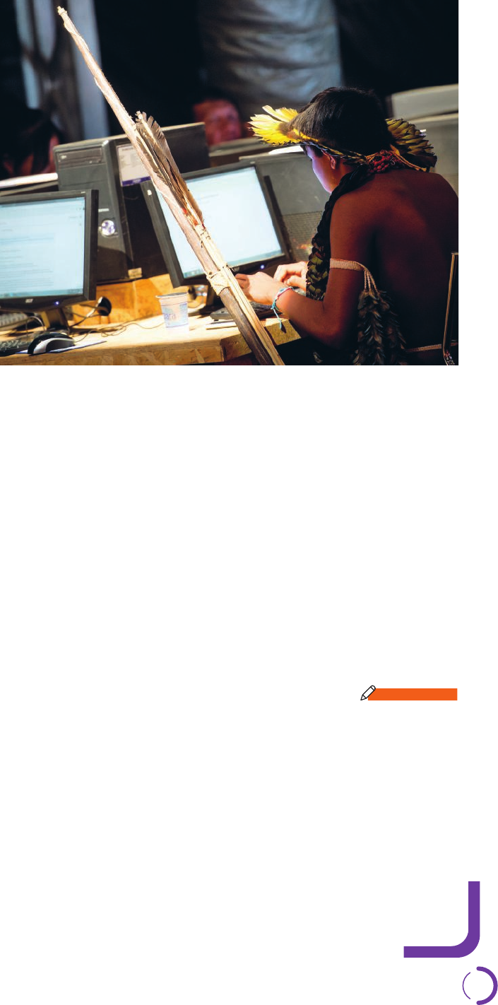 NÃO ESCREVA NO LIVRO Indígena em curso de Informática na "Oca Digital" durante os Jogos Mundiais dos Povos Indígenas, em Palmas (TO). Foto de 2015. comunidades indígenas de Norte a Sul do País intera- gindo e em uma rede ativa de informação e mobiliza- ção. Nós aumentamos nos- sa capacidade de resistir e mobilizar e estamos mais capacitados para enfren- tar isso do que no passado. Assim, fica parecendo uma contradição, porque você vai dizer: “Não piorou?” E eu vou te dizer: “Não, não piorou”. Estaria pior se a gente não tivesse conse- guido se apropriar desses meios de comunicação que os brancos sempre domina- ram. Então, antes da gente constituir uma narrativa, a gente teve que constituir uma tecnologia dos brancos. Eu lembro que há 30 anos o que as nossas aldeias tinham eram rádios-comunitárias e o rádio era um veículo sujeito a todo tipo de barreira. De ficar sem sinal, sem comuni- cação; às vezes uma semana ou um mês inteiro esperando ir lá um téc- nico trocar uma bateria ou algo do tipo. Hoje, a velocidade com que um evento sai de um lugar e chega a algum outro lugar do mundo… quando alguém chega comigo e fala: “Ah, um lugar remoto da Amazônia”. Eu falo: “Remoto para você, porque para quem vive lá, quem está remoto é você”. [...] KRENAK, Ailton. "Não é a primeira vez que profetizam nosso fim; enterramos todos os profetas”, diz Ailton Krenak. [Entrevista cedida a] Elaíze Farias. Amazônia.org, 12 fev. 2020. Disponível em: https://amazonia.org.br/2020/02/nao-e-a-primeira-vez-que- profetizam-nosso-fim-enterramos-todos-os-profetas-diz-ailton-krenak/. Acesso em: 4 jun. 2020. 1. Você provavelmente dedica parte de seu tempo para navegar na internet. Essa tecnologia, diferentemente de outras, possibilita maior protagonis- mo das pessoas, seja por meio de interação, até mesmo entre desconhe- cidos, seja por meio da veiculação de conteúdos próprios, que podem “viralizar” na rede – para utilizar um termo comum desse meio de comu- nicação. Em sua opinião, o que leva as pessoas a alimentar as redes so- ciais, por exemplo, com opiniões e conteúdos próprios? E quais são as consequências disso para o mundo material e para as pessoas? 2. Como ficam os territórios em tempos de grandes avanços da tecnologia, por exemplo, nos meios de transporte e de comunicação? Eles perdem sua importância? No futuro não haverá disputas e batalhas pela domina- ção de territórios, fato que marcou toda a História? Veja as respostas no Manual do Professor. M a rc e lo C a m a rg o /A g • n c ia B ra s il 45 V2_CIE_HUM_Claudio_g21Sa_Cap2_044a083.indd 45V2_CIE_HUM_Claudio_g21Sa_Cap2_044a083.indd 45 9/8/20 5:45 PM9/8/20 5:45 PM A diversidade da população População, povo, etnia e nação No Brasil, população e povo são conceitos diferentes do ponto de vista jurídico: • a população brasileira é o conjunto de todos os habitantes do país, in- dependentemente das diferenças étnico-culturais. Engloba, por exemplo, estrangeiros residentes e não naturalizados, com direitos assegurados por tratados internacionais e na Constituição federal. População é um con- ceito geográfico-quantitativo. • o povo brasileiro é composto de habitantes natos e estrangeiros natu- ralizados que, de forma regulamentada, têm direitos e deveres de parti- cipação na vida política do país; nesse sentido jurídico-político, abarca a cidadania dos indivíduos. A referência ao povo brasileiro, no sentido jurídico, aparece no preâmbulo da Constituição federal. Note que as pessoas que a redigiram são represen- tantes do povo brasileiro. Constituição da República Federativa do Brasil Preâmbulo Nós, representantes do povo brasileiro, reunidos em Assembleia Nacio- nal Constituinte para instituir um Estado Democrático, destinado a assegu- rar o exercício dos direitos sociais e individuais, a liberdade, a segurança, o bem-estar, o desenvolvimento, a igualdade e a justiça como valores supre- mos de uma sociedade fraterna, pluralista e sem preconceitos, fundada na harmonia social e comprometida, na ordem interna e internacional, com a solução pacífica das controvérsias, promulgamos, sob a proteção de Deus, a seguinte CONSTITUIÇÃO DA REPÚBLICA FEDERATIVA DO BRASIL. [...] BRASIL. [Constituição (1988)]. Constituição da República Federativa do Brasil de 1988. Brasília, DF: Presidência da República, [2020]. Disponível em: www.planalto.gov.br/ccivil_03/constituicao/ constituicao.htm. Acesso em: 10 abr. 2020. Quando nos referimos à população de um país, também podemos considerar critérios para ava- liar seu número absoluto e relativo. Um país é considerado populoso quando o número total de habitantes é alto, e povoado quando o número de habitantes por quilômetro quadrado é elevado. População É o conjunto de pessoas que vive em determinado território. Ela pode ser caracterizada de acordo com vários aspectos, como gênero, faixa etária, religião, etnia, idioma, local de moradia, atividades econômicas, entre outros. As condições de vida e o comportamento da população são retratados por meio de indicadores sociais: taxas de natalidade e mortalidade, expectativa de vida, índices de analfabetismo, participação na renda nacional, etc. Conceitos Países mais populosos do mundo – 2019 País População (milhões) Área (mil km²) Densidade demográfica (habitantes por km²) China 1 433 9 562,9 148 Índia 1 366 3 287,3 455 Estados Unidos 329 9 831,5 36 Indonésia 271 1 913,6 148 Paquistão 217 796,1 275 Brasil 211 8 515,8 25 Fonte: UNITED NATIONS. Population Division. World Population Prospects 2019. Online Edition. Disponível em: https:// population.un.org/wpp/Download/Standard/Population/; WORLD BANK. World Development Indicators 2020. Disponível em: http:// wdi.worldbank.org/tablesi. Acesso em: 11 abr. 2020. 46 V2_CIE_HUM_Claudio_g21Sa_Cap2_044a083.indd 46V2_CIE_HUM_Claudio_g21Sa_Cap2_044a0