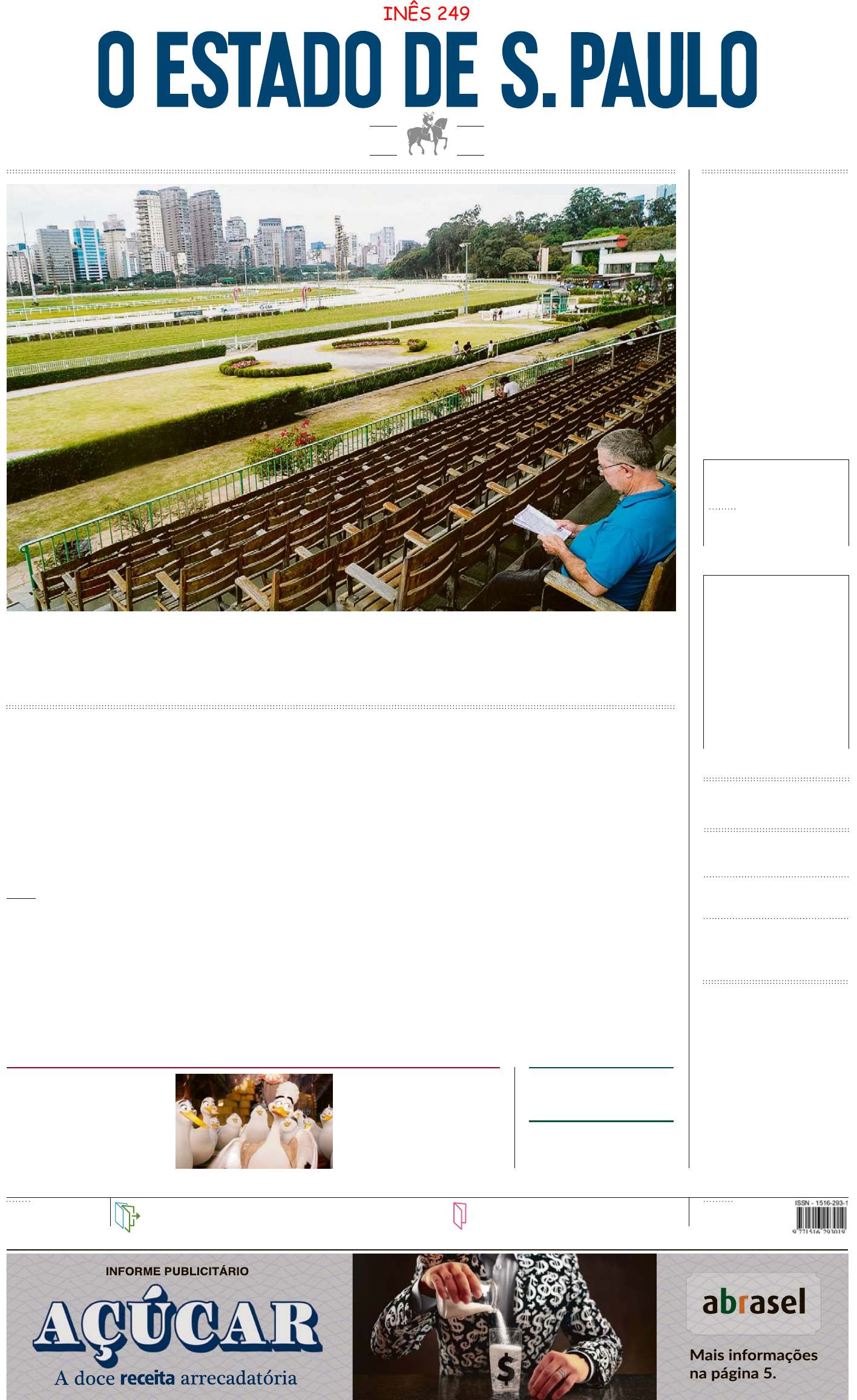 C2. Cultura & Comportamento, A fundo Caderno A. Opinião, Política, Internacional, Metrópole, Esportes, Para fechar... E&N. Destacar Economia & Negócios 15° Mín. 24° Máx. SERGIO BARZAGHI/ESTADÃO Tempo em SP Decisão de que ex-presiden- tes têm imunidade em atos oficiais, mas não em ações pessoais durante seus man- datos, é vista como vitória pa- ra Trump em seus processos. Suprema Corte alivia caminho judicial para Trump antes de eleição ‘Imunidade parcial’ __ A14 estadão.com.br Para pais sem descanso __ C1 Edição de hoje Brasil e Argentina, a diferença na luta contra a inflação E&N Plano Real, 30 anos __ B4 e B5 3 CADERNOS – 44 páginas F U N D A D O E M 1 8 7 5 J U L I O M E S Q U I T A ( 1 8 6 2 — 1 9 2 7 ) Carlos Andreazza __ A13 Notas e Informações __ A3 Turbulência provoca pouso de emergência e deixa feridos Voo da Air Europa no RN __ A20 David French / NYT 15 opções para ver e ler l Patos (E) e mais 4 filmes l Cobra Kai e mais 4 séries l Manual do Jovem Cientista e mais 4 livros Demi Getschko__ B12 Nem ovo nem galinha Briga de foice Barbas de molho Eliane Cantanhêde __ A12 E m um acordo com o Congresso, o gover- no deve pagar até R$ 30 bilhões em emendas parlamentares antes das eleições municipais de ou- tubro. O volume é o maior da história para um primeiro se- mestre de ano e para um perío- do pré-eleitoral. O montante inclui recursos distribuídos sem critérios técnicos, emen- das Pix e verbas remanescen- tes do orçamento secreto. Em 2024, até a semana passada, fo- ram pagos R$ 20,9 bilhões. A lei eleitoral proíbe o pagamen- to de emendas a menos de três meses antes da eleição, perío- do que começa no próximo dia 6. A exceção são repasses para obras executadas anteriormen- te. Manobras do Congresso com aval do governo, porém, mudaram a forma de pagamen- to de emendas neste ano, ge- rando dribles à lei eleitoral e tornando a regra inócua. O Pa- lácio do Planalto afirmou que o objetivo é viabilizar obras e acelerar o atendimento à popu- lação nos municípios. Acordo com o Congresso __ A7 Impunidade presidencial Análise __ A15 Férias com frio? Dicas de lazer infantil em casa Tecnologia e ipês-roxos UNIVERSAL PICTURES Forte alta nos ganhos de pa- péis do Tesouro dos EUA se somou a novos ataques do presidente Luiz Inácio Lula da Silva à autonomia do BC. Alta de títulos dos EUA e mercado interno fazem dólar ir a R$ 5,65 E&N Moeda valorizada __ B1 e B2 França, com raiva e apreensão, caminha para o desconhecido The Economist __ A16 Após governos de direita, centro e esquerda, os elei- tores parecem dispostos a apostar em um partido que nunca governou. Plano de transformar o local em parque foi reiterado pela Prefeitura um dia após a Câmara Municipal aprovar lei proibindo corri- das de animais sujeitas a apostas. Diretoria do Jockey vê no movimento uma ‘absurda tentativa de desapropriar o terreno’. __ A19 Em três anos, Jockey Club passa de ‘inviável’ a prioridade Volume é o maior da história para um período pré-eleitoral Antes da eleição, governo acelera repasse de R$ 30 bi em emendas Terça-feira 2 de JULHO de 2024 l R$ 7,00 l Ano 145 l Nº 47740 INÊS 249 l REAÇÃO. O assessor especial da Presidência da República para As- suntos Internacionais, Celso Amorim, defende uma união das “forças democráticas” para barrar a ascensão, na França, da direita radical que saiu vitoriosa em primeiro turno e pode voltar ao poder no país após 80 anos. l TEMOR. “A eleição ainda não ter- minou, não sabemos exatamen- te o que acontecerá. Mas se acon- tecer o mais provável, a vitória da extrema direita, temos de lamen- tar. A desunião favorece a extre- ma direita, a História nos mostra que isso é perigoso”, afirmou Amorim à Coluna. Ele diz que é preciso esperar o 2.º turno. l BOA AÇÃO. Ex-presidente do Su- premo Tribunal Federal (STF), Rosa Weber adotou um cachor- ro basset que estava desabrigado após as enchentes no Rio Gran- de do Sul. Deu ao novo animal de estimação o nome de Quincas Borba, nome do cão do livro ho- mônimo de Machado de Assis. l CARINHO. O ministro das Cida- des, Jader Filho, que é do MDB de Ricardo Nunes, chamou o pré-candidato a prefeito de São Paulo Guilherme Boulos (P- SOL) de “querido” durante o anúncio de um novo instituto fe- deral na capital paulista. Ao dis- cursar, o ministro não citou Nu- nes, que vai tentar a reeleição. l LIBERADO. Jader afirmou a pre- sentes ao evento que tem liberda- de para elogiar figuras ligadas ao governo para o qual ele trabalha, mesmo quando adversários do MDB. Lideranças do MDB tam- bém minimizaram o episódio: vi- ram a declaração do ministro co- mo “protocolar” e dizem que não haveria motivo para citar Nu- nes, que não estava presente. l VEM AQUI. A comissão de Educa- ção da Câmara vai votar amanhã um requerimento de audiência pública para o presidente do IB- GE, Marcio Pochmann, explicar os erros do Atlas Geográfico Es- colar, produzido pela entidade. l INSISTO. Na contramão das cele- brações de 30 anos do Plano Real, que pôs fim à hiperinflação no Brasil, o PT reiterou suas críti- cas históricas ao projeto. Ontem, publicou no seu site oficial o tex- to “Plano Real: 30 anos depois, Brasil ainda sofre efeitos colate- rais”, com análises de Pochmann e Aloizio Mercadante, hoje no BNDES. No governo Itamar Franco, PT votou contra o Plano. l LEMBRETE. Idealizadores do Pla- no Real como Fernando Henri- que Cardoso, André Lara Resen- de, Persio Arida, Edmar Bacha e Pedro Malan apoiaram a eleição de Lula no 2.º turno de 2022. PRONTO, FALEI! Fausto Pinato Deputado federal (PP-SP) “Enquanto o Legislativo for fo- mentado por parlamentares ex- tremistas com objetivo de afron- tar o STF, vamos deixar a legisla- ção na contramão da História.” Ministro do TCU que defende revisão da previdência militar é sorteado para analisar tema O ministro Vital do Rêgo Filho é quem