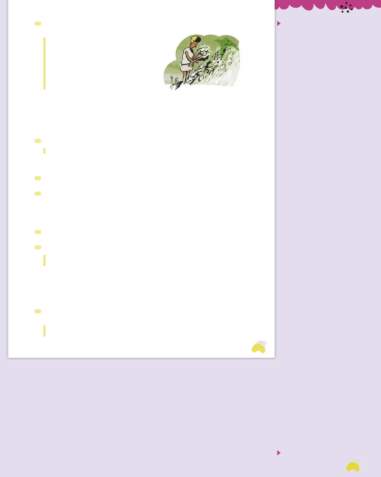 4 Uma das características da produção literária de Marina Colasanti é o detalhamento, a escolha cuida- dosa de cada palavra. Releia o trecho a seguir: Arou e plantou. Muitas e muitas vezes sujou- se de terra. E manchou-se do sumo das frutas e da seiva das plantas. A roupa já não era branca, embora ele a lavasse no regato. Plantou e colheu. A roupa rasgou-se, o tecido puiu-se. O jovem pequenino emendou os rasgões com fios de lã, costurou remendos onde o pano cedia. Quando a neve veio, prendeu em sua roupa mangas mais grossas para se aquecer. a) O trecho mostra que a autora escolheu formar um parágrafo com frases curtas para apresentar esse momento da narrativa. Qual é o efeito de sentido provocado por essa sequência de frases curtas no conto? Converse com os colegas e, depois, registre no caderno as conclusões a que vo- cês chegaram. b) Identifique as orações do parágrafo. Indique um caso em que as orações são separadas por vírgula e um caso em que as orações são separadas por alguma palavra. 5 Releia este trecho em voz alta. Depois, responda às perguntas no caderno. [...] sujou-se de terra. E manchou-se do sumo das frutas e da seiva das plantas. [...] a) Que som se destaca nessas frases? O som /s/ apresentado pela letra s. b) Que efeito é produzido por essa repetição de sons? 5b. É possível relacionar essa repetição com a ideia de movimento ou de passagem do tempo ou, ainda, com a mudança das estações. 6 A linguagem empregada no conto difere da linguagem usada no dia a dia. Copie um exemplo que em- prega uma linguagem mais formal. 7 Copie em seu caderno a(s) alternativa(s) que corresponde(m) às características da linguagem do texto. a) Linguagem mais elaborada, diferente da forma usada no dia a dia com pessoas próximas. X b) Vocabulário selecionado com termos usados no dia a dia com pessoas próximas. c) Construções de frases que não são comuns no uso cotidiano. X d) Linguagem menos monitorada, com uso de gírias. 8 As vozes do discurso dizem respeito às falas e aos pensamentos dos personagens e também à voz do narrador, nas narrativas de ficção. Nesse conto, qual é a voz que predomina? A voz do narrador. 9 Releia o único diálogo do texto: — Senhor, como devemos vestir-nos? — Vistam-se como os campos — respondeu o sábio. Esse trecho é construído por discurso direto, por uma conversa entre duas ou mais pessoas, em que há uma troca dos turnos de fala. Responda: a) De quem é a primeira fala? Dos jovens que acompanhavam o sábio. b) Essas falas foram indicadas por verbos de dizer, empregados antes ou após a fala do personagem. Copie-os. Perguntaram, respondeu. 10 Considerando que, no discurso indireto, o personagem não fala diretamente, é o narrador que conta o que o personagem falou, reescreva a fala deste trecho empregando o discurso indireto: “[...] aqueles jovens [...] dele se aproximaram e perguntaram: — Senhor, como devemos vestir-nos?”. Aqueles jovens dele se aproximaram e perguntaram como deveriam se vestir. 4a. Sugestão: As frases curtas dão ritmo à leitura e destacam ações que se sucedem progressivamente no tempo, produzindo o efeito de sentido de empenho e dedicação, que também é reforçado pelas escolhas de palavras no texto, como o uso da expressão “muitas e muitas vezes”. Possibilidades: “[...] com o adiantar-se do outono [...]”, “[...] E entremearam fios de ouro no amarelo dos trigais [...]”, “[...] foram recriando em longas vestes os campos arados [...]”. 4b. Orações separadas por vírgula: “A roupa rasgou-se, o tecido puiu-se”. Orações separadas por palavras (conjunções): “Arou e plantou”; “A roupa já não era branca, embora ele a lavasse no regato”; “Plantou e colheu”. N ik N ev es /A rq ui vo d a ed ito ra 191 191 Reprodução do Livro do Estudante em tamanho reduzido. Atividade 4 a) Propor que um estudante leia em voz alta o trecho do tex- to e pedir aos demais que observem as pausas que são feitas durante a leitura. É importante que os estudantes percebam que o trecho é formado por frases curtas. b) Pedir aos estudantes que contem quantas frases há no parágrafo (8 frases); depois, com a identificação das orações usadas no trecho, mostrar que quase todas as frases do parágrafo são formadas por mais de uma ora- ção, divididas por vírgulas ou palavras (conjunções). Comentar que a construção do parágrafo em frases curtas, com orações justapostas ou ligadas por conjunções em perí- odos compostos por coordenação, cria a ideia de sucessão e progressão de ações ou fatos. O termo coordenação refere- -se ao caráter de independência entre as orações, que se dá pelo fato de não haver entre elas uma dependência sintática. Atividade 6 Certamente os estudantes não se reconhecerão como usuários desse tipo de linguagem, que tem um vocabulá- rio e uma forma de construção mais elaborados. Devem re- fletir sobre o porquê da escolha da autora: referir-se a um sábio que, pelos detalhes do conto, pertence a um tempo mais remoto e, por esse motivo, optar por uma linguagem com características mais formais, o que reforça a ambien- tação do conto e a atmosfera fantástica. Assim, os estudantes devem refletir sobre as diferenças entre a linguagem do conto e a que empregam no cotidiano, fazendo um exercício de pensar como falariam hoje frases como essas, e so- bre a intencionalidade das escolhas de linguagem no conto. Atividades 8 a 10 Recordar com os estudantes as vo- zes do discurso. ⓿ Discurso direto: nas narrativas de ficção, o diálogo é uma sequência conversacional. Explorar a categoria dos verbos de dizer – verbos de elocução, também conhecidos como verbos dicendi –, mostrando os papéis e as funções que eles podem desempenhar: a) introduzir falas, permitindo que descrevam entonações, tons, altura de voz, etc., da fala, que não podem ser reproduzidos na língua escrita (sussur- rar; sibilar; gritar; pedi