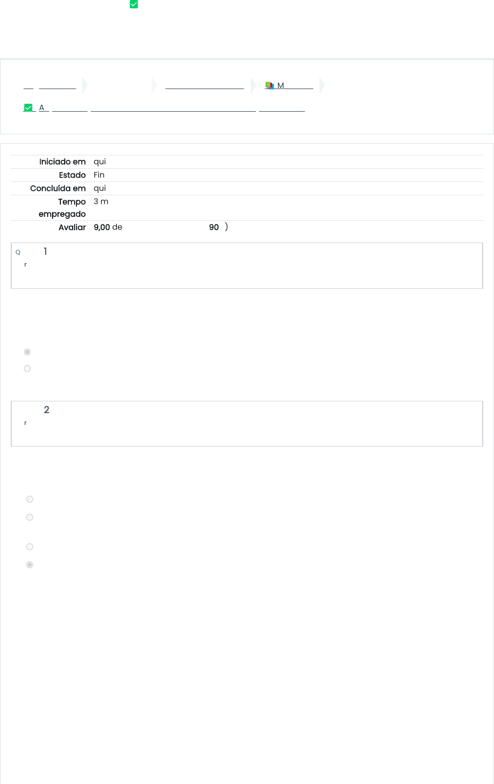 23/03/2023, 17:32 ✅ [A3] – Avaliação do Módulo 3 – Os sistemas de informação da UFMS: Revisão da tentativa https://ava.ufms.br/mod/quiz/review.php?attempt=570974&cmid=570287 1/4 Página inicial Meus cursos 32010001488-2023-1 📚 Módulo 3 ✅ [A3] – Avaliação do Módulo 3 – Os sistemas de informação da UFMS Iniciado em quinta, 23 mar 2023, 17:06 Estado Finalizada Concluída em quinta, 23 mar 2023, 17:10 Tempo empregado 3 minutos 4 segundos Avaliar 9,00 de um máximo de 10,00(90%) Questão 1 Correto Atingiu 1,00 de 1,00 Questão 2 Correto Atingiu 1,00 de 1,00 No App Sou UFMS eu consigo consultar o catálogo das bibliotecas físicas e do acervo virtual da UFMS. Escolha uma opção: Verdadeiro Falso De que forma posso participar de um Edital disponível no Sigproj UFMS? a. Localizar o edital e comunicar a tutoria sobre meu interesse em participar. b. Acessar o sistema com login e senha do passaporte institucional, localizar o edital desejado e enviar um e-mail para o setor responsável. c. Localizar o edital e comunicar a coordenação do curso sobre meu interesse em participar. d. Acessar o sistema com login e senha do passaporte institucional, localizar o edital desejado, elaborar uma proposta e submeter para avaliação. https://ava.ufms.br/ https://ava.ufms.br/course/view.php?id=44470 https://ava.ufms.br/course/view.php?id=44470#section-4 https://ava.ufms.br/mod/quiz/view.php?id=570287 23/03/2023, 17:32 ✅ [A3] – Avaliação do Módulo 3 – Os sistemas de informação da UFMS: Revisão da tentativa https://ava.ufms.br/mod/quiz/review.php?attempt=570974&cmid=570287 2/4 Questão 3 Correto Atingiu 1,00 de 1,00 Questão 4 Correto Atingiu 1,00 de 1,00 Questão 5 Incorreto Atingiu 0,00 de 1,00 Questão 6 Correto Atingiu 1,00 de 1,00 Qual é o canal de atendimento para problemas com o AVA-UFMS? a. Enviar um e-mail para suporte.agead@ufms.br. b. Enviar um e-mail para agead@ufms.br. c. Enviar um e-mail para a coordenação do curso. d. Enviar um e-mail para a tutoria. Qual é o sistema de produção e gestão de documentos e processos eletrônicos da UFMS? a. Sigpos. b. Sigproj. c. Sei. d. Siai. O acesso ao acervo digital Biblioteca da UFMS é realizado por meio do passaporte institucional. Escolha uma opção: Verdadeiro Falso Qual é o Sistema Acadêmico para cursos de graduação da UFMS? a. Siai. b. Sigpos. c. Sigproj. d. Siscad. 23/03/2023, 17:32 ✅ [A3] – Avaliação do Módulo 3 – Os sistemas de informação da UFMS: Revisão da tentativa https://ava.ufms.br/mod/quiz/review.php?attempt=570974&cmid=570287 3/4 Questão 7 Correto Atingiu 1,00 de 1,00 Questão 8 Correto Atingiu 1,00 de 1,00 Questão 9 Correto Atingiu 1,00 de 1,00 Questão 10 Correto Atingiu 1,00 de 1,00 Ao final de cada semestre eu posso participar da avaliação institucional da UFMS e propor melhorias para o meu curso. Escolha uma opção: Verdadeiro Falso Qual é o sistema de gerenciamento de contas de usuários para acesso aos computadores da UFMS e aos sistemas desenvolvidos pela Agência de Tecnologia da Informação e Comunicação da UFMS? a. Siscad. b. Passaporte. c. Sou UFMS. d. Sigproj. Qual é o Sistema de Avaliação Institucional da UFMS? a. Siscad. b. Sigpos. c. Sigproj. d. Siai. O acervo digital da Biblioteca da UFMS é acessível de qualquer lugar, por meio do cadastro específico vinculado ao Registro Geral Acadêmico (RGA). Escolha uma opção: Verdadeiro Falso Atividade anterior ◄ 📍 [Checkout de Presença] Módulo 3 – Os sistemas de informação da UFMS https://ava.ufms.br/mod/assign/view.php?id=570285&forceview=1 23/03/2023, 17:32 ✅ [A3] – Avaliação do Módulo 3 – Os sistemas de informação da UFMS: Revisão da tentativa https://ava.ufms.br/mod/quiz/review.php?attempt=570974&cmid=570287 4/4 Seguir para... Próxima atividade ✅ [PO] Prova Optativa ► Manter contato Suporte Técnico ao Usuário https://suporteagetic.ufms.br (67) 3345-7613 suporte.agead@ufms.br https://ava.ufms.br/mod/quiz/view.php?id=570288&forceview=1 https://suporteagetic.ufms.br/ tel:(67) 3345-7613 mailto:suporte.agead@ufms.br https://api.whatsapp.com/send?phone=556733457613