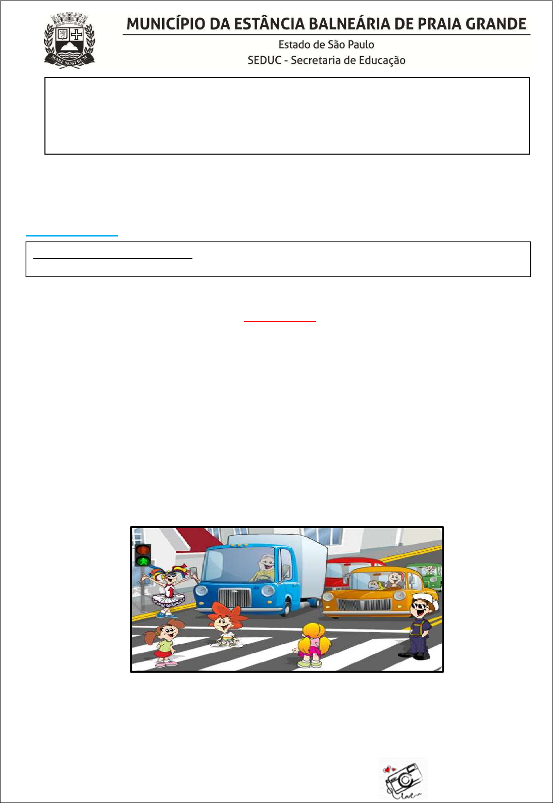 ATIVIDADE 29 EDUCAÇÃO INFANTIL INFANTIL I O PLANEJAMENTO DAS ATIVIDADES É ELABORADO SEGUINDO A BNCC (BASE NACIONAL COMUM CURRICULAR). ATIVIDADE 1 TRÂNSITO VOCÊ SABE O QUE É O TRÂNSITO? É A MOVIMENTAÇÃO DAS PESSOAS NAS RUAS DAS CIDADES OU MESMO PELAS ESTRADAS. ESSA MOVIMENTAÇÃO PODE SER FEITA A PÉ, DE BICICLETA, CARRO, ÔNIBUS, ETC. SABIA QUE TEMOS UMA SEMANA INTEIRINHA TODA DEDICADA A ATENÇÃO E EDUCAÇÃO NO TRÂNSITO? ELA ACONTECE ANUALMENTE ENTRE OS DIAS 18 E 25 DE SETEMBRO E TEM COMO OBJETIVO PROMOVER POR MEIO DA CONSCIENTIZAÇÃO DE CONDUTORES, CICLISTAS E PEDESTRES, UM TRÂNSITO MAIS SEGURO. HTTPS://ESCOLAKIDS.UOL.COM.BR/GEOGRAFIA/O-MOVIMENTO-DO-TRANSITO.HTM 1- CONVERSE COM SEU RESPONSÁVEL SOBRE OS PRINCIPAIS CUIDADOS QUE VOCÊ DEVE TER NO TRÂNSITO. DEPOIS FAÇA UM LINDO DESENHO SOBRE O QUE VOCÊ APRENDEU. ENVIE UMA FOTO DO DESENHO PARA SEU (A) PROFESSOR (A). OBJETIVOS DA ATIVIDADE: DESENVOLVER NOÇÕES DE CUIDADO NO TRÂNSITO E FAVORECER O DIÁLOGO, ATENÇÃO E CONCENTRAÇÃO, CRIATIVIDADE. ATIVIDADE 2 ANA SÓ SAI DE CASA COM UM ADULTO, VISTO QUE, É PERIGOSO ATRAVESSAR RUAS E AVENIDAS SOZINHA, POIS TEM MUITOS VEÍCULOS RÁPIDOS. NO QUADRO ABAIXO, ANA DEMONSTRA COM PEQUENOS RETÂNGULOS COLORIDOS CADA VEZ QUE FOI AO SUPERMERCADO. OBSERVE COM ATENÇÃO E RESPONDA: 1. DE QUAL FORMA ANA FOI MENOS AO SUPERMERCADO? 2. ANA FOI AO SUPERMERCADO DE DIVERSOS MODOS. QUAL FOI A FORMA QUE ELA MAIS UTILIZOU PARA IR AO SUPERMERCADO? 3. COM QUE VEÍCULO ANA FOI QUATRO VEZES AO SUPERMERCADO? OBJETIVOS DA ATIVIDADE: ORGANIZAR MELHOR AS INFORMAÇÕES; PROPORCIONAR CONDIÇÕES NA AQUISIÇÃO DE UMA NOVA LINGUAGEM MATEMÁTICA; ESTABELECER RELAÇÕES COMPARATIVAS E OBSERVAR QUANTIDADES DE DIFERENTES PRISMAS. ATIVIDADE 3 1. É HORA DA DIVERSÃO! VOCÊ VAI CANTAR A MÚSICA QUE ESTÁ LOGO ABAIXO, MAS PRECISA FAZER TODOS OS GESTOS! 2. AGORA VAMOS USAR A IMAGINAÇÃO! PARA ESSA ATIVIDADE VOCÊ VAI PRECISAR DE: ● 2 OU 3 CADEIRAS ● 1 LENÇOL (OPCIONAL) ● 1 TAMPA DE PANELA ● IMAGINAÇÃO O ÔNIBUS (XUXA) A RODA DO ÔNIBUS RODA, RODA RODA, RODA, RODA, RODA A RODA DO ÔNIBUS RODA, RODA PELA CIDADE A PORTA DO ÔNIBUS ABRE E FECHA ABRE E FECHA, ABRE E FECHA A PORTA DO ÔNIBUS ABRE E FECHA PELA CIDADE O PASSAGEIRO SOBE E DESCE SOBE E DESCE, SOBE E DESCE O PASSAGEIRO SOBE E DESCE PELA CIDADE O NENÉM FAZ UÉM, UÉM, UÉM, UÉM UÉM, UÉM, UÉM, UÉM, UÉM, UÉM O NENÉM FAZ UÉM, UÉM, UÉM, UÉM PELA CIDADE A MAMÃE FAZ SHH, SHH, SHH, SHH SHH, SHH, SHH, SHH, SHH, SHH A MAMÃE FAZ SHH, SHH, SHH, SHH PELA CIDADE A BUZINA FAZ BI, BI, BI, BI BI, BI, BI, BI, BI, BI A BUZINA FAZ BI, BI, BI, BI PELA CIDADE PELA CIDADE PELA CIDADE OBJETIVOS DA ATIVIDADE: AMPLIAR AS POSSIBILIDADES EXPRESSIVAS DO PRÓPRIO MOVIMENTO UTILIZANDO GESTOS DIVERSOS E RITMOS CORPORAIS. COMO BRINCAR: COLOQUE AS CADEIRAS ENFILEIRADAS UMA ATRÁS DA OUTRA. VOCÊ DEVE SENTAR NA CADEIRA DA FRENTE, AFINAL VOCÊ SERÁ O MOTORISTA DESSE ÔNIBUS. SE DESEJAR, VOCÊ PODE COBRIR AS OUTRAS CADEIRAS COM O LENÇOL, PARA DAR UM ASPECTO DE ÔNIBUS OU DEIXÁ-LA DESCOBERTA E CONVIDAR OUTRAS PESSOAS PARA SEREM OS PASSAGEIROS. A TAMPA DA PANELA SERÁ O VOLANTE DO ÔNIBUS. AGORA É SÓ USAR A IMAGINAÇÃO! ATIVIDADE 4 A CICLOVIA É UM ESPAÇO SEGURO PARA O TRÂNSITO DE BICICLETAS. ISSO SIGNIFICA QUE HÁ UMA SEPARAÇÃO FÍSICA ISOLANDO OS CICLISTAS DOS DEMAIS VEÍCULOS. ELA É INDICADA PARA AVENIDAS E VIAS EXPRESSAS, POIS PROTEGE O CICLISTA DO TRÁFEGO RÁPIDO E INTENSO. OBJETIVOS DA ATIVIDADE: ESTIMULAR O RACIOCÍNIO LÓGICO; DESENVOLVER A COORDENAÇÃO MOTORA E A NOÇÃO DE LATERALIDADE; PROMOVER A CONSCIENTIZAÇÃO DE TRÂNSITO SEGURO; FAVORECER A SOCIALIZAÇÃO E RECONHECER SÍMBOLOS UNIVERSAIS (PLACAS). CICLOVIA DE PRAIA GRANDE AGORA QUE VOCÊ JÁ SABE O QUE É UMA CICLOVIA, COM O DEDINHO, AJUDE OS CICLISTAS CHEGAR ATÉ A BICICLETA NA TRILHA ABAIXO. LEMBRE-SE DE RESPEITAR AS REGRAS DE TRÂNSITO! PARABÉNS! VOCÊ GANHOU O TROFÉU DE CICLISTA RESPONSÁVEL! ATIVIDADE 30 EDUCAÇÃO INFANTIL INFANTIL I O PLANEJAMENTO DAS ATIVIDADES É ELABORADO SEGUINDO A BNCC (BASE NACIONAL COMUM CURRICULAR). ATIVIDADE 1 ESTE É O SEMÁFORO, TAMBÉM CONHECIDO COMO SINAL DE TRÂNSITO OU FAROL PORQUE AJUDA A ORGANIZAR E ORIENTAR QUANDO DEVEMOS OU NÃO ATRAVESSAR A RUA E NA CIRCULAÇÃO DOS VEÍCULOS. SUAS CORES TÊM SIGNIFICADOS: VERMELHO PARE; AMARELO ATENÇÃO E VERDE SIGA! VAMOS BRINCAR COM AS CORES DO SEMÁFORO? VOCÊ IRÁ PRECISAR DE OBJETOS QUE POSSUAM AS CORES DO SEMÁFORO: VERDE, AMARELO E VERMELHO. ELES PODEM SER FEITOS COM RECICLAGEM, PODEM SER DE PAPEL EM FORMATO DE CÍRCULOS OU OBJETOS QUE POSSUAM EM CASA COMO: CAMISETA, SAPATO, PALITOS, ETC. (MAS PRECISAM SER UM DE CADA COR). UMA DICA LEGAL É FAZER PLACAS DE TRÂNSITO COM AS CORES DO SEMÁFORO, FICA BEM MAIS DIVERTIDO!!! COMO BRINCAR COLOQUE UMA MÚSICA ALEGRE OU DE SUA PREFERÊNCIA. TODOS DEVERÃO FICAR DE PÉ, AFASTADOS UNS DOS OUTROS, DE FRENTE PARA O ADULTO COM OBJETIVOS DA ATIVIDADE: RECONHECER AS CORES DO SEMÁFORO; ASSOCIAR A COR AO MOVIMENTO CORPORAL E PROMOVER A SOCIALIZAÇÃO. AS CORES. QUANDO A MÚSICA COMEÇAR TODOS DEVEM DANÇAR. QUANDO O ADULTO LEVANTAR O OBJETO DE COR VERDE TODOS CONTINUAM DANÇANDO. QUANDO LEVANTAR O DE COR AMARELO TODOS DEVEM DANÇAR LENTAMENTE, DEVAGAR. E AO MOSTRAR O VERMELHO TODOS DEVEM VIRAR ESTÁTUAS. ATIVIDADE 2 TEMOS MUITAS FORMAS DE NOS MOVIMENTAR PELAS RUAS. PODEMOS IR A PÉ, DE CARRO, MOTO, BICICLETA, PATINETE E MUITO MAIS. PORÉM TEMOS QUE SEGUIR AS LEIS DE TRÂNSITO PARA NOS PROTEGER E NÃO CAUSAR ACIDENTES. VOCÊ LEMBRA COMO É O CAMINHO DA SUA CASA PARA ESCOLA? VAMOS DESENHAR ESSE TRAJETO! PARA ISSO, VOCÊ PRECISA LEMBRAR DO PERCURSO NA SUA CABECINHA. LEMBRE-SE DO CAMINHO, DAS RUAS, DOS VEÍCULOS E DA PESSOA QUE O (A) LEVAVA PARA A ESCOLA E, A FORMA QUE VOCÊ COSTUMAVA IR (BICICLETA, CARRO, MOTO OU A PÉ). AGORA QUE VOCÊ JÁ DESENHOU, RESPONDA? 1. PARA CHEGAR À ESCOLA VOCÊ ATRAVESSAVA MUITAS RUAS OU POUCAS? 2. TINHA ALGUM SEMÁFORO? OBJETIVOS DA ATIVIDA