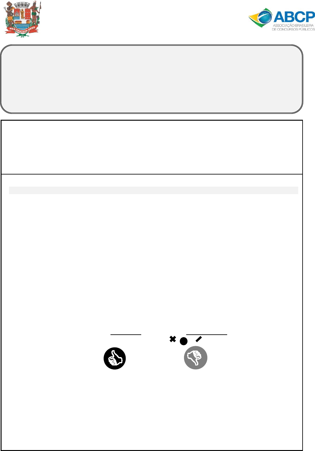 PREFEITURA DA ESTÂNCIA TURÍSTICA DE SÃO ROQUE - SP CONCURSO PÚBLICO PARA PREENCHIMENTO DE VAGAS EDITAL NÚMERO 016/2022 O GABARITO OFICIAL E A PROVA OBJETIVA ESTARÃO DISPONÍVEIS EM ATÉ 48H NO SITE: WWW.ABCONCURSOSPUBLICOS.ORG (ÁREA DO CANDIDATO) BOA PROVA! CADERNO DE PROVAS INSTRUÇÕES 1. A duração máxima da prova será de 2h30min (duas horas e trinta minutos), incluindo a transcrição das respostas para o Cartão de Respostas (gabarito). Os candidatos poderão entregar o Caderno de Provas somente 1h (uma hora) após seu efetivo início. Por motivos de segurança, o candidato só poderá levar consigo o caderno de provas depois de decorridas 1h30min (uma hora e trinta minutos) contada a partir do efetivo início das provas. 2. A respectiva prova é composta por 40 (quarenta) questões com 4 (quatro) alternativas de resposta cada, com somente uma resposta correta. 3. O caderno de provas será publicado e poderá ser acessado através da Área do Candidato com login e senha, durante o prazo de recursos. 4. Para assinalar as RESPOSTAS no Cartão de Respostas, utilize caneta esferográfica de tinta PRETA ou AZUL fabricada OBRIGATORIAMENTE em material transparente. 5. Ao receber seu Cartão Resposta (gabarito) verifique se todos os seus dados estão corretos e o assine. 6. Os dados pessoais incorretos deverão ser corrigidos somente na Lista de Presença. Qualquer dúvida dirija-se somente a um dos fiscais de sua sala. 7. O Cartão de Respostas deve ser devolvido obrigatoriamente para o fiscal responsável pela sala ao término da prova. 8. No Cartão de Respostas, faça as marcas de acordo com o exemplo abaixo: FORMA CORRETA FORMAS INCORRETAS 9. Marcas mal feitas não são lidas pelo sistema de correção automático, invalidando a questão. 10. A marcação no CARTÃO DE RESPOSTAS é definitiva, não admitindo rasuras. Marque apenas uma resposta para cada questão. Duas ou mais marcações anularão a sua resposta. O Cartão Resposta (gabarito) é insubstituível, seja qual for o motivo alegado. 11. Conforme regra editalícia, os 03 (três) últimos candidatos de cada sala onde estiver sendo realizada a prova somente poderão entregar a respectiva prova e retirar-se do local simultaneamente. 12. Deverão permanecer desligados os celulares e outros aparelhos eletrônicos permanecendo na embalagem em que foram lacrados na entrada da sala de aplicação de provas, não devendo ser religados até que o candidato saia do prédio de aplicação de provas. AGENTE FISCAL DE RENDAS PREFEITURA DA ESTÂNCIA TURÍSTICA DE SÃO ROQUE - SP CONCURSO PÚBLICO PARA PREENCHIMENTO DE VAGAS EDITAL NÚMERO 016/2022 AGENTE FISCAL DE RENDAS - 1 - LÍNGUA PORTUGUESA As questões de 01 a 10 dizem respeito ao Texto. Leia-o atentamente antes de respondê-las. (Texto) 01. Assinale a alternativa que completa, correta e respectivamente, as lacunas presentes nas linhas 20 e 22 do Texto: a) à-à. b) à-a. c) a-à. d) a-a. 02. Acerca da interpretação do Texto, assinale a alternativa correta: a) É provável que McFall viajará no próximo lançamento tripulado da Nasa ao espaço. b) No projeto-piloto, as agências, ESA e NASA, avaliarão, primeiramente, as adaptações necessárias para garantir a segurança das pessoas com deficiência. c) McFall faz parte de uma turma de vinte pessoas selecionadas para compor a próxima turma a viajar ao espaço. d) As adaptações que deverão ser realizadas nas naves espaciais não serão estudadas nesse primeiro contato da ESA com a NASA. 03. A palavra “amputada” (linha 7) foi empregada no Texto com o sentido de: a) Acrescentar uma coisa à outra; adir, juntar. b) Ficar com uma doença contagiosa. c) Colocar escoras em algo pouco seguro; amparar. d) Decepar um membro do corpo. 04. Analise o período a seguir: “Trata-se de um projeto-piloto...” (linha 15). Sobre a sua análise sintática, assinale a alternativa correta: a) Caso houvesse alteração do sujeito para o plural, a locução “trata-se de” também flexionaria para fins de concordância. b) Possui sujeito indeterminado. c) “um projeto-piloto” configura o sujeito da oração principal. d) Não possui complemento verbal. 05. A seguir, há destacada uma oração subordinada adverbial final reduzida de infinitivo, cuja transformação para a sua forma desenvolvida, mantendo-se o sentido original do trecho, encontra-se correta em: “Trata-se de um projeto-piloto para avaliar...” (linha 15). a) “para avaliar-se-á” b) “para que fosse avaliado” c) “para que se avalie” d) “para que sejam avaliados” 06. Analise o termo destacado a seguir: “[...], mas se sentiu compelido a se candidatar quando ficou sabendo da oportunidade.” (linhas 23 a 25). Sobre a colocação pronominal do termo destacado acima, é correto afirmar que há um caso claro de: a) Próclise facultativa. b) Próclise obrigatória. c) Ênclise obrigatória. d) Mesóclise obrigatória. 07. É correto afirmar que a partícula “se” destacada abaixo exerce a seguinte função morfológica: PREFEITURA DA ESTÂNCIA TURÍSTICA DE SÃO ROQUE - SP CONCURSO PÚBLICO PARA PREENCHIMENTO DE VAGAS EDITAL NÚMERO 016/2022 AGENTE FISCAL DE RENDAS - 2 - “[...], mas se sentiu compelido a se candidatar quando ficou sabendo da oportunidade.” (linhas 23 a 25). a) Pronome apassivador. b) Pronome reflexivo. c) Pronome reflexivo recíproco. d) Parte integrante de verbos essencialmente pronominais. 08. A seguir, dos termos destacados nos trechos retirados do Texto, assinale a alternativa que representa corretamente o sujeito da oração a que pertence: a) “que está ampliando sua definição de "características certas" dos candidatos” (linhas 11 e 12) b) “que nunca havia pensado” (linhas 22 e 23) c) “que querem ir ao espaço.” (linhas 12 e 13) d) “que estava procurando candidatos” (linha 26) 09. Analise o período a seguir: “A escolha não significa necessariamente que McFall irá para o espaço.” (linhas 13 e 14). 