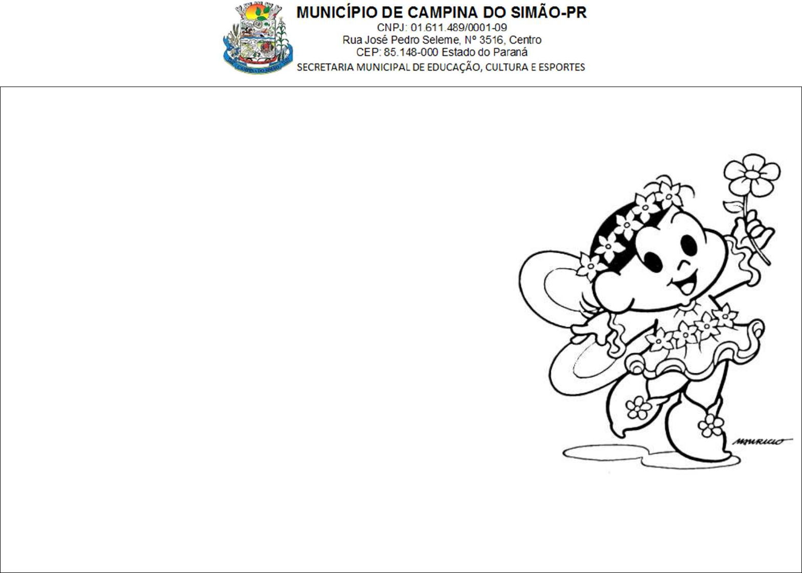 ATIVIDADES REMOTAS QUINZENALREFERENTE AO 3º TRIMESTRE 1. IDENTIFICAÇÃO DA UNIDADE EDUCACIONAL 1.1 Nome da Unidade Escolar: ESCOLA M. DO C. VITAL BRASIL EIEF E EJA 1.2 Endereço: Rua Norberto Barbosa, 2235 – Vila Vieira – Campina do Simão - Pr 1.3 E-mail: escolamunicipalvitalbrasil@yahoo.com.br 1.4 Ano: 4º B Data: 14/09/2020 à 25/09/2020 1.5 Professor(a): HELEMARA F. S. ZOLET DIA DA SEMANA DA DO MÊS DISCIPLINA CARGA HORÁRIA CONTEÚDOS OBJETIVOS REFERÊNCIAS Segunda-feira 14/09/2020 Port. Port. 2 horas Produção de texto. Continuação da história. (EF35LP25) (EF35LP07) (EF35LP08) (EF35LP09) Produzir textos escritos de forma autônoma e compartilhada. http:/www.diaadiaprofessor.com.br novaescola.org.br CREP Hist. Hist. 2 horas A História do Município de Campina Do Simão e as Estações Ecológicas. (EF04HI03) Identificar as transformações ocorridas em seu Município com o passar dos tempos. Pt.m.wikipedia.org Cidades.ibge.gov.br CREP Terça-feira 15/09/2020 Mat. Mat. 2 horas Situações Problemas envolvendo tabelas. (EF04MA27) (EF04MA28) Resolver Situações problemas envolvendo análise e interpretação de dados de tabelas simples. http:/www.diaadiaprofessor.com.br Pinterest.com CREP Geo. Geo. 2 horas Como é formado o Ambiente na terra. (EF04GE11) Identificar as caracteristicas da formação do ambiente na terra. http:/www.diaadiaprofessor.com.br CREP Pinterest.com Quarta- feira 16/09/2020 Hora Atividade 4 horas Elaboração das atividades Quinta-feira 17/09/2020 Oficina de Português 1 hora Leitura e interpretação de texto. Ler e interpretar de forma autônoma diferentes gêneros textuais. Pinterest.com Novaescola.org.br CREP Oficina de Mtemática 1 hora Situações Problemas envolvendo tabelas, adição e subtração. Resolver, analisar e elaborar cálculos através de dados de tabelas Pedagogiccos.blogspot.com CREP (EF04MA27) (EF04MA28) (EF04MA06) (EF04MA03) simples com ideias de adição, subtração. Ciências 2 horas Cadeia Alimentar (EF04CI04) Identificar as interações entre os seres vivos nas cadeias alimentares. CREP Pedagogiccos.blogspot.com Sexta-feira 18/09/2020 Português 2 horas Leitura e interpretação de texto. Ler e interpretar diferentes gêneros textuais oral e escrito de forma autônoma. Pinterest.com Pedagogiccos.blogspot.com CREP Matemática 2 horas Algoritmo da Multiplicação (EF04MA04) (EF04MA05) Utilizar as propriedades das operações para realizar e esenvolver estratégias de cálculos. Pedagogiccos.blogspot.com CREP Segunda-feira 21/09/2020 Port. Port. 2 horas Leitura e interpretação de texto. Ler e interpretar texto do cotidiano oralmente e escrito. Pinterest.com CREP Hist. Hist. 2 horas Retomada de conteúdo sobre A História do Município de Campina Do Simão e as Estações Ecológicas. (EF04HI03) Identificar e relacionar as diferentes transformações ocorridas na história do desenvolvimento da cidade. Pt.m.wikipedia.org Cidades.ibge.gov.br CREP Terça-feira 22/09/2020 Mat. Mat. 2 horas Situações Problemas envolvendo adição e subtração. (EF04MA06) (EF04MA03) Compreender e resolver situações problemas com ideias de adição e subtração utilizando estratégias diversas de cálculos. Pedagogiccos.blogspot.com CREP Geo. Geo. 2 horas A Vegetação Brasileira. (EF04GE11) Reconhecer Formas de vegetações que formam o ecossistema dos Estados brasileiro. Pinterest.com CREP Quarta-feira 23/09/2020 Hora Atividade 4 horas Elaboração das atividades remotas Quinta-feira 24/09/2020 Oficina de Português 1 hora Caça-palavras envolvendo dificuldades ortográficas. (EF04LP01) (EF35LP12) Entender a construção do sistema alfabético brasileiro e a ortografia. Pedagogiccos.blogspot.com CREP Oficina de Matemática 1 hora Situações Problemas envolvendo gráfico. (EF04MA27) (EF04MA28 Utilizar, analisar e interpretar as propriedades e os dados dos gráficos para resolver cálculos. Pedagogiccos.blogspot.com CREP Pinterest.com Ciências 2 horas A Alimentação dos Seres Vivos na Cadeia Alimentar. (EF04CI04) Identificar as interações entre os seres vivos nas cadeias alimentares. Pinterest.com Novaescola.org.br CREP Sexta- feira 25/09/2020 Português 2 horas Leitura e interpretação de texto através de Tirinhas. (EF35LP09) (EF35LP25) Ler e interpretar diferentes gêneros textuais do cotidiano oralmente e escrito. Pinterest.com CREP Matemática 2 horas Tabelas (EF04MA27) (EF04MA28) Ler, interpretar dados de tabelas simples para resolver cálculos e estratégias. Pinterest.com Novaescola.org.br CREP Português – aula dia 14/09/2020 1- Leia o início e o final da história abaixo e complete- a de acordo com a sua imaginação. Não se esqueça de lhe dar um título. André era um colecionador, mas algo aconteceu com uma de suas coleções. História – aula dia 14/09/2020 1- Leia o texto abaixo sobre a história do Município de Campina do Simão. Município de Campina do Simão Município de Campina do Simão foi criado através da Lei Estadual nº 11.180, de 16 de novembro de 1995. Campina do Simão foi desmembrado do Município de Guarapuava, isso aconteceu em 1º de janeiro de 1997. Sendo assim Campina do Simão se tornou um novo Município brasileiro do Estado do Paraná. Com 23 anos, comemora seu aniversário no dia 04 de outubro, é administrado atualmente pelo Prefeito Emilio Altemiro Lazzaretti, com uma população de aproximadamente 4.076 habitantes, seu clima é subtropical úmido, sem estações de seca e sujeito a geadas, seu solo é fértil, seu relevo é planáltico (apresenta formas irregulares), sua flora é constituída de vegetação como araucárias, florestas, campos e matas situadas ao longo do Rio Piquiri, Iguaçu e seus afluentes, sua fauna é rica em espécies variadas de aves e mamíferos e também em espécies ameaçadas de extinção, faz divisa com os municípios de Turvo, Guarapuava, Goioxim e Santa Maria do Oeste. No início a população vivia mais do extrativismo, da retirada da madeira e erva mate, 