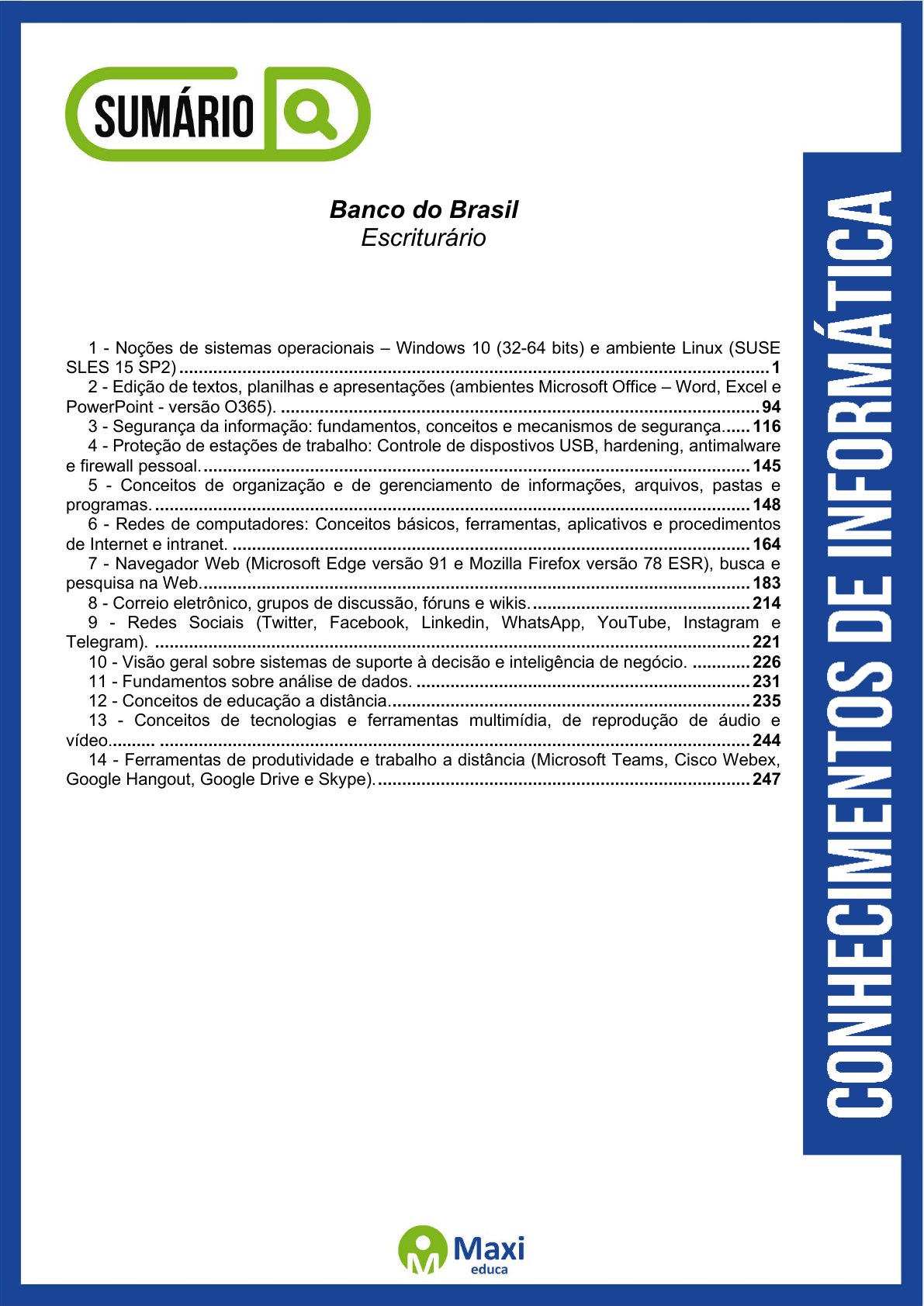1 - Noções de sistemas operacionais – Windows 10 (32-64 bits) e ambiente Linux (SUSE
