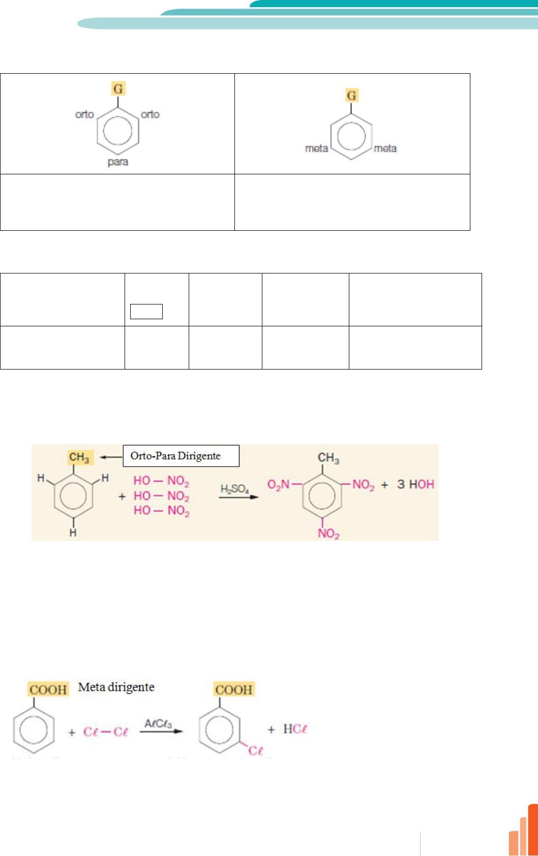 MÓDULO 5: QUIMICA 121 Radicais → Orto-Para-dirigentes. Geralmente apresentam somente ligações simples. Os Radicais → Meta-dirigentes. São grupos de átomos em cuja estrutura existe pelo menos uma ligação dupla ou tripla. Exemplo: Os principais Radicais orto-para dirigentes são: HO OH 3CHO 32 3 CHCH CH IBrClF ;;; Os principais Radicais meta dirigentes são: 2NO HSO3 COOH NC CHO Radicais Orto-Para – dirigentes: são os radicais que quando ligados ao anel aromático, orientam as substituições para as posições Orto e posição Para. Vejamos: Neste caso os radicais NO- 2 ocupam as posições Orto e Para, porque o radical )CH (- 3 é Orto-Para dirigente. Radicais Meta – dirigentes: são os radicais que quando ligados ao anel aromático orientam as substituições para as posições Meta. MÓDULO 5: QUIMICA 122 Neste caso o cloro ( Cl ) ocupa a posição Meta, porque o radical ( COOH - ) é Meta dirigente. 4 - Aplicações do benzeno O benzeno é utilizado como matéria-prima para a síntese de outros compostos orgânicos como a anilina; o estireno; borracha sintética; plásticos de poliestireno; resinas fenólicas; ciclohexano para a produção de nylon; etc. ACTIVIDADES DA LIÇÃO 1. Completa as equações das reacções que se seguem: a) rCatalisado 266 Cl + HC ________________+___________ b) rCatalisado 366 HNO + HC ________________+_____________ c) rCatalisado 366 Br -CH + HC __________________+__________ CORRECÇÃO a) HClCl - HC Cl + HC 56 rCatalisado 266 b) OH2 256 rCatalisado 366 NO-HC HNO + HC c) HBr 356 rCatalisado 366 CH-HCBr -CH + HC MÓDULO 5: QUIMICA 123 LIÇÃO Nº 11: NOMENCLATURA DOS DERIVADOS DO BENZENO Caro estudante! Nesta lição vamos estudar a nomenclatura dos derivados do benzeno. Nomenclatura dos compostos formados a partir das reacções de substituição no anel benzeno. OBJECTIVOS Nomear os derivados do Benzeno. TEMPO DE ESTUDO Para o estudo desta lição vai precisar de uma (1) hora 3.11.1. Nomenclatura de compostos aromáticos A nomenclatura oficial (I.U.P.A.C.) considera os hidrocarbonetos aromáticos como derivados do benzeno. Regra: Nome dos radicais + benzeno Exemplo noNitrobenze noClorobenze benzeno Amino benzeno Metil Quando o anel benzénico possui mais de uma ramificação, a numeração da cadeia inicia-se a partir da ramificação mais simples e segue-se o sentido horário ou anti-horário, de maneira a se respeitar a regra dos menores números. MÓDULO 5: QUIMICA 124 benzeno cloro Hexa zenoDimetilben - 1,2 zenoDimetilben - 3 1, zenoDimetilben - 4 1, Quando o anel benzénico possuir duas (2) ramificações ou mais, iguais ou diferentes, pode-se usar a nomenclatura Orto, Meta, Para, ao invés de numerar o anel benzénico. A posição - 1,2 - passa a ser indicada por Orto ou simplesmente "O " A posição - 1,3 - passa a ser indicada por Meta ou simplesmente " M " A posição - 1,4 - passa a ser indicada por Para ou simplesmente " P " zenoDibromoben - O zenoDibromoben - Orto zenoDibromoben - M zenoDibromoben - Meta zenoDibromoben - P zenoDibromoben - Para Também se aplicam os nomes usuais para dos derivados do Benzeno. (Tolueno) benzeno Metil Xileno) - 2 (1, benzeno Dimetil - 1,2 (Anilina) benzeno Amino (Fenol) benzenoHidrox Ortoxileno lbenzeneOrtodimeti benzeno dimetil - 2 1, zeneDicloroben - M benzeno Dicloro - 3 1, zeneDicloroben - P benzeno Dicloro - 1,4 MÓDULO 5: QUIMICA 125 (Tolueno) benzeno Metil Xileno) - (O benzeno Dimetil - 1,2 Xileno) - (M benzeno Dimetil - 1,3 Xileno) - (P benzeno Dimetil - 1,4 toluenoNitro - O toluenoNitro - Orto benzeno Metilnitro - 2 1, benzeno Bromonitro - M benzeno Bromonitro - Meta benzeno Bromonitro - 3 1, (TNT) toluenoTrinitro benzeno Trinitro - 6 4, 1, ACTIVIDADES DA LIÇÃO 1. Representa as estruturas de: a) Cloro benzeno b) Metil benzeno c) Anilina d) Nitro benzeno e) O-Xileno f) M-Xileno CORRECÇÃO a) c) e) b) d) f) MÓDULO 5: QUIMICA 126 ACTIVIDADES DO FIM DA UNIDADE I - Alcanos 1. Escreva as fórmulas estruturais e moleculares dos seguintes alcanos: a) Propano; c) Heptano; b) Pentano. 2. Dê os nomes dos alcanos representados por suas fórmulas estruturais: a) 3223 CH-CH-CH-CH b) 3623 CH-)(CH-CH c) 3. O gás de cozinha (GLP) é uma mistura de propano e butano. → Indique a opção que representa as fórmulas moleculares dos dois compostos orgânicos, respectivamente. a) HC e HC 8463 b) 10483 HC e HC c) HC e HC 8483 e) 12483 HC e HC 4. Determine o número de átomos de hidrogénio existentes, por molécula, nos alcanos que apresentam: a) 5 Átomos de carbono; b) 10 Átomos de carbono; c) 20 Átomos de carbono. 5. A respeito do composto orgânico chamado metano, podemos afirmar que: I — é um hidrocarboneto. II — é o chamado "gás dos pântanos". III — é um componente fundamental do gás natural. IV — é o biogás, produzido por fermentação, nos biodigestores. Quais das afirmações são corretas? II – Alcenos ou Alquenos 1. Escreva as fórmulas estruturais e moleculares dos seguintes alquenos: a) Penteno-1; b) Hexeno-2; c) Hexeno-3. 2. Dê o nome dos alquenos representados por suas fórmulas estruturais: a) 323 CHCHCHCHCH MÓDULO 5: QUIMICA 127 b) 22223 CHCHCHCHCHCH c) 322222 CHCHCHCHCHCHCH d) 3. Determine o número de átomos de hidrogénio existentes, por molécula, nos alquenos que apresentam: a) 5 Átomos de carbono; b) 10 Átomos de carbono; c) 20 Átomos de carbono. 4. Considere a reacção: tedesidraagenteOHCHCHCH tan 223 _______________+________ Se submetermos o composto à acção de um agente desidratante, que alceno será obtido? → Indique o nome e a fórmula racional. 5. A adição do HX a um alceno ocorre com formação de um produto final, haleto de alquil. Escreva as reacções do buteno-1 com HCl e 2-metilbuteno-2 com HCl . III – Alcinos ou Alquinos 1. Escreva as fórmulas estruturais e moleculares dos seguintes alquinos: a) Butino-1; b) Pentino-2; c) Hexino-3. 2. Dê o nome dos alquinos representados pelas fórmulas estruturais: a) CHCCHCHCHCH 2223 b) 3623 )
